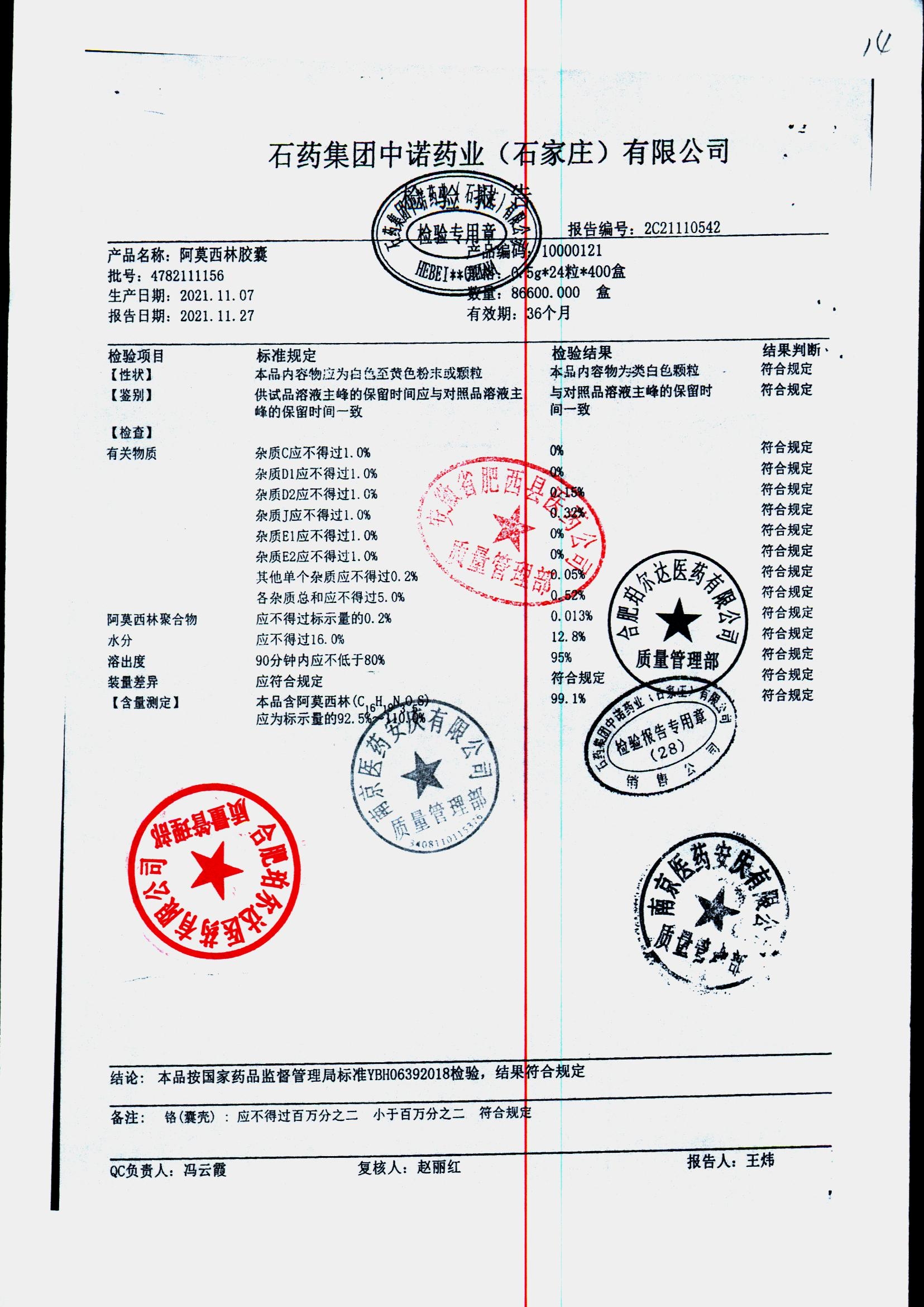阿莫西林胶囊 | 0.5g*24粒 | 4782111156 | 查看详情 |