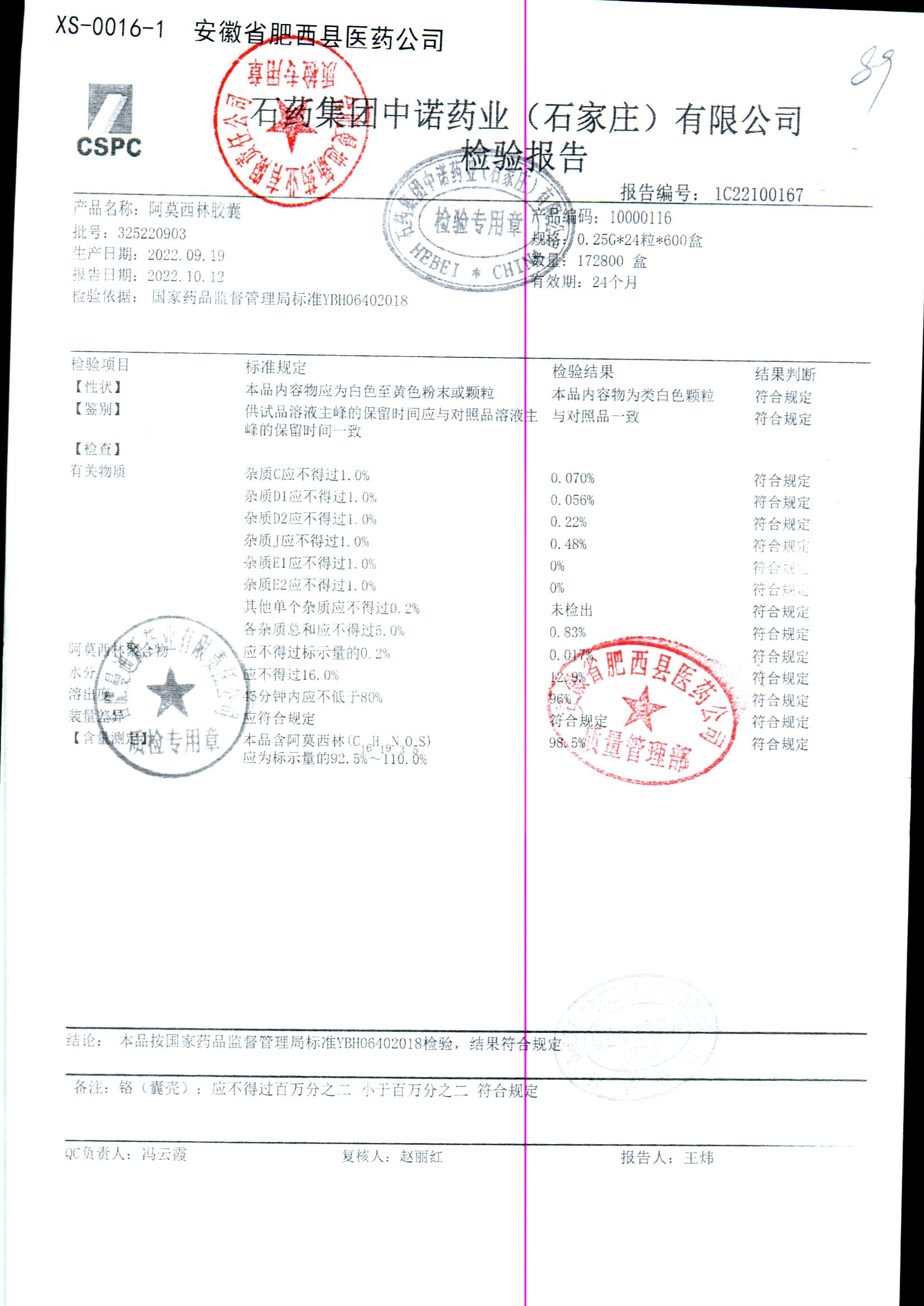 阿莫西林胶囊 | 0.5g*24粒 | 325220903 | 查看详情 |