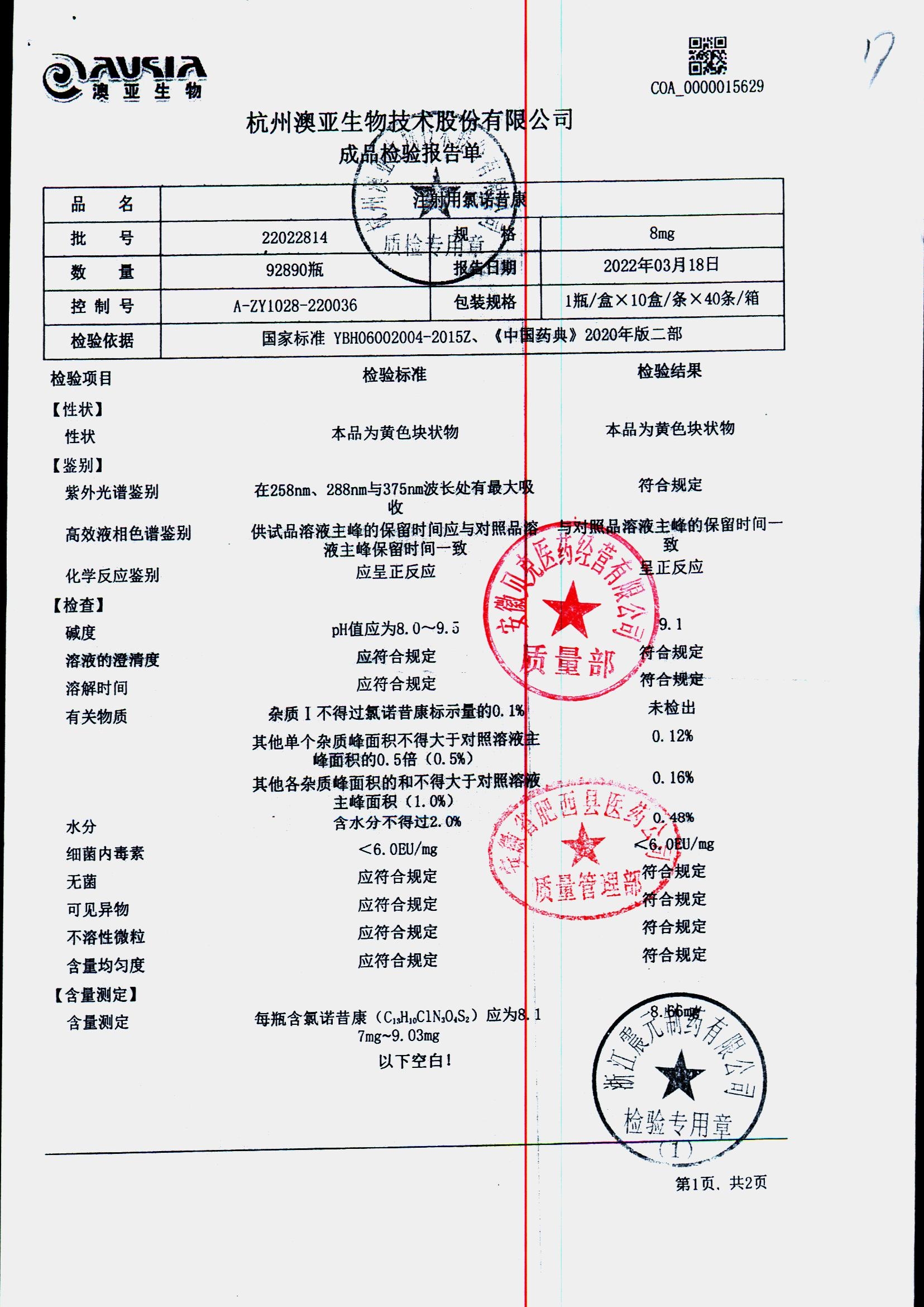 注射用氯诺昔康 | 8mg | 22022814/2 | 查看详情 |