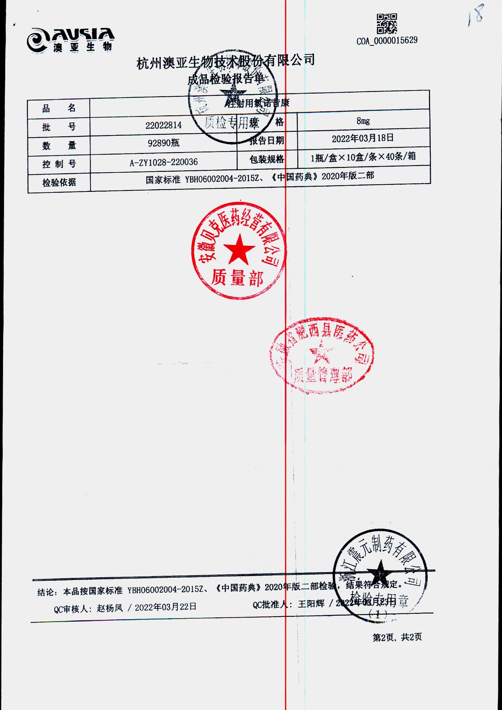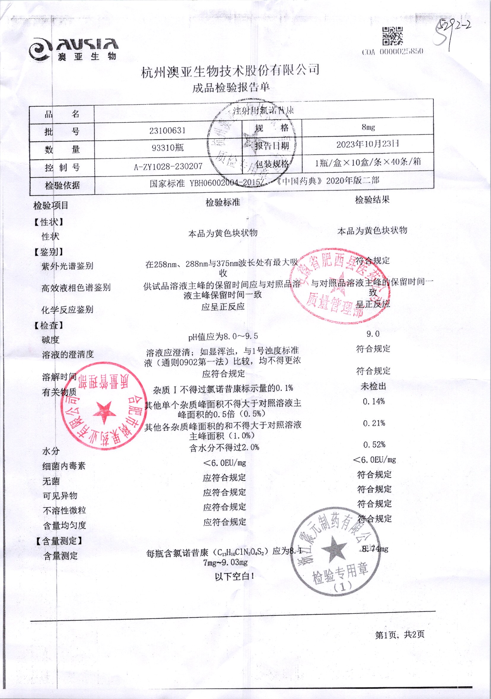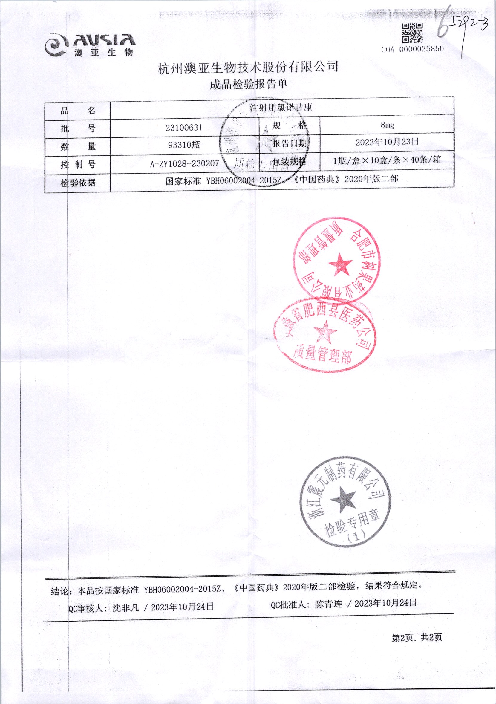 注射用氯诺昔康 | 8mg | 24050636 | 查看详情 |