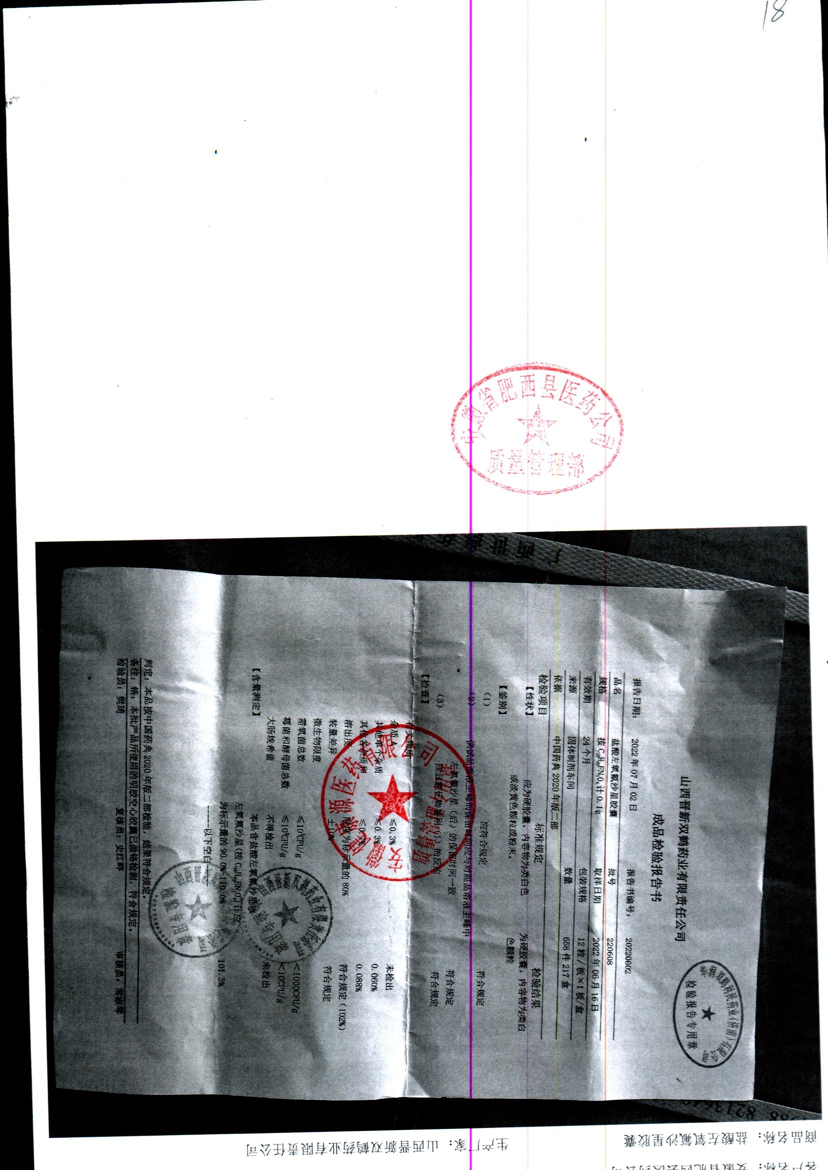 盐酸左氧氟沙星胶囊 | 0.1g*12粒 | 220702 | 查看详情 |