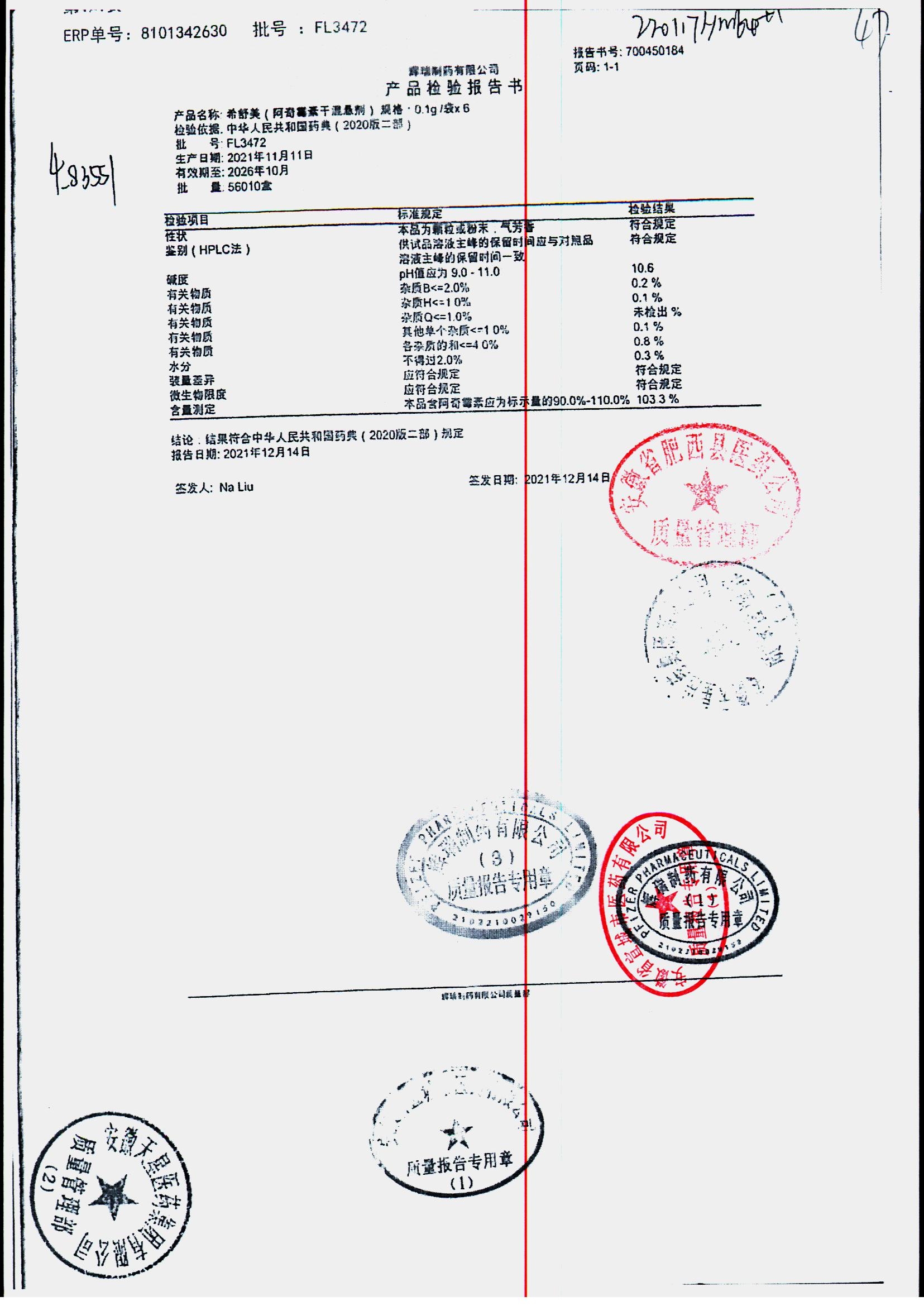 药检报告