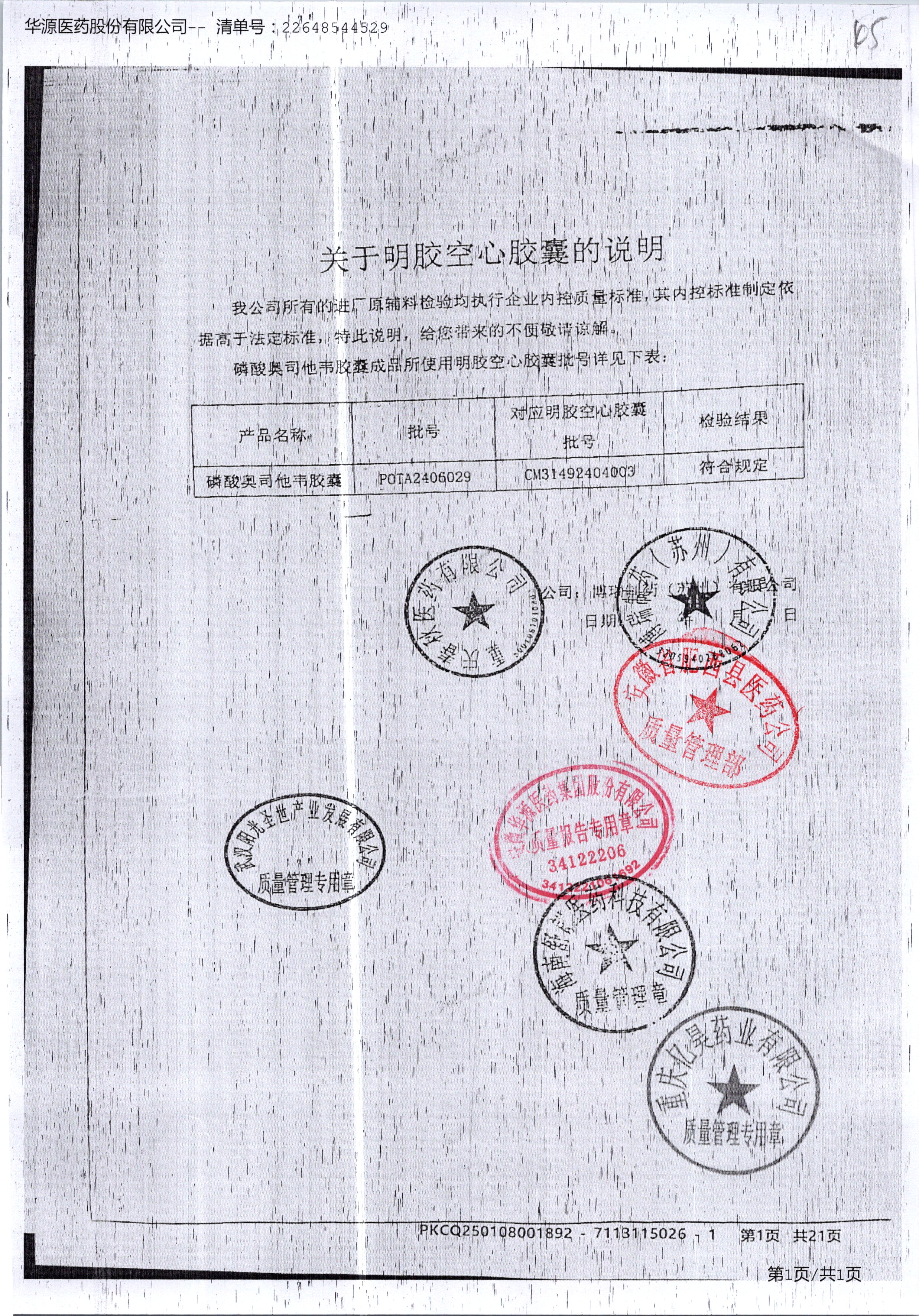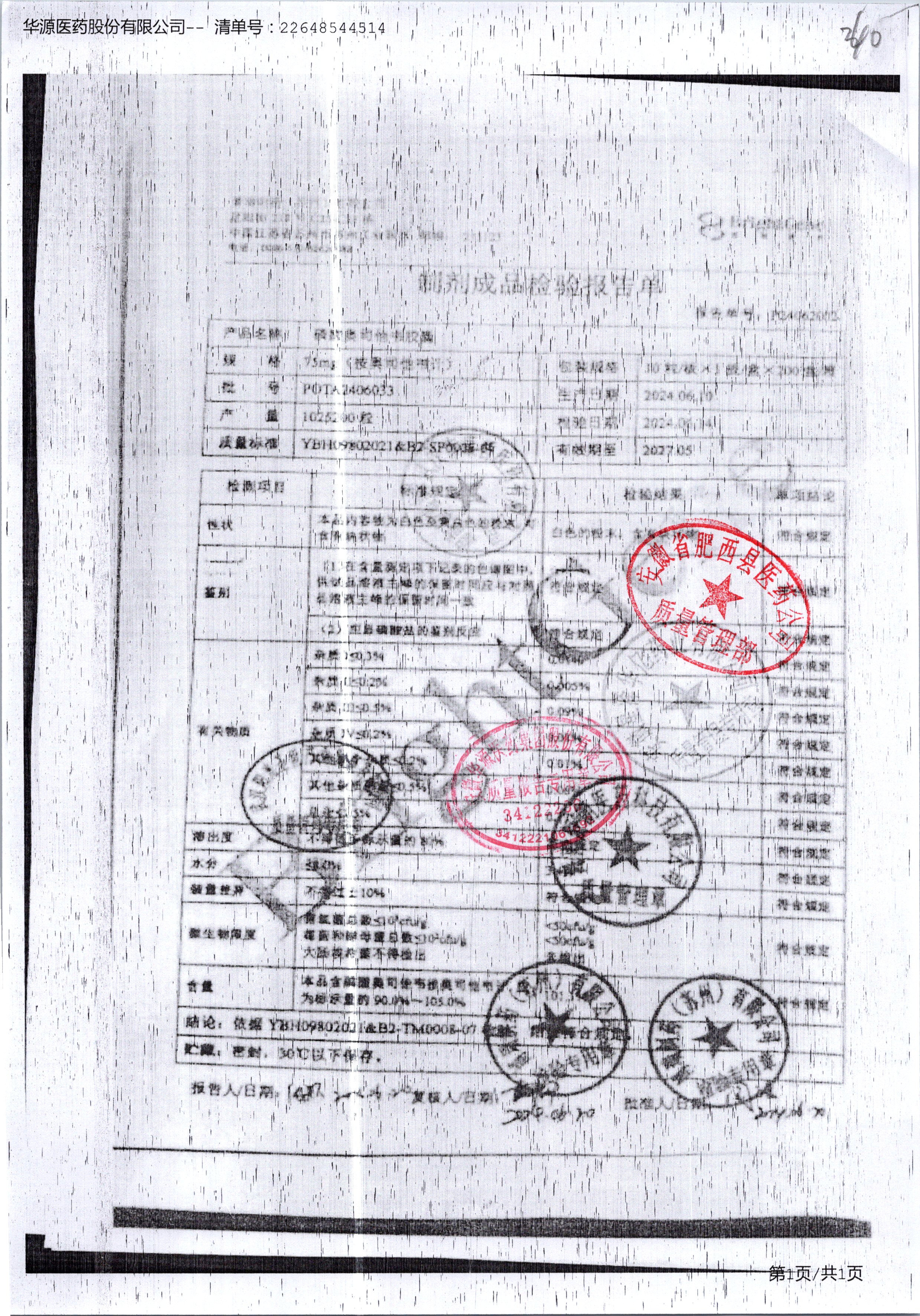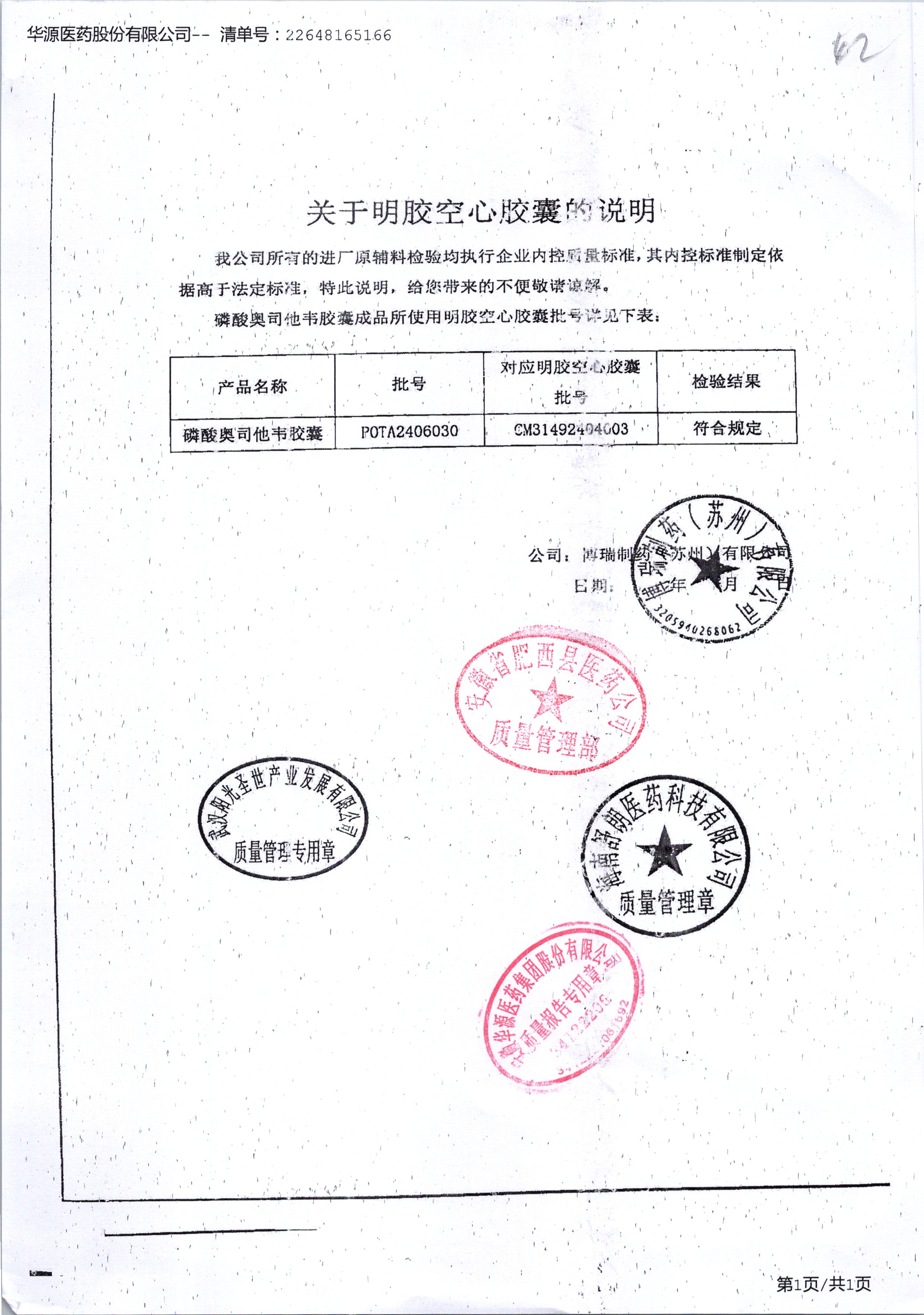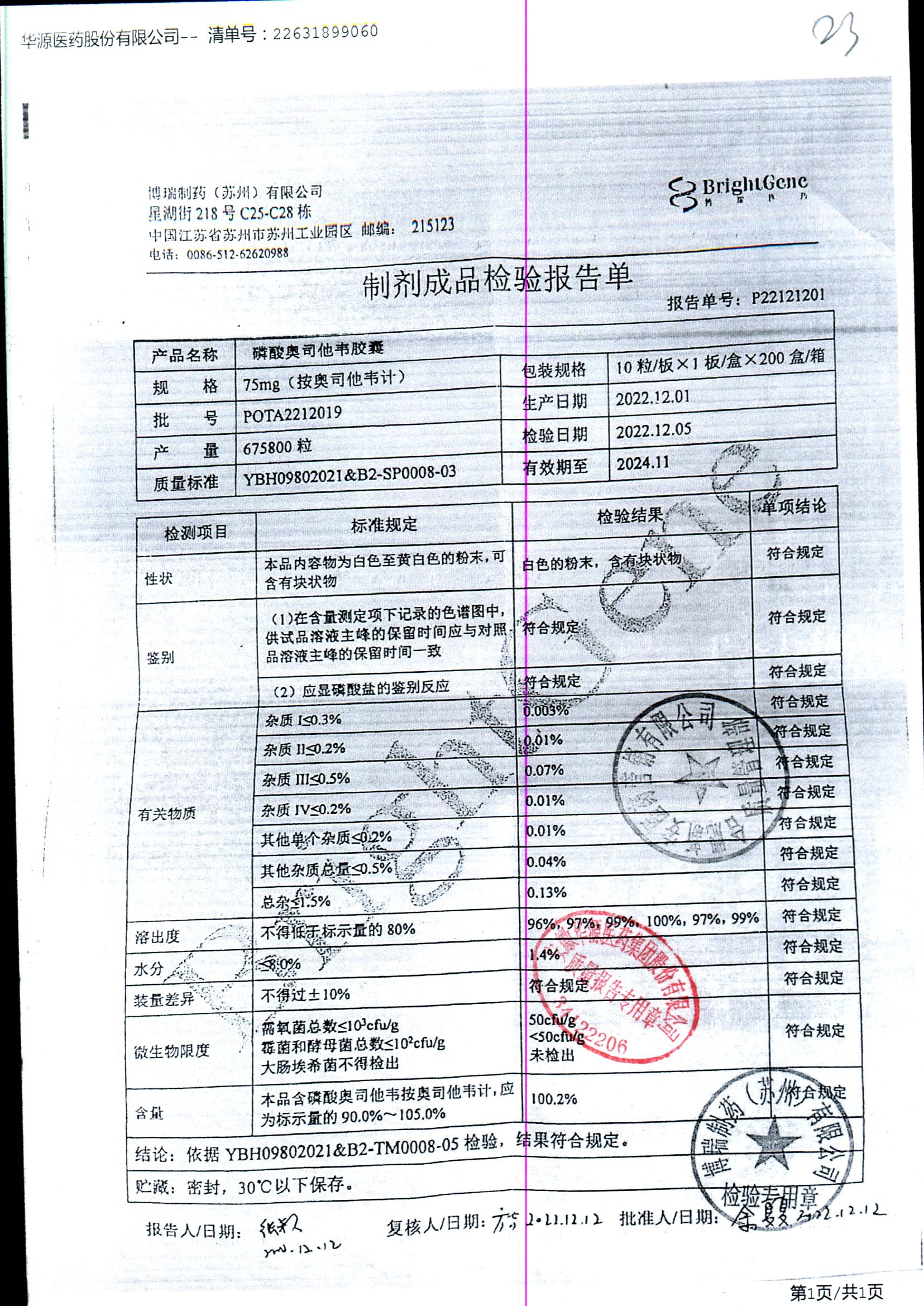 磷酸奥司他韦胶囊 | 75mg*10粒 | POTA2406034/1 | 查看详情 |