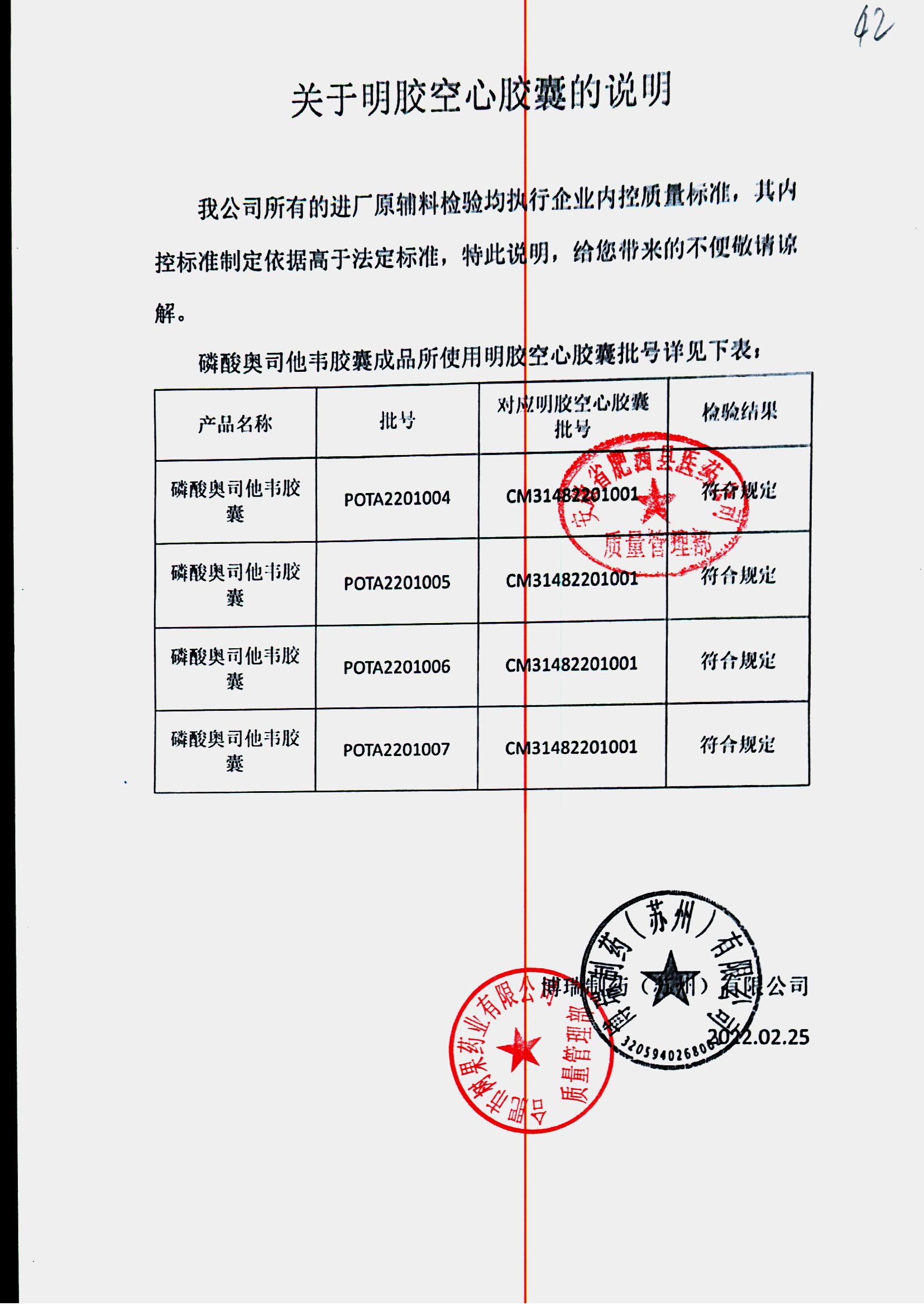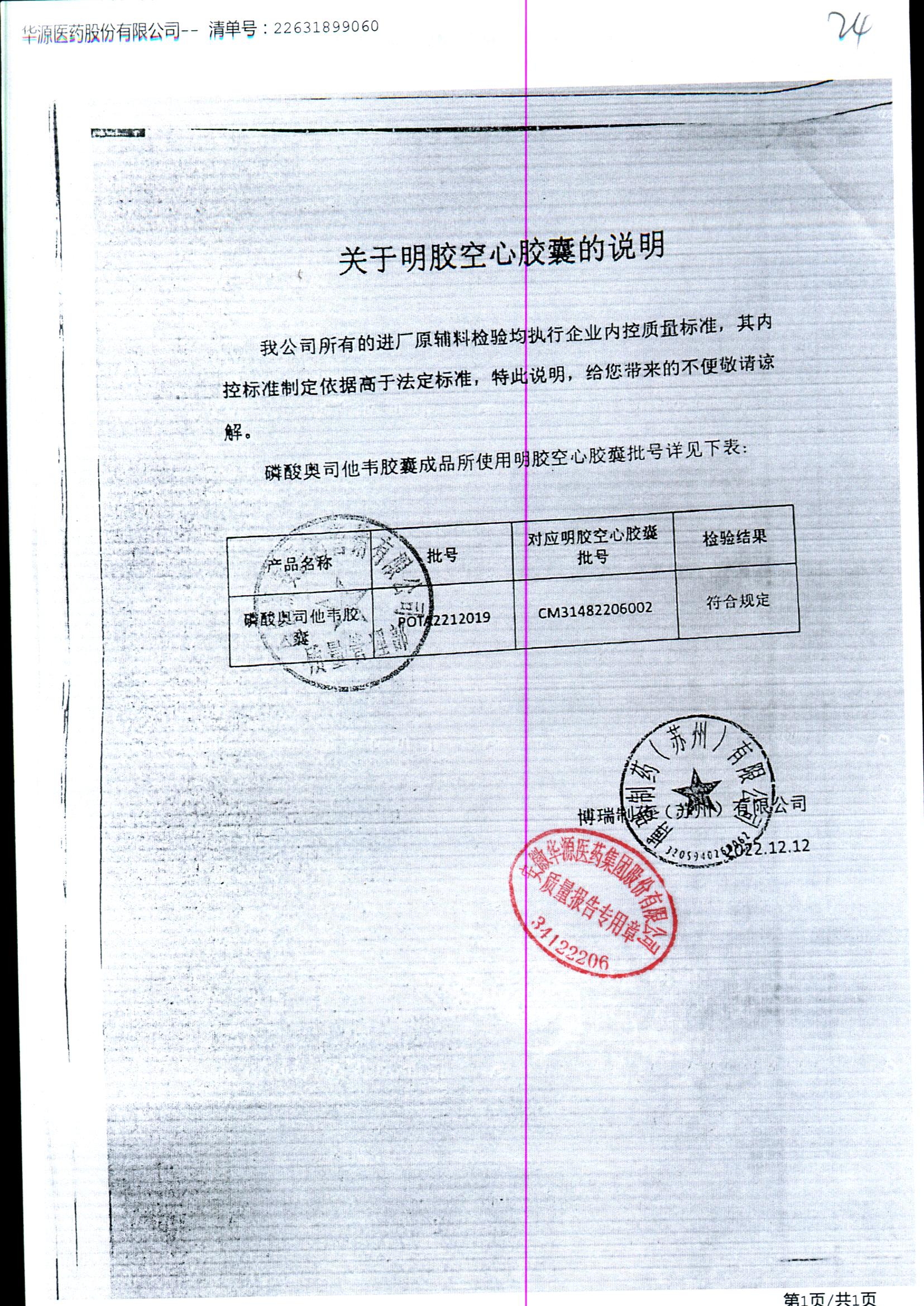 磷酸奥司他韦胶囊 | 75mg*10粒 | POTA2406029/2 | 查看详情 |