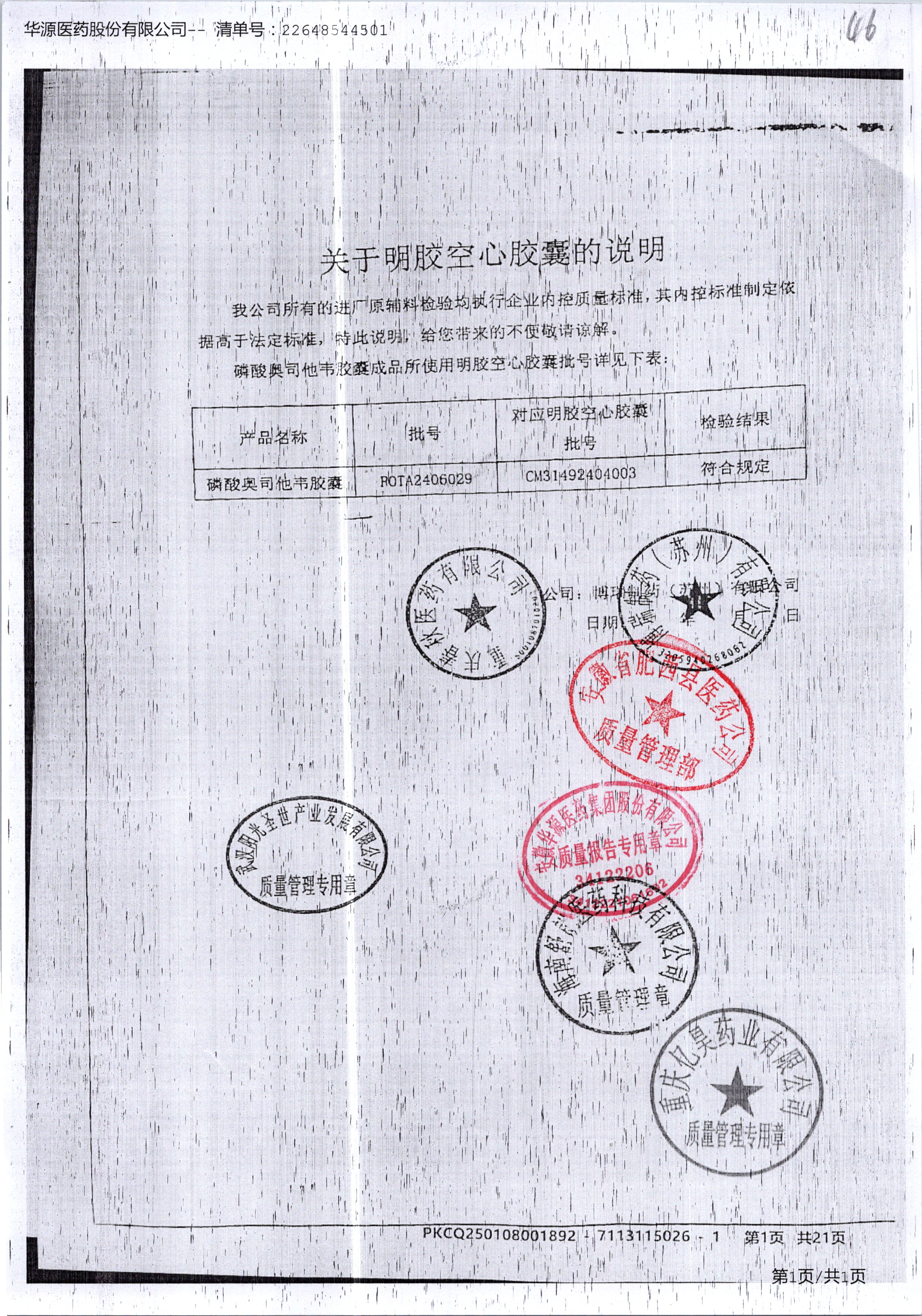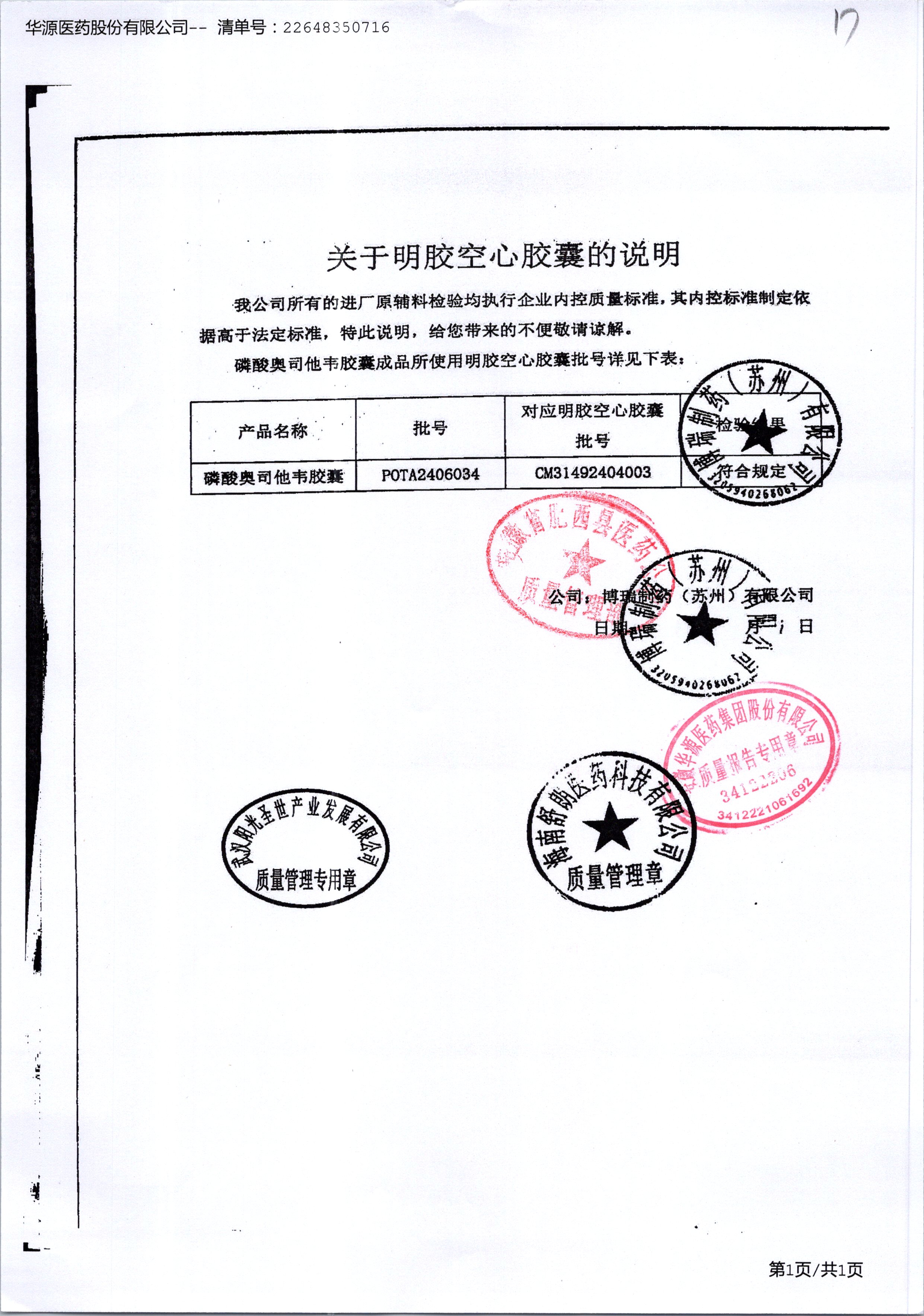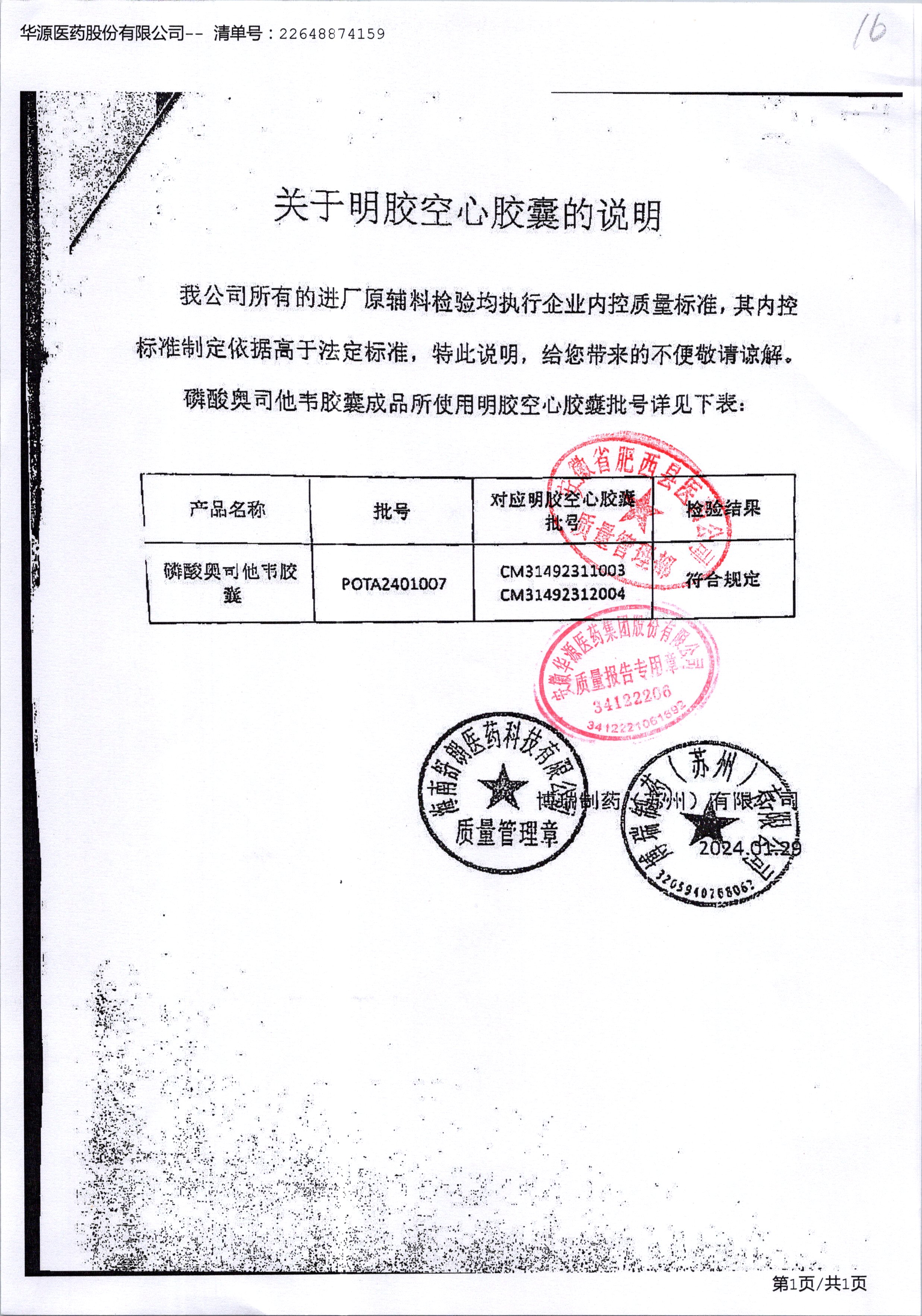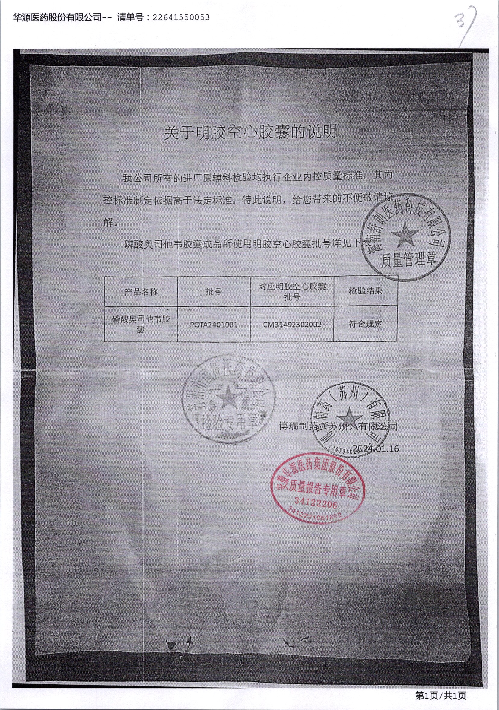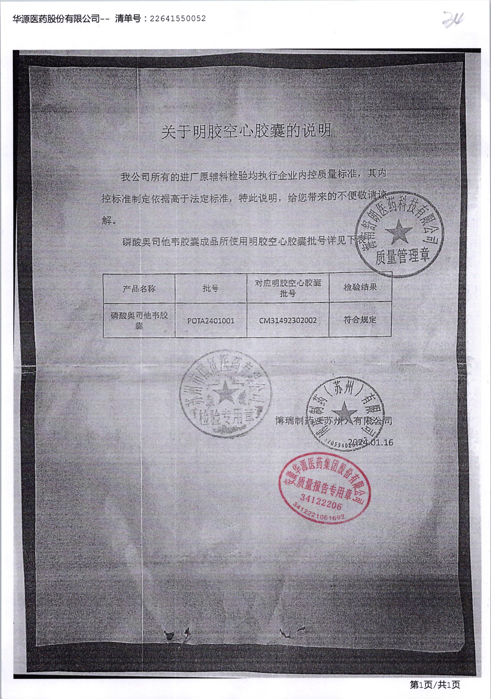 磷酸奥司他韦胶囊 | 75mg*10粒 | POTA2406029/1 | 查看详情 |