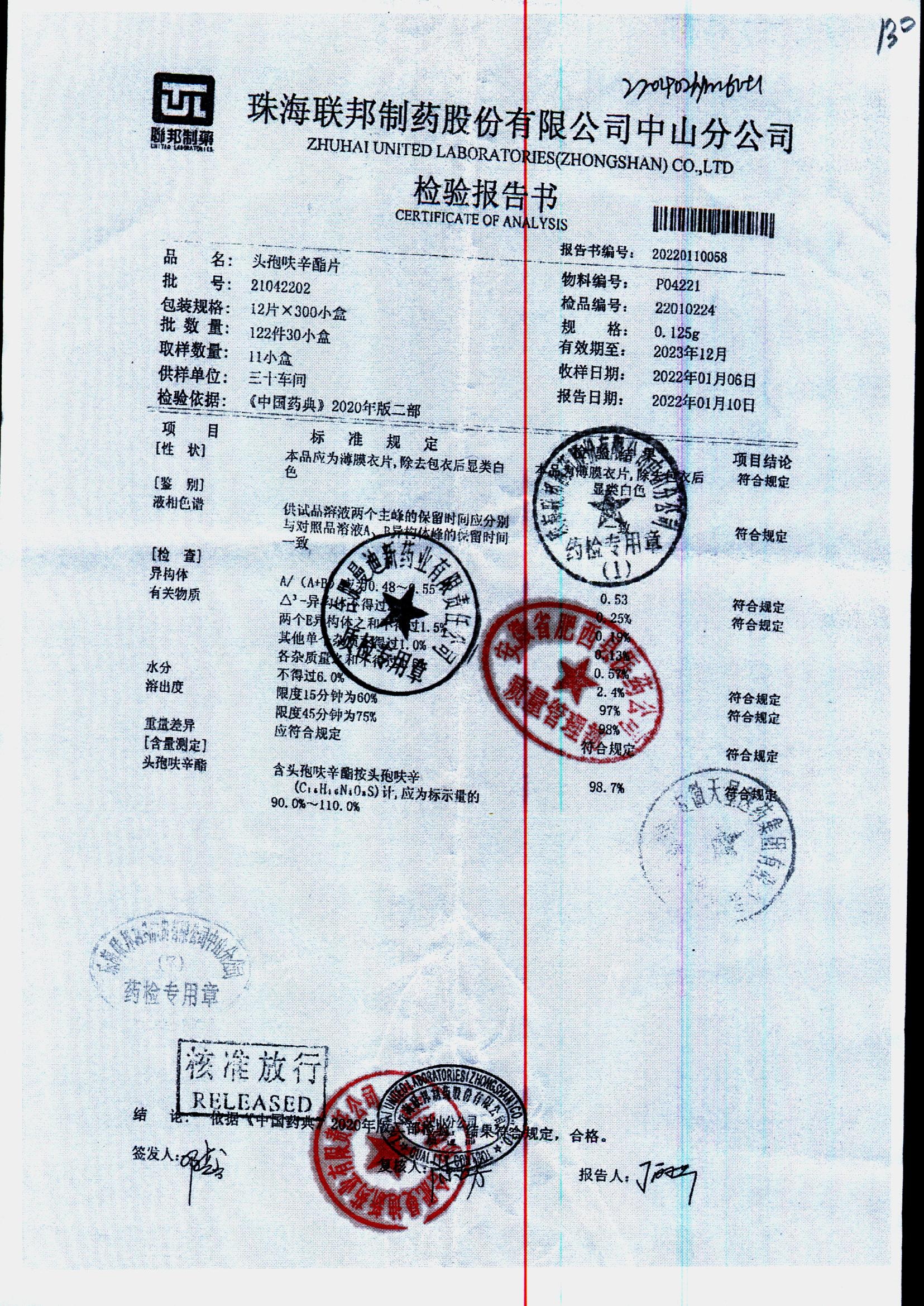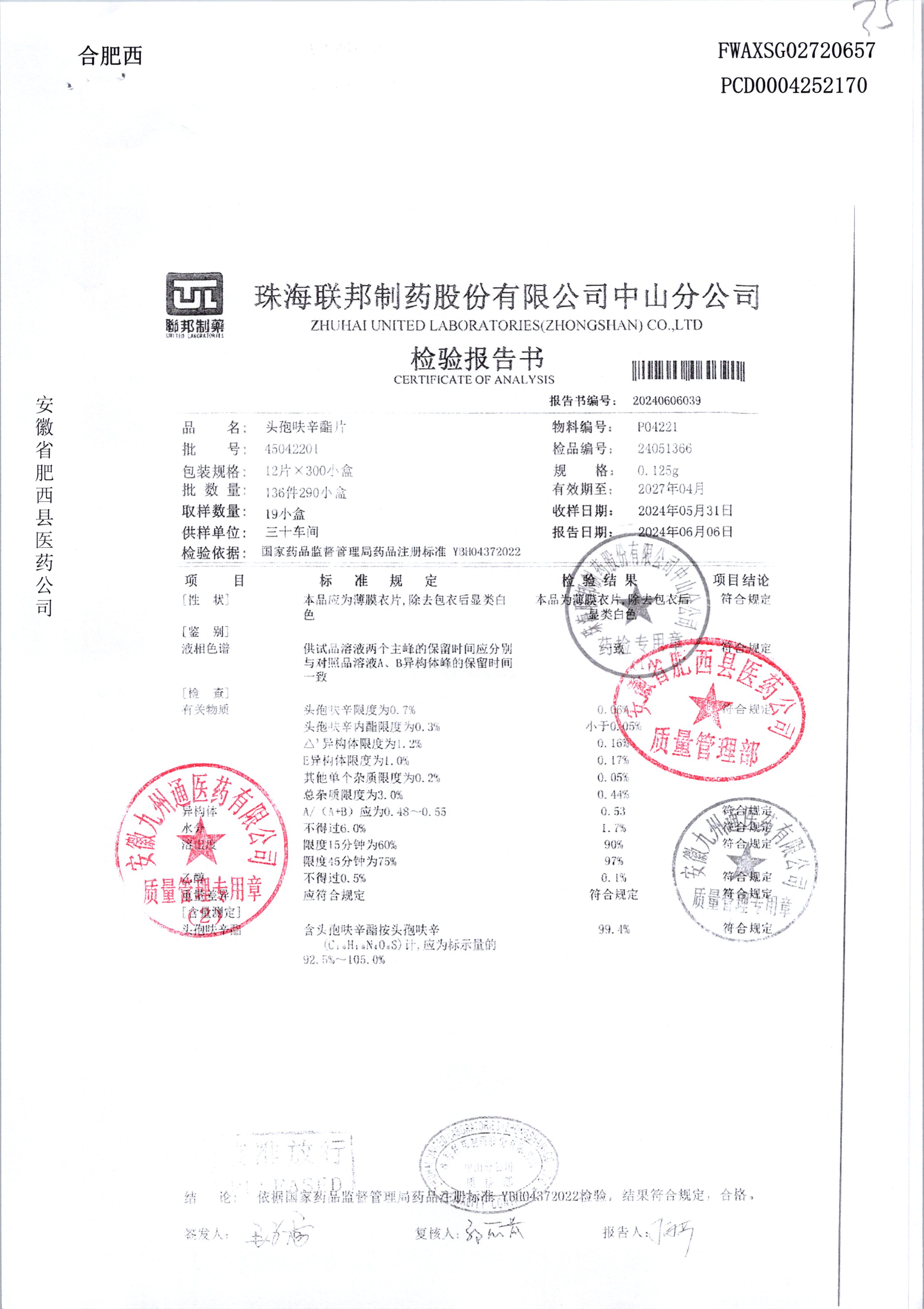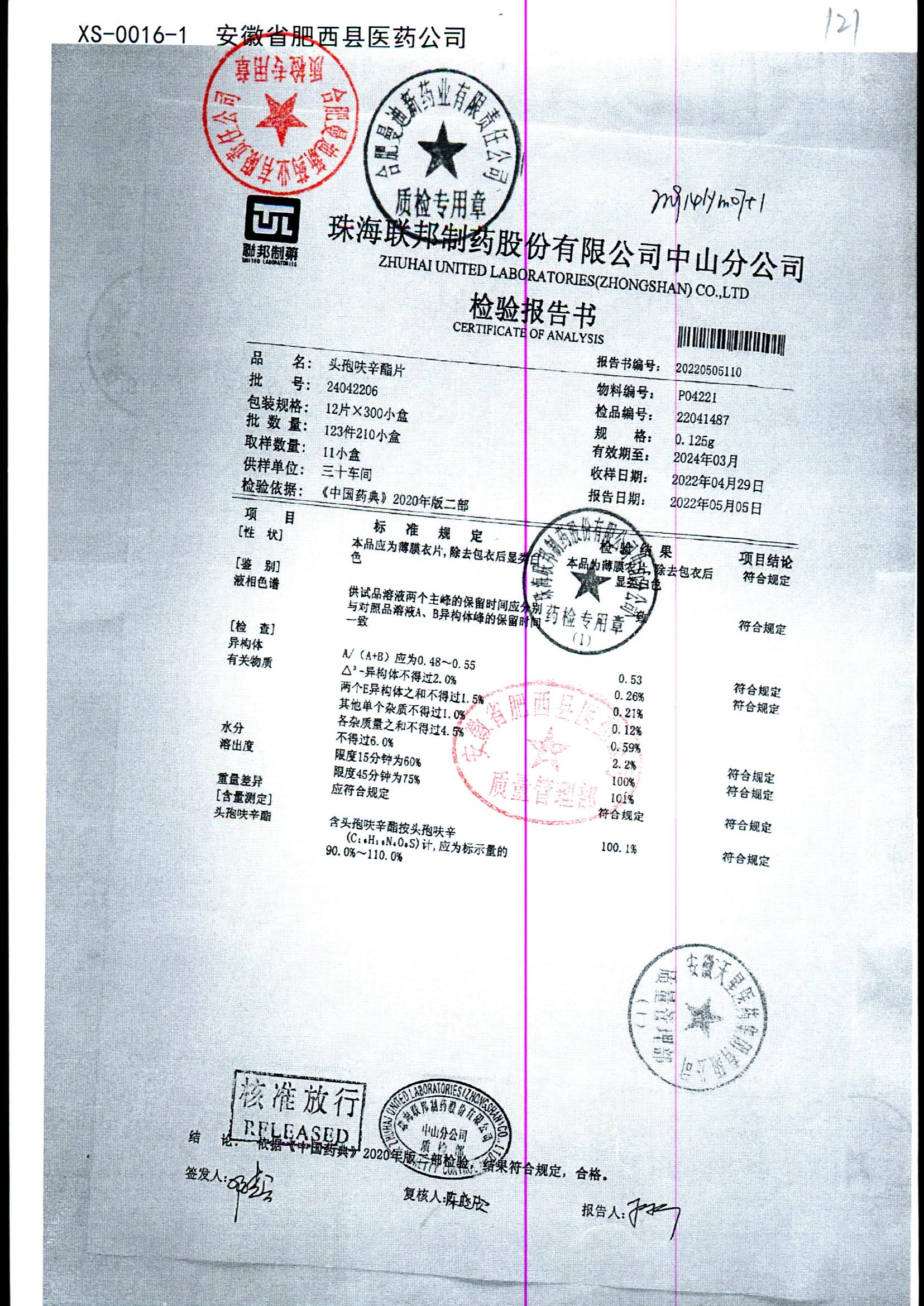 头孢呋辛酯片 | 0.125g*12片 | 4A042201 | 查看详情 |