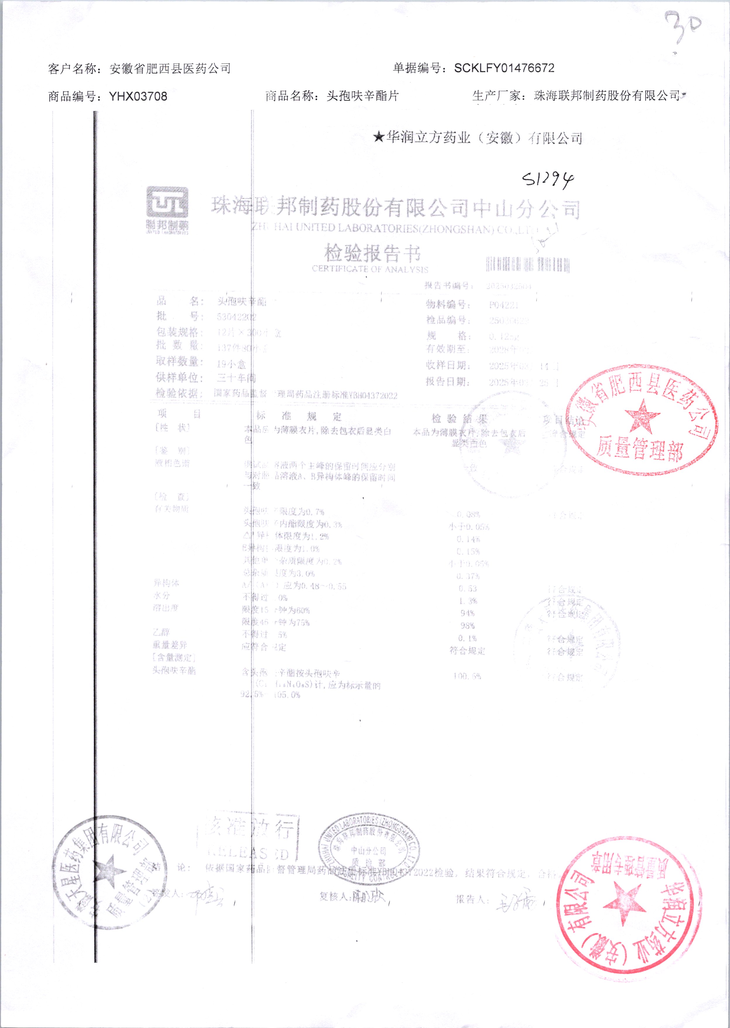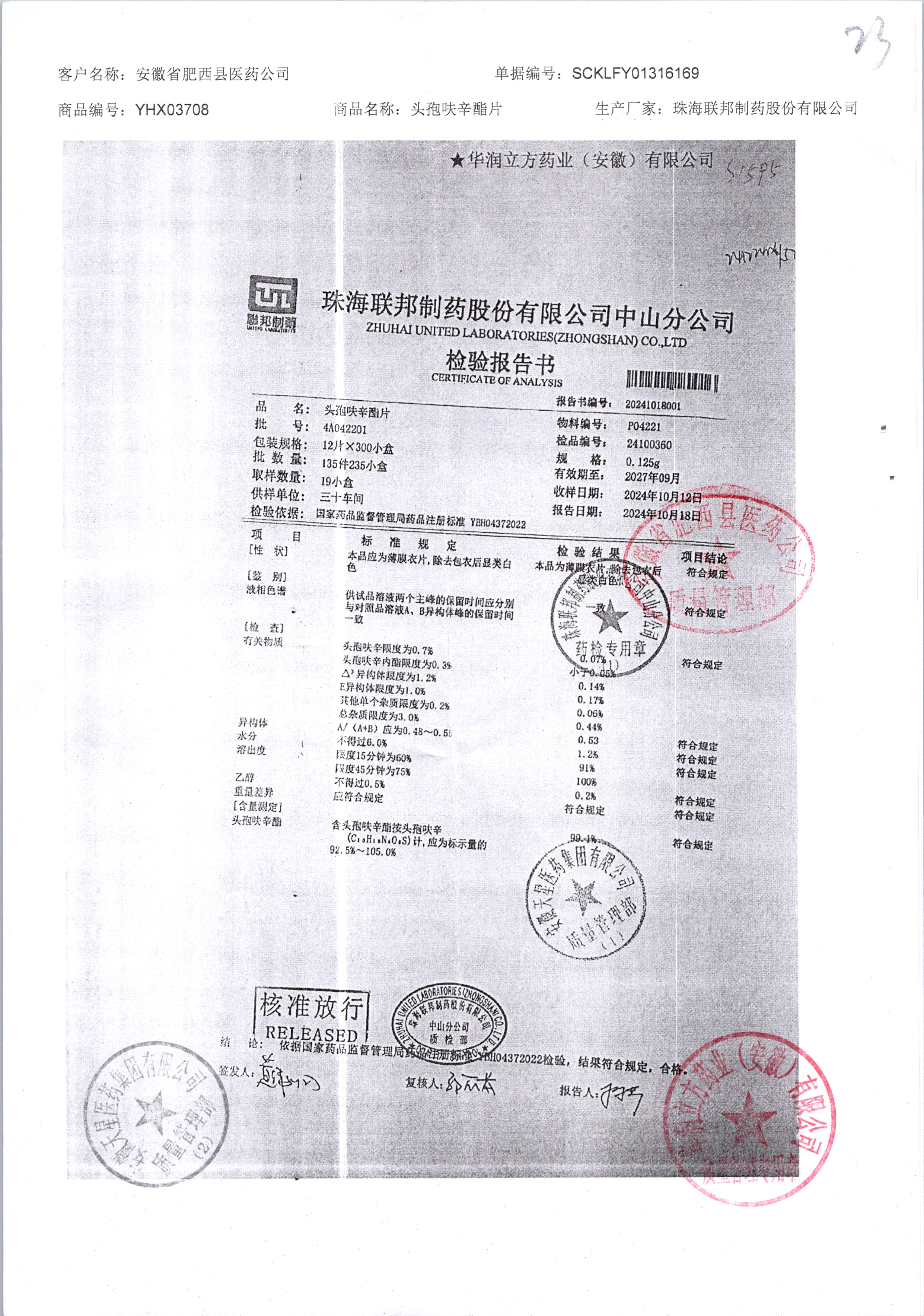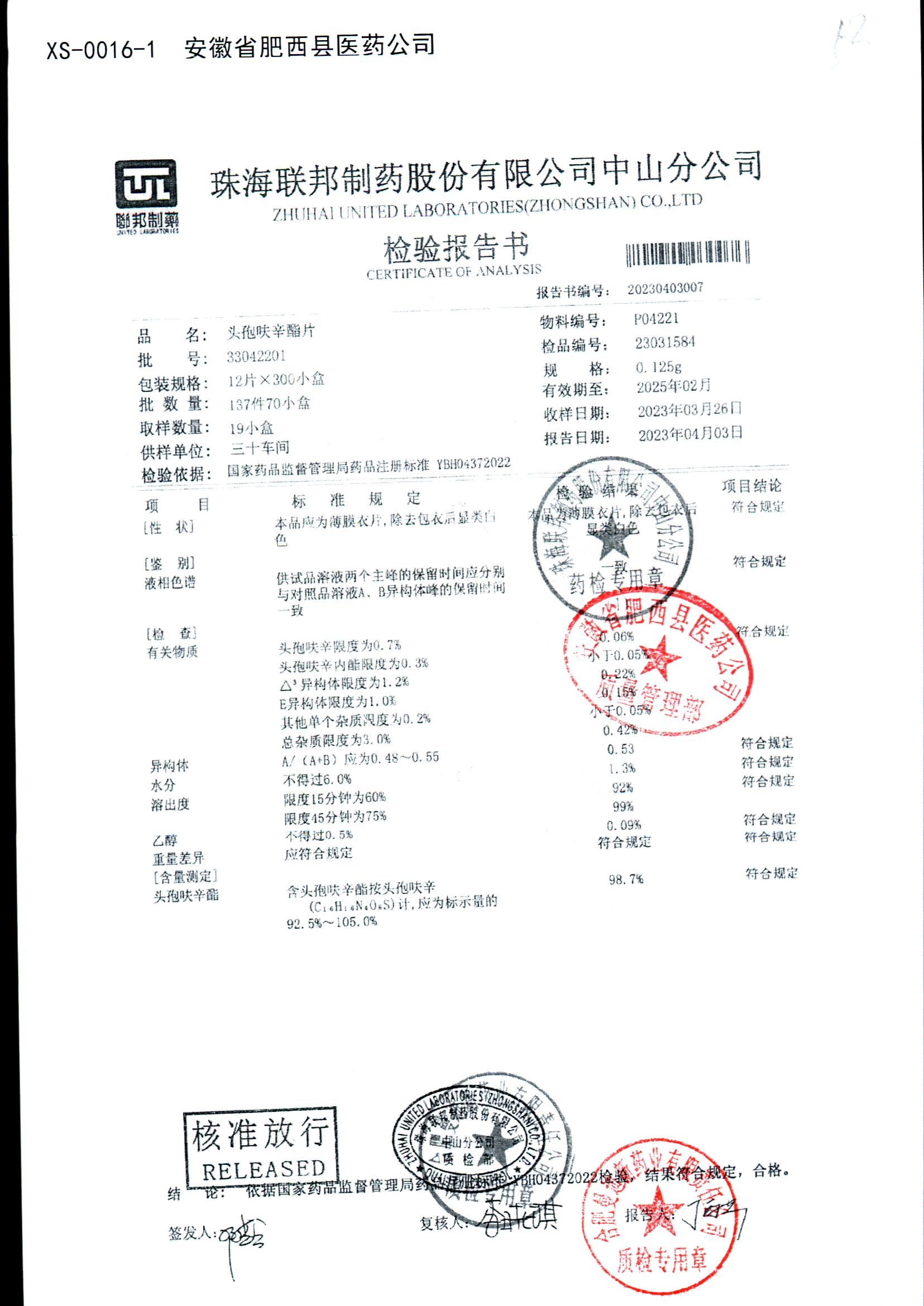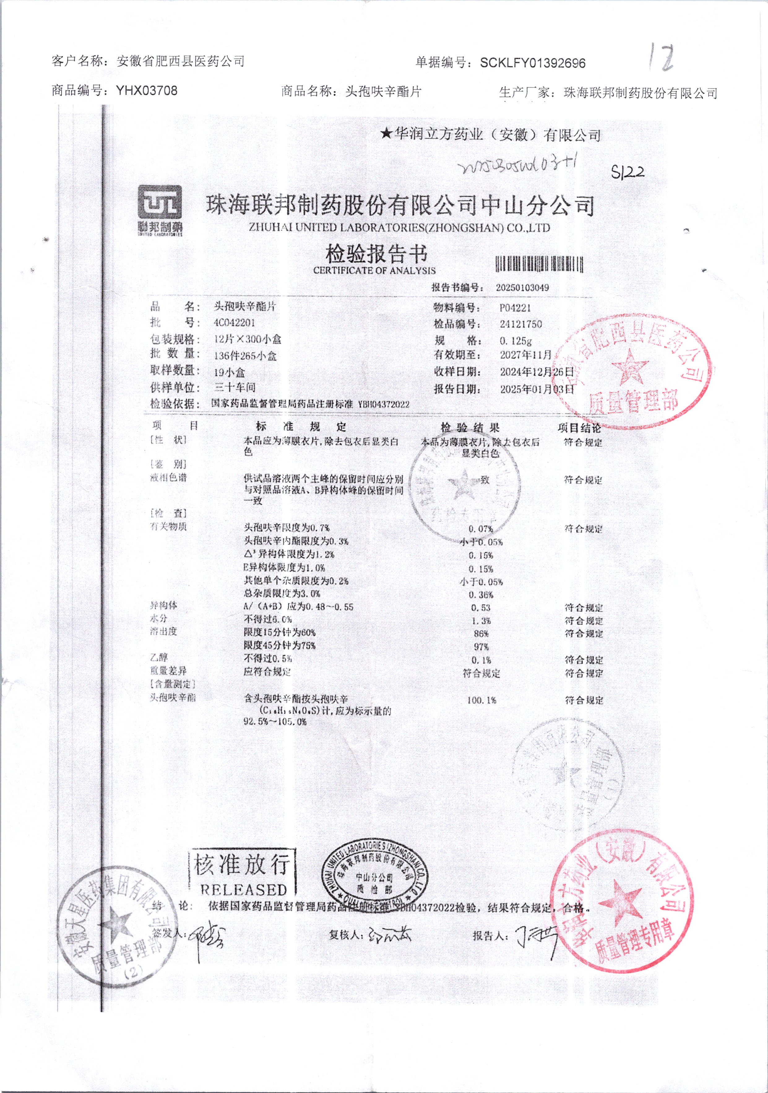 头孢呋辛酯片 | 0.125g*12片 | 4A042201 | 查看详情 |
