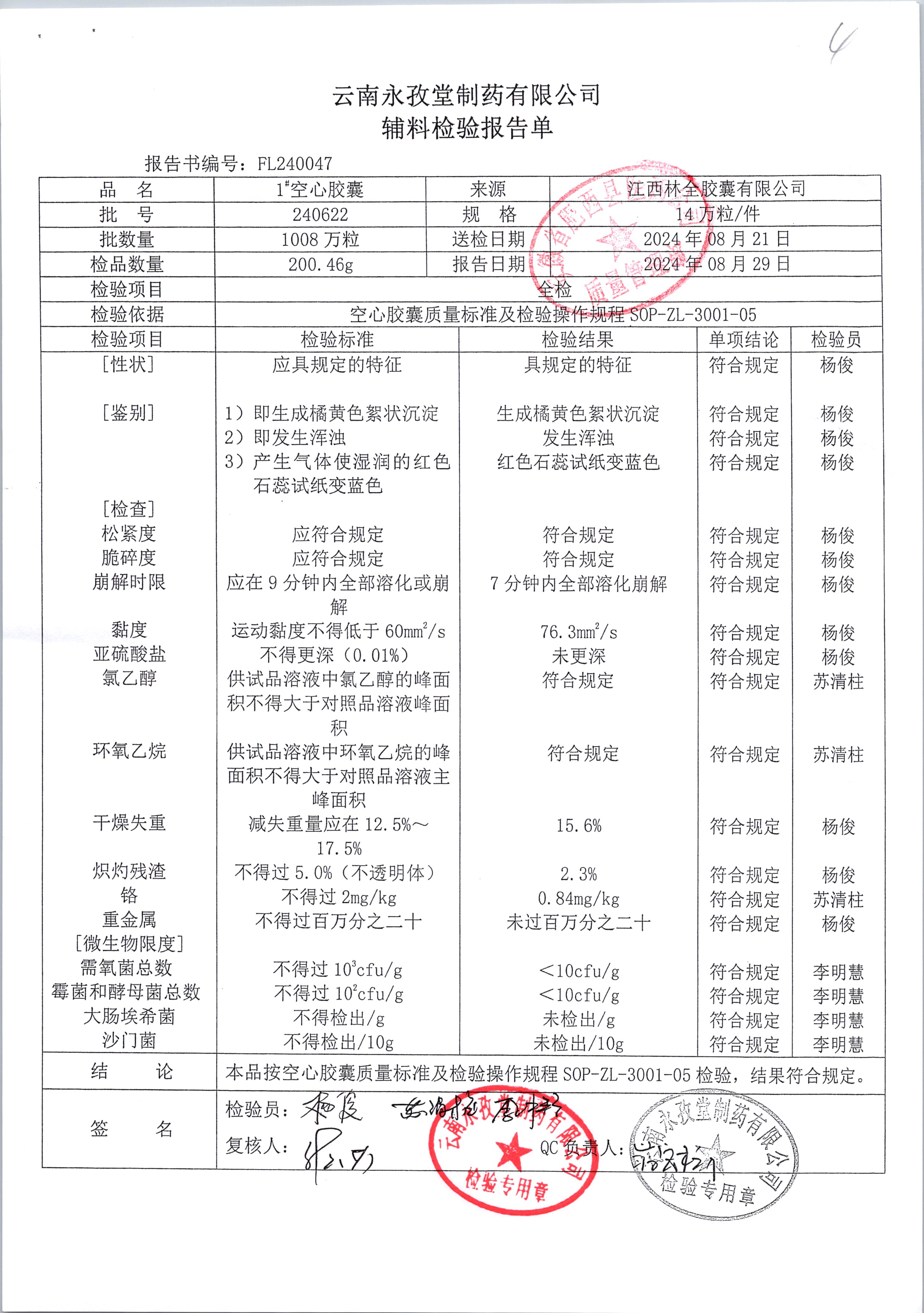 | 名称 | 规格 | 批号 | 药检报告 |