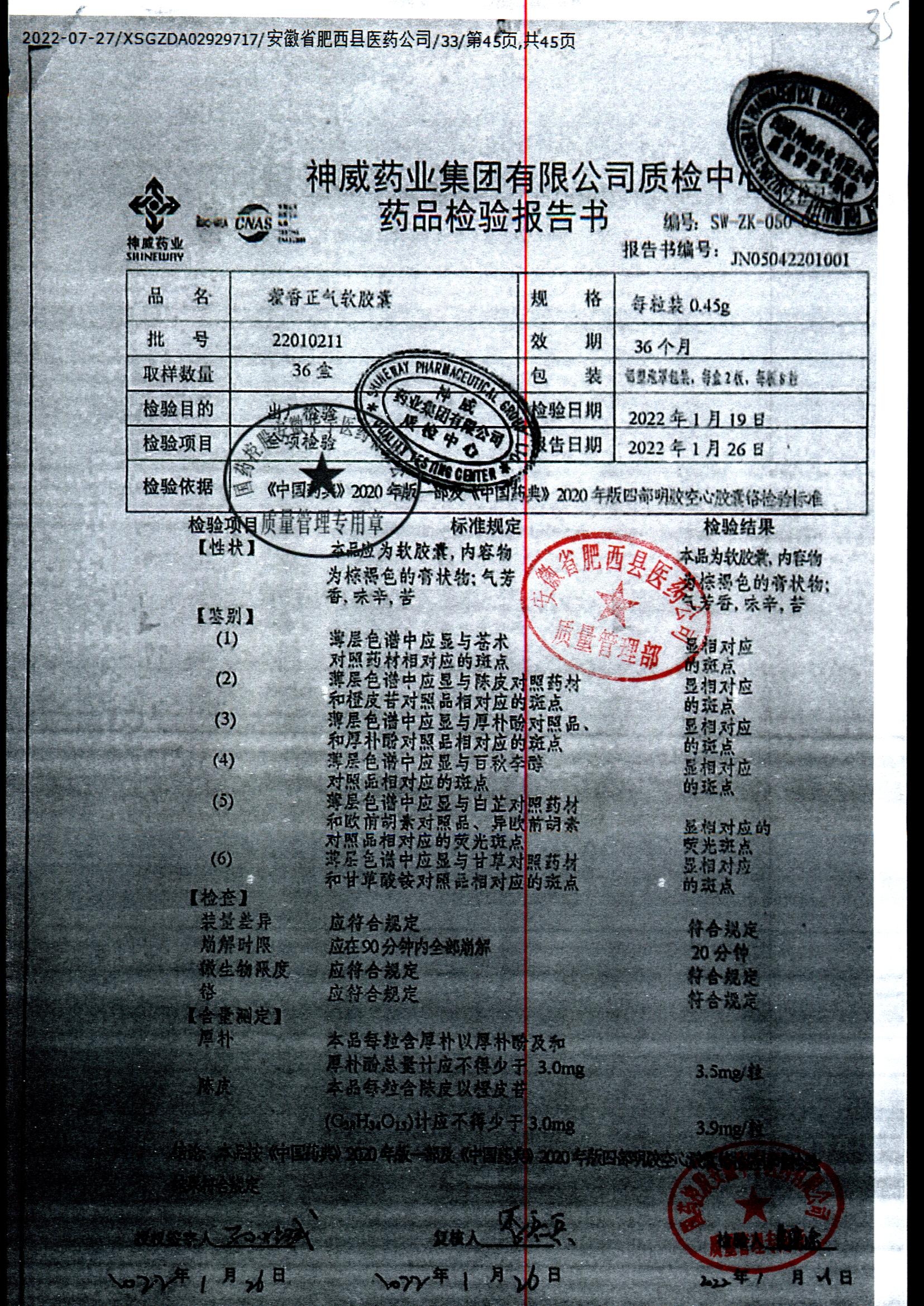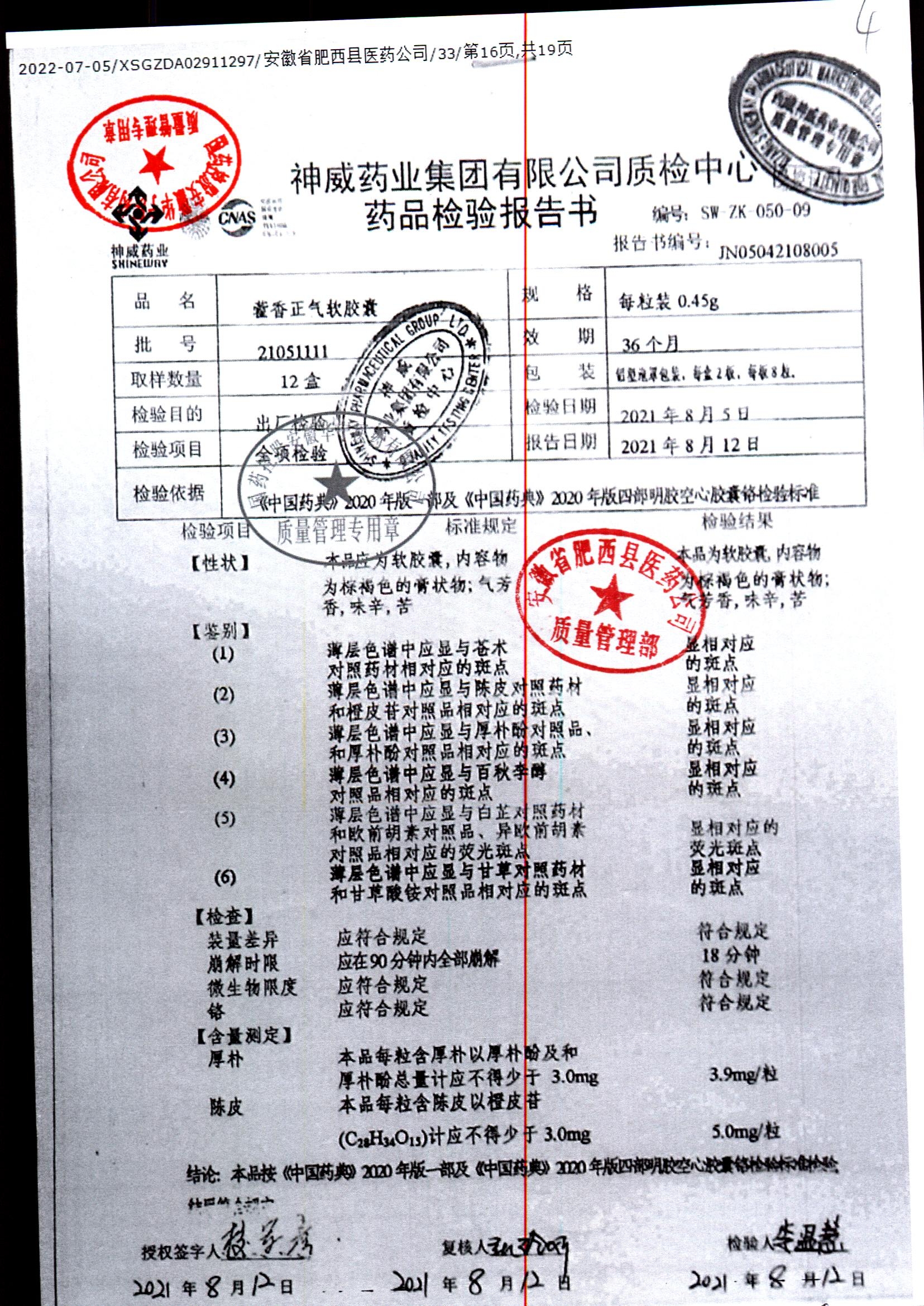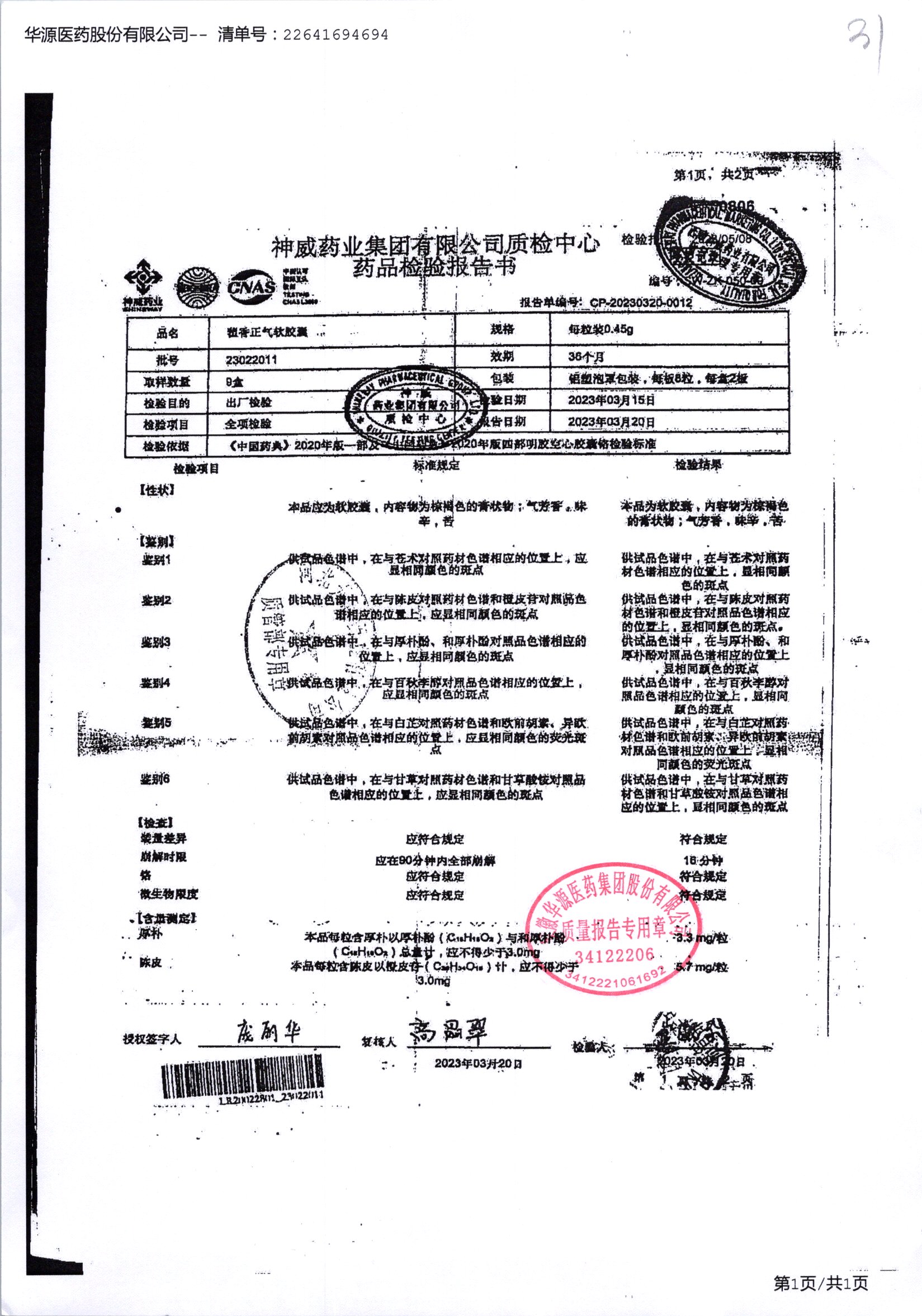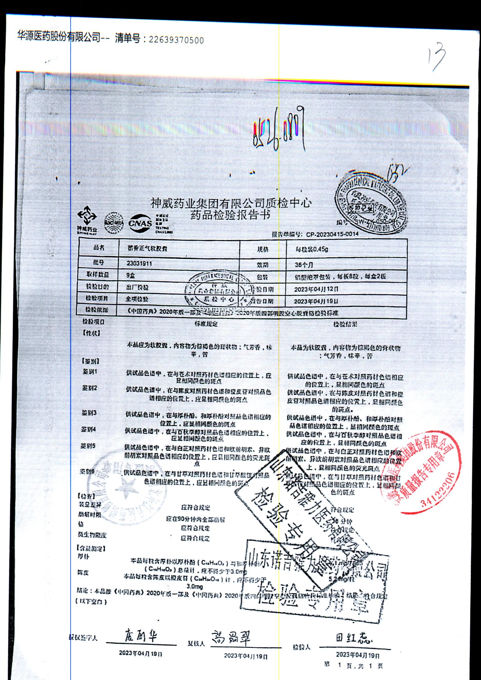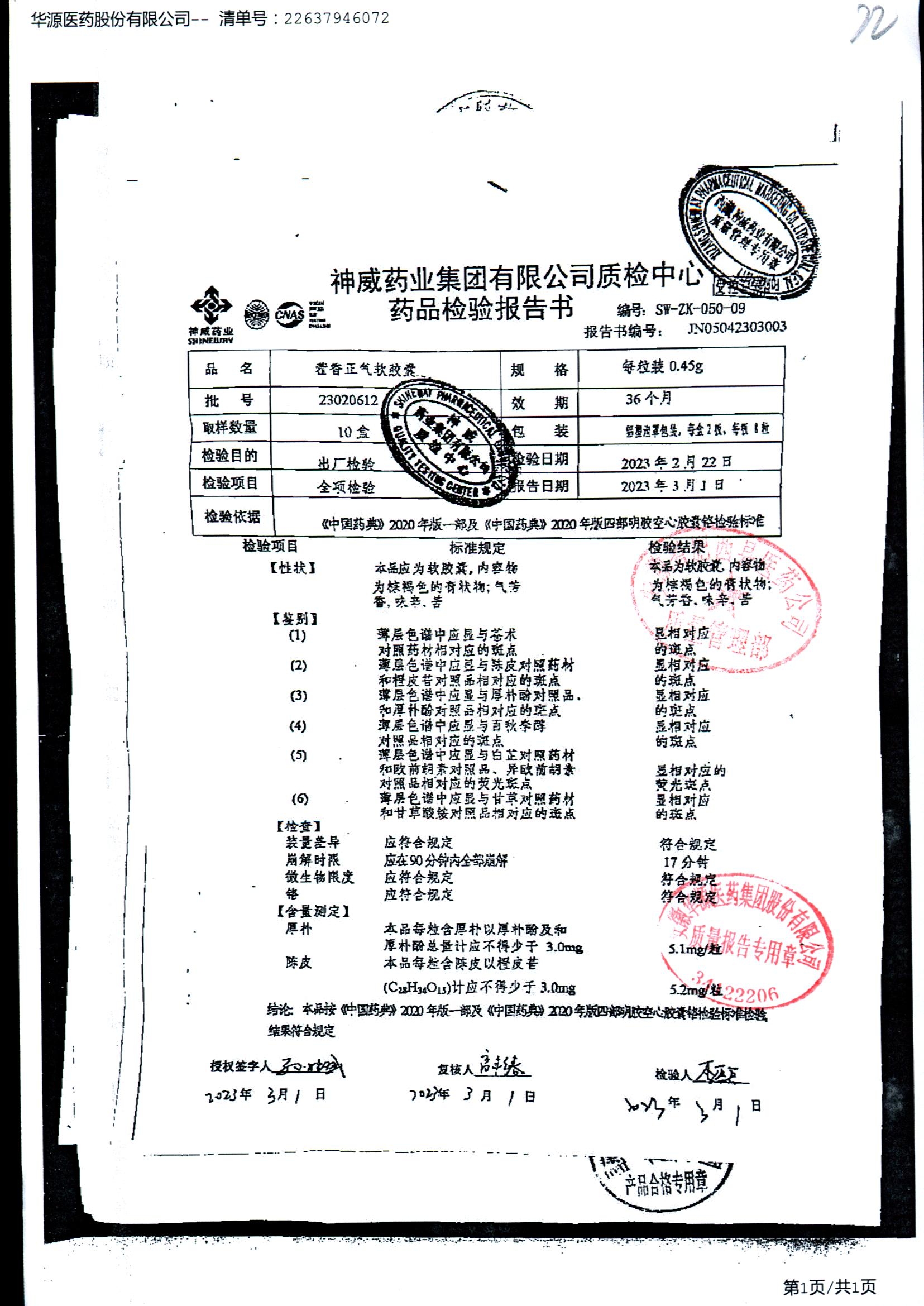 藿香正气软胶囊 | 0.45g*8粒*2板 | 23022011/2 | 查看详情 |
