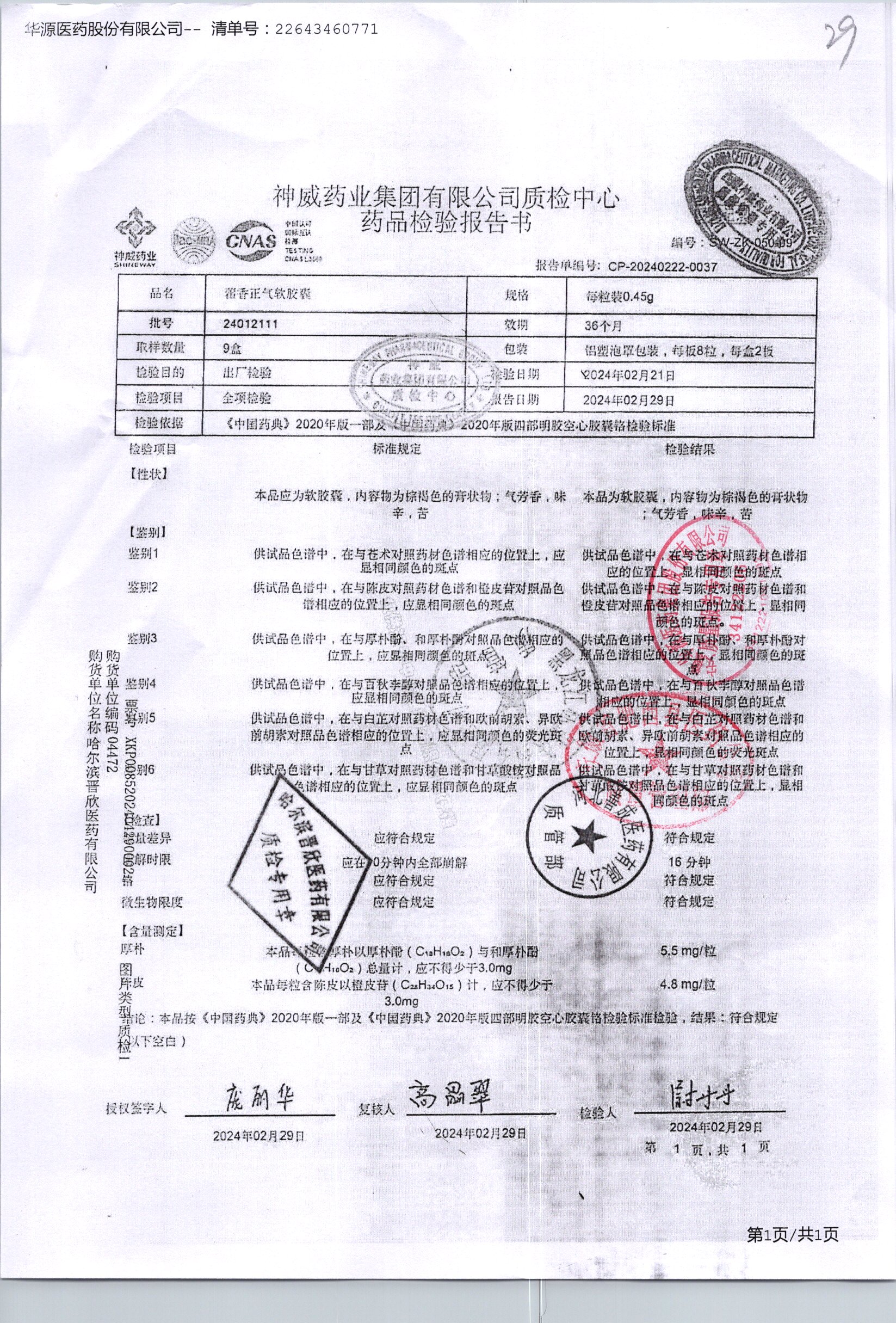 藿香正气软胶囊 | 0.45g*8粒*2板 | 24012111 | 查看详情 |