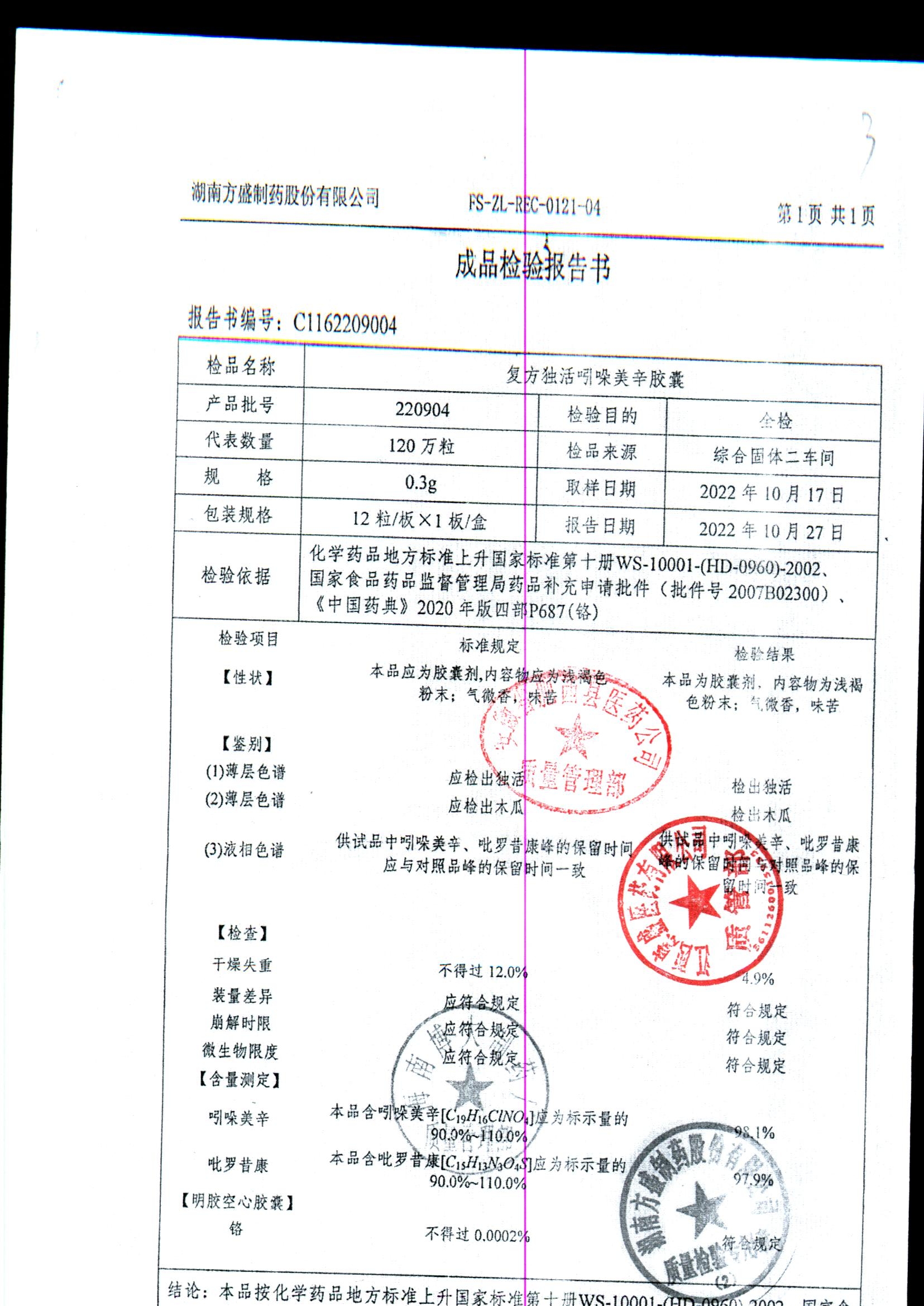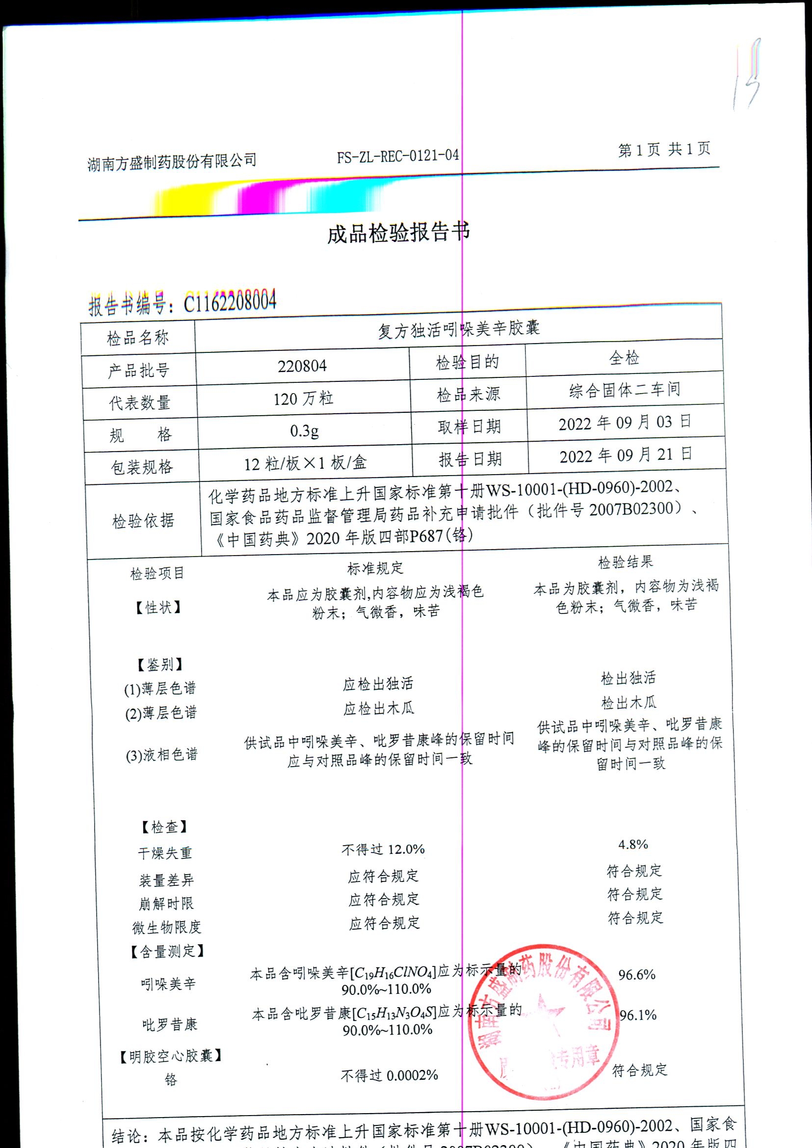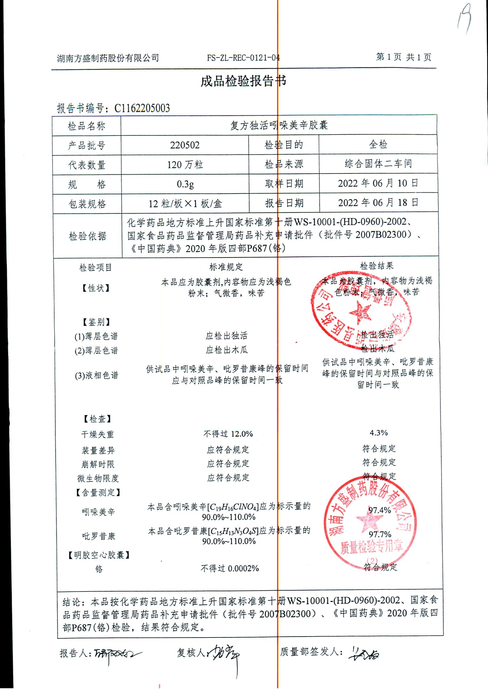 复方独活吲哚美辛胶囊 | 0.3g*12粒 | 220804 | 查看详情 |