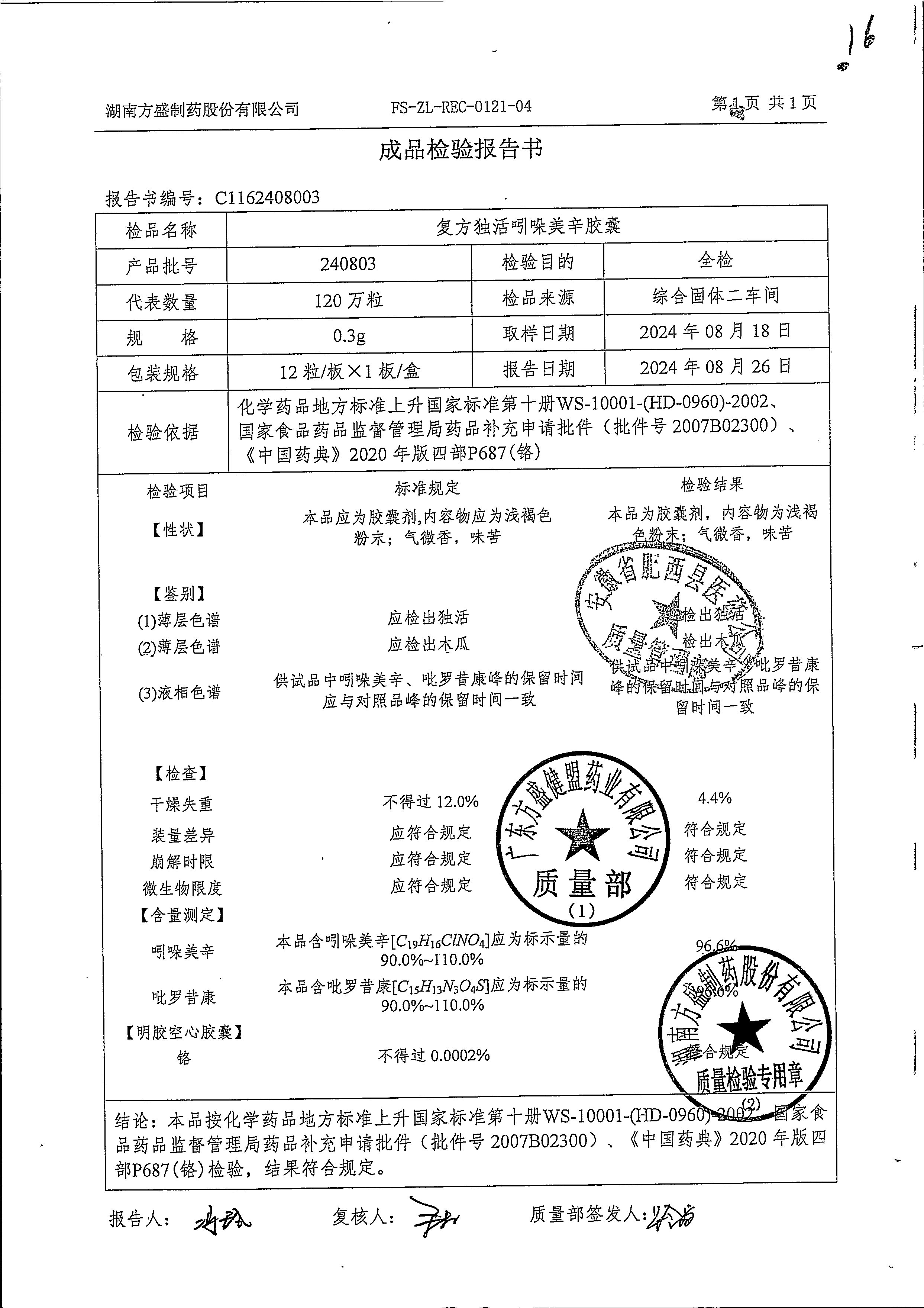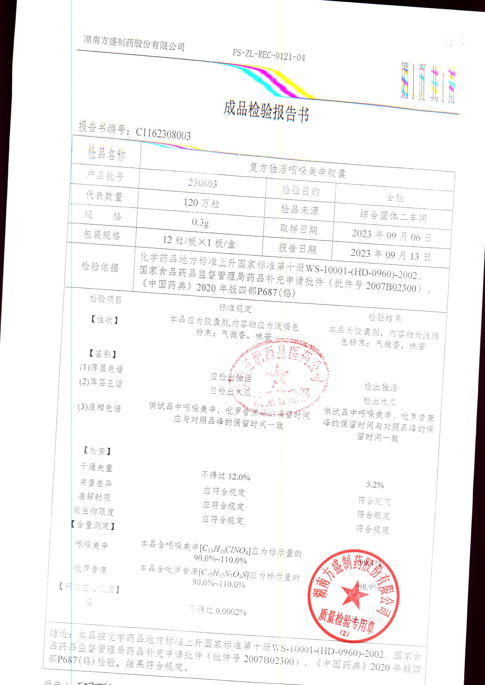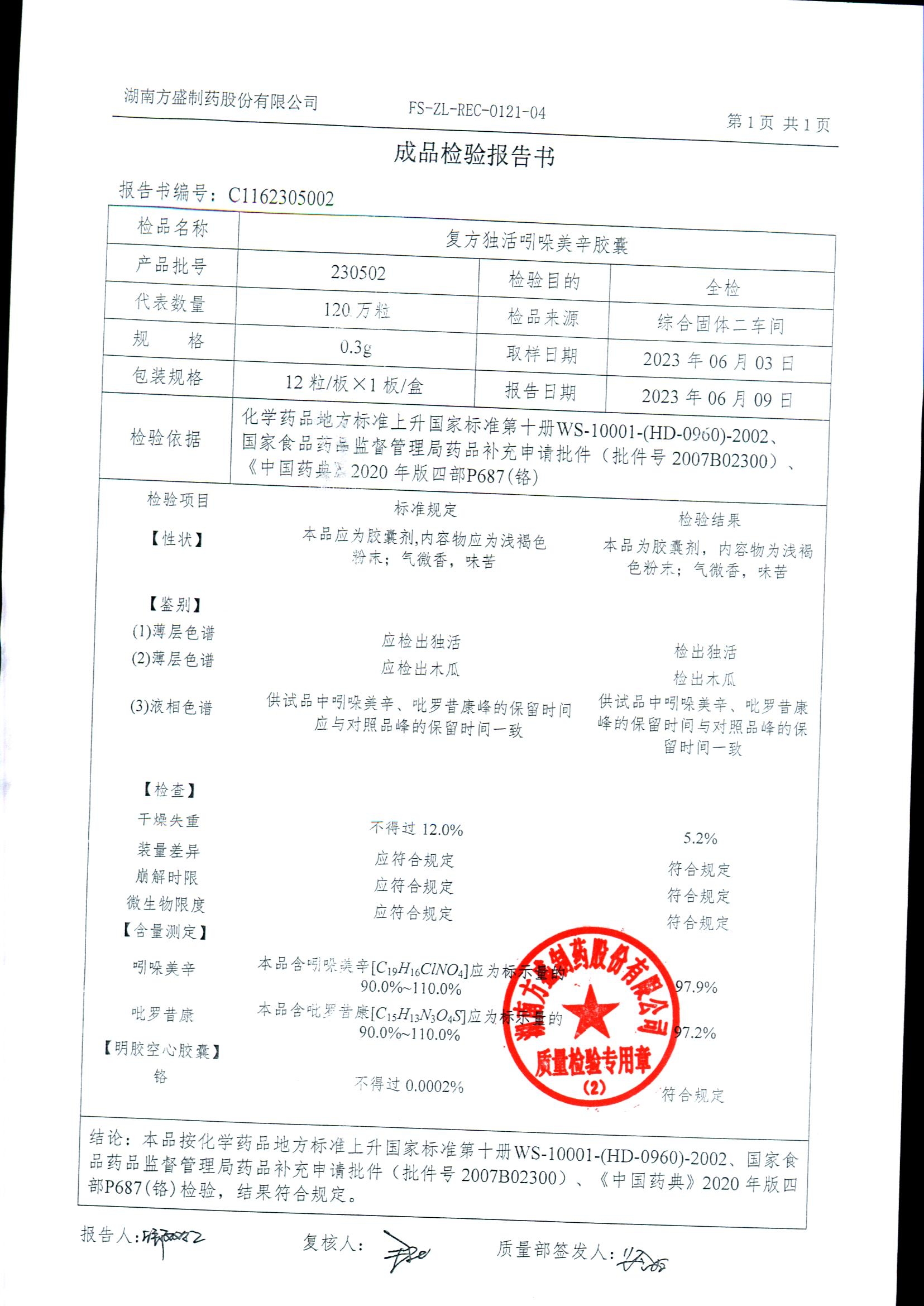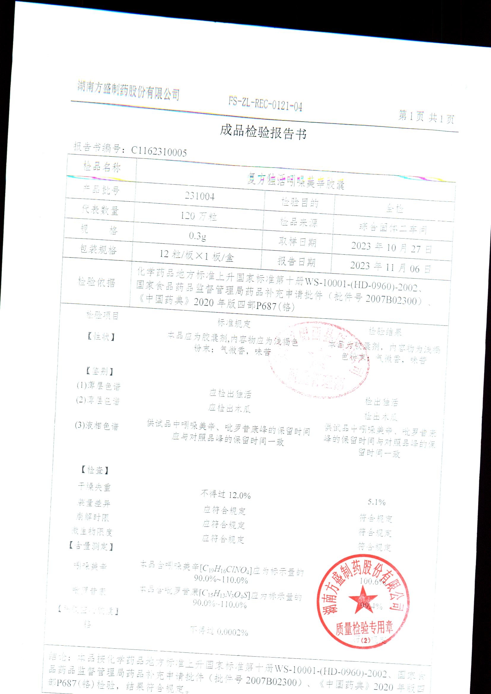 复方独活吲哚美辛胶囊 | 0.3g*12粒 | 240803 | 查看详情 |