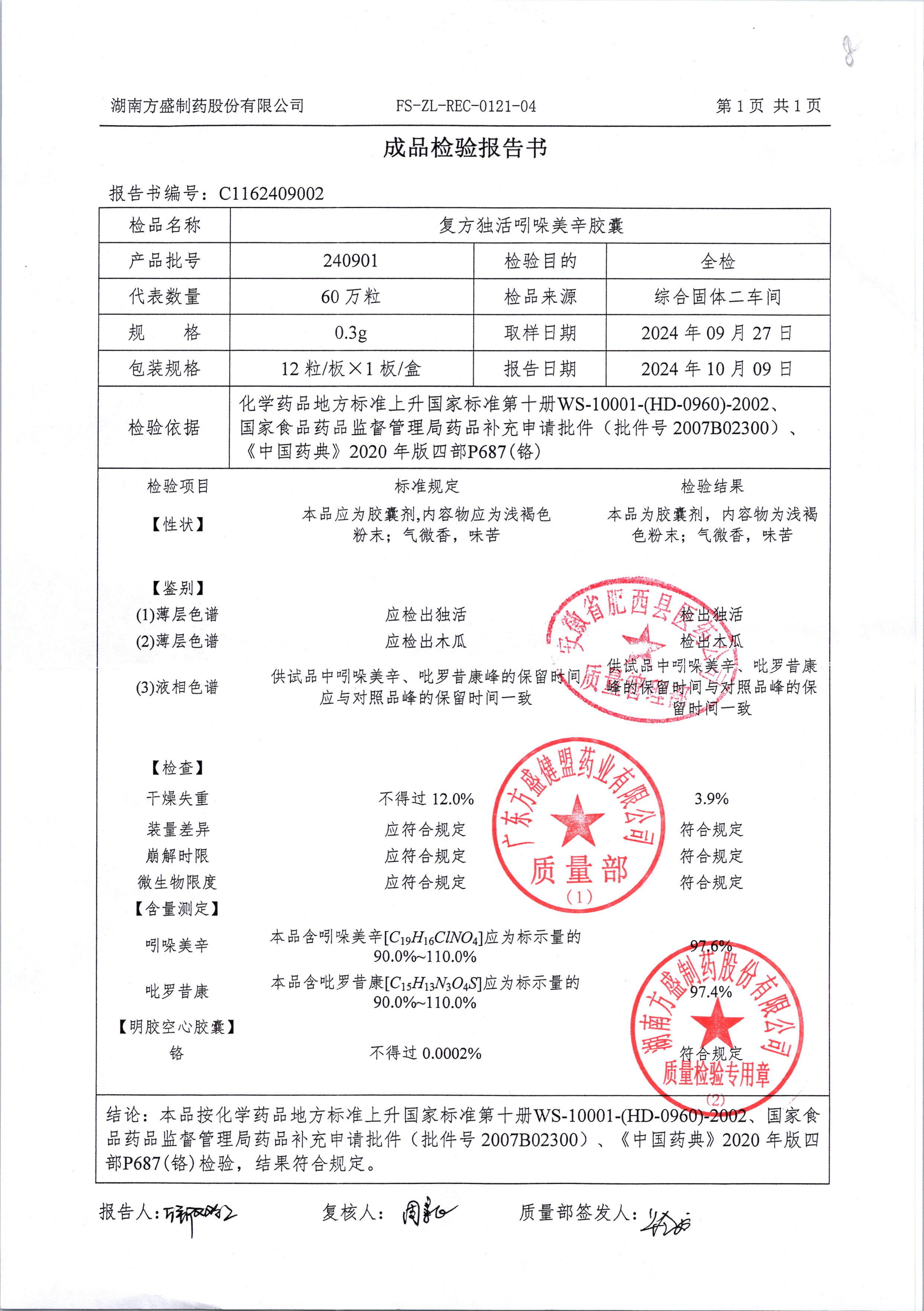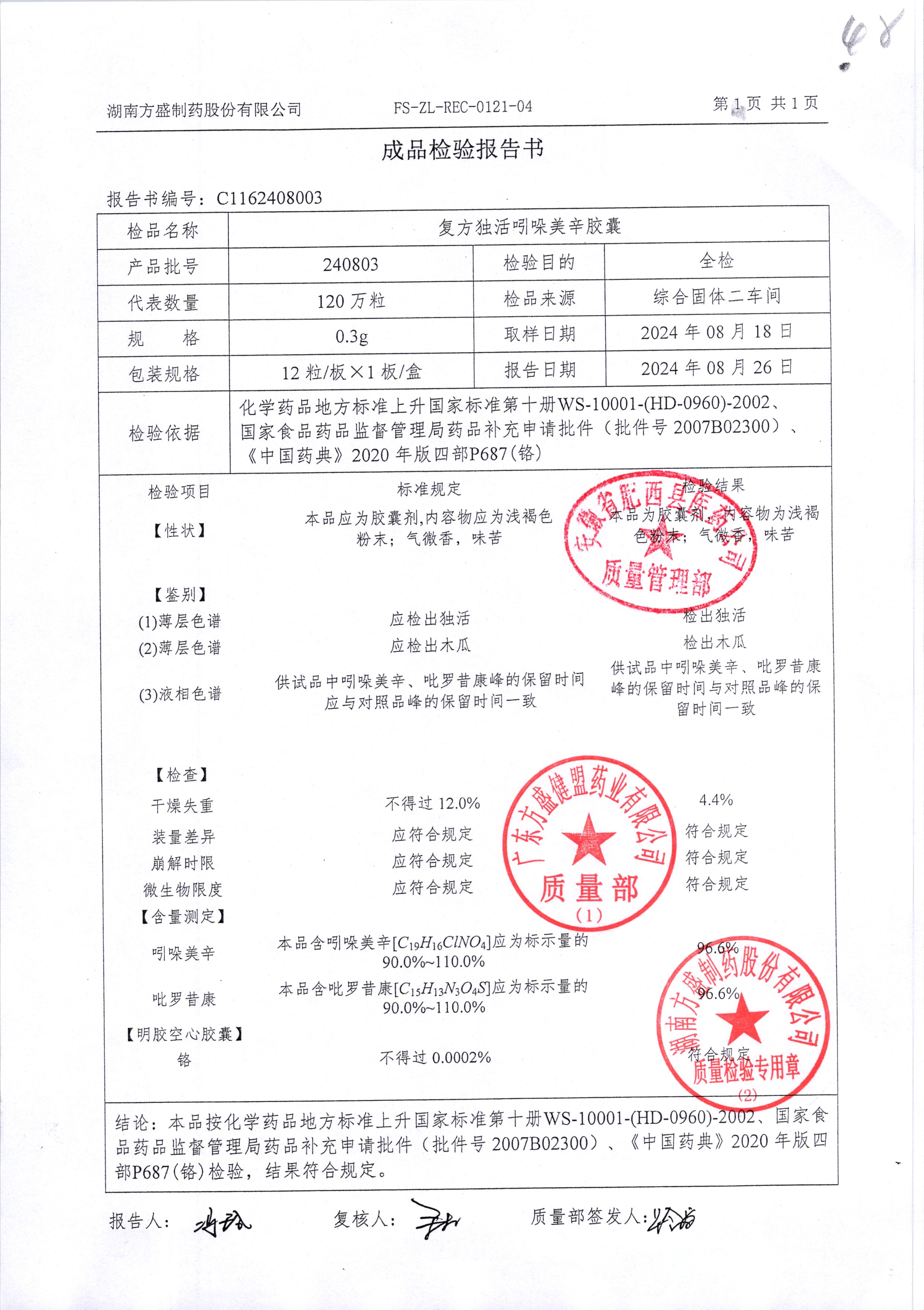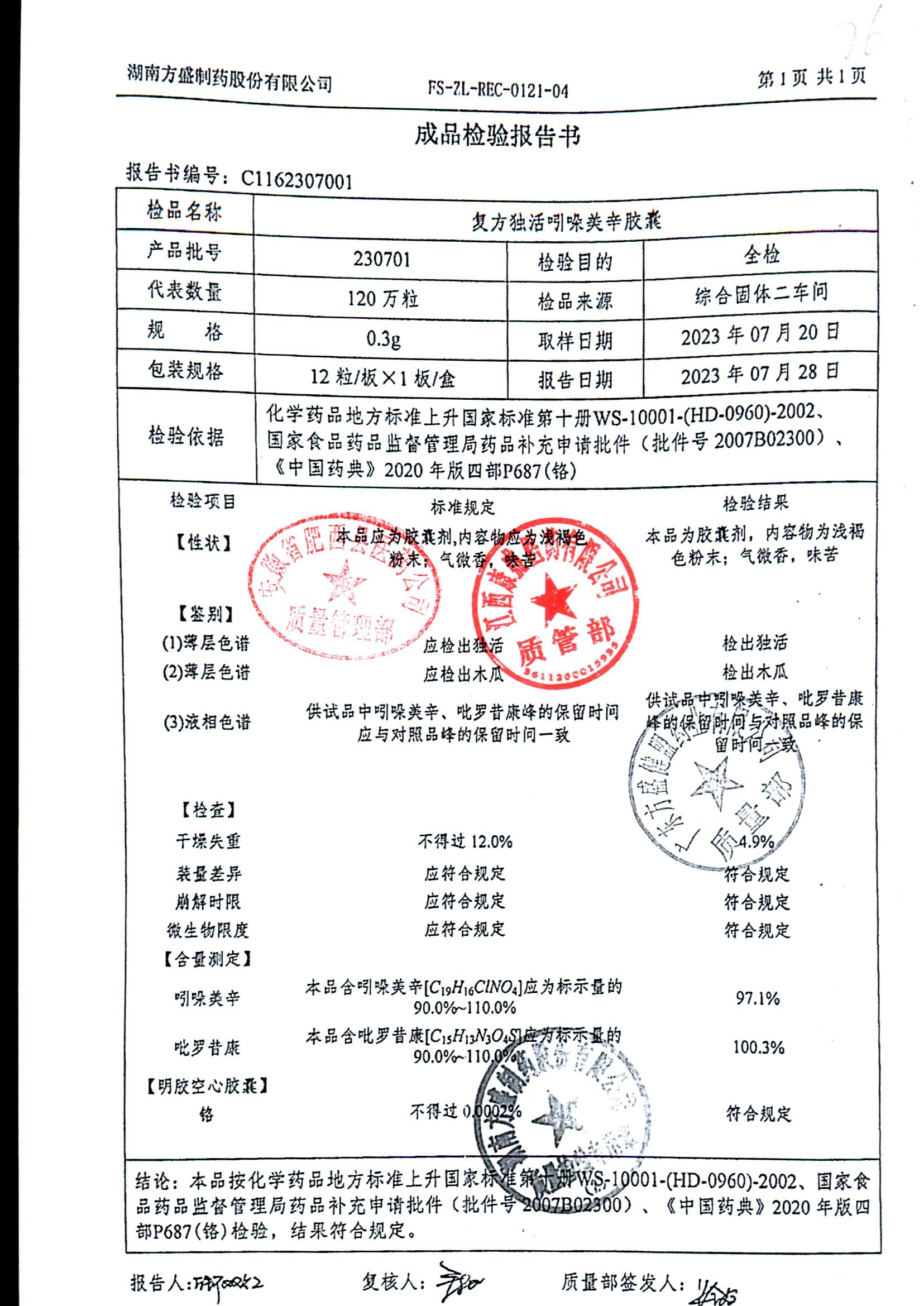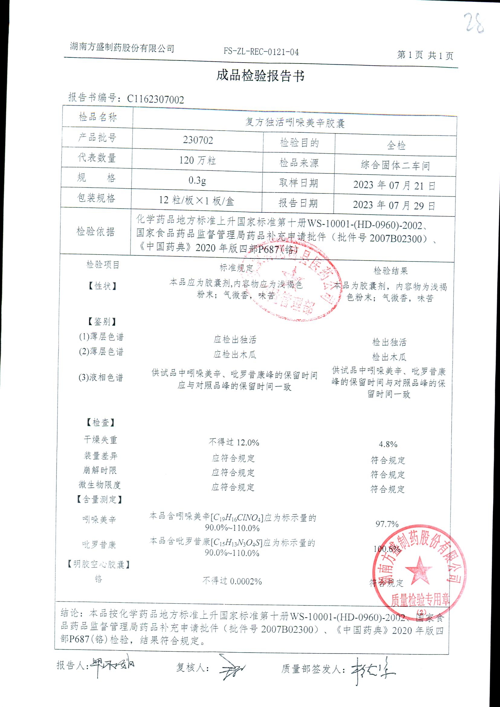 复方独活吲哚美辛胶囊 | 0.3g*12粒 | 240803 | 查看详情 |