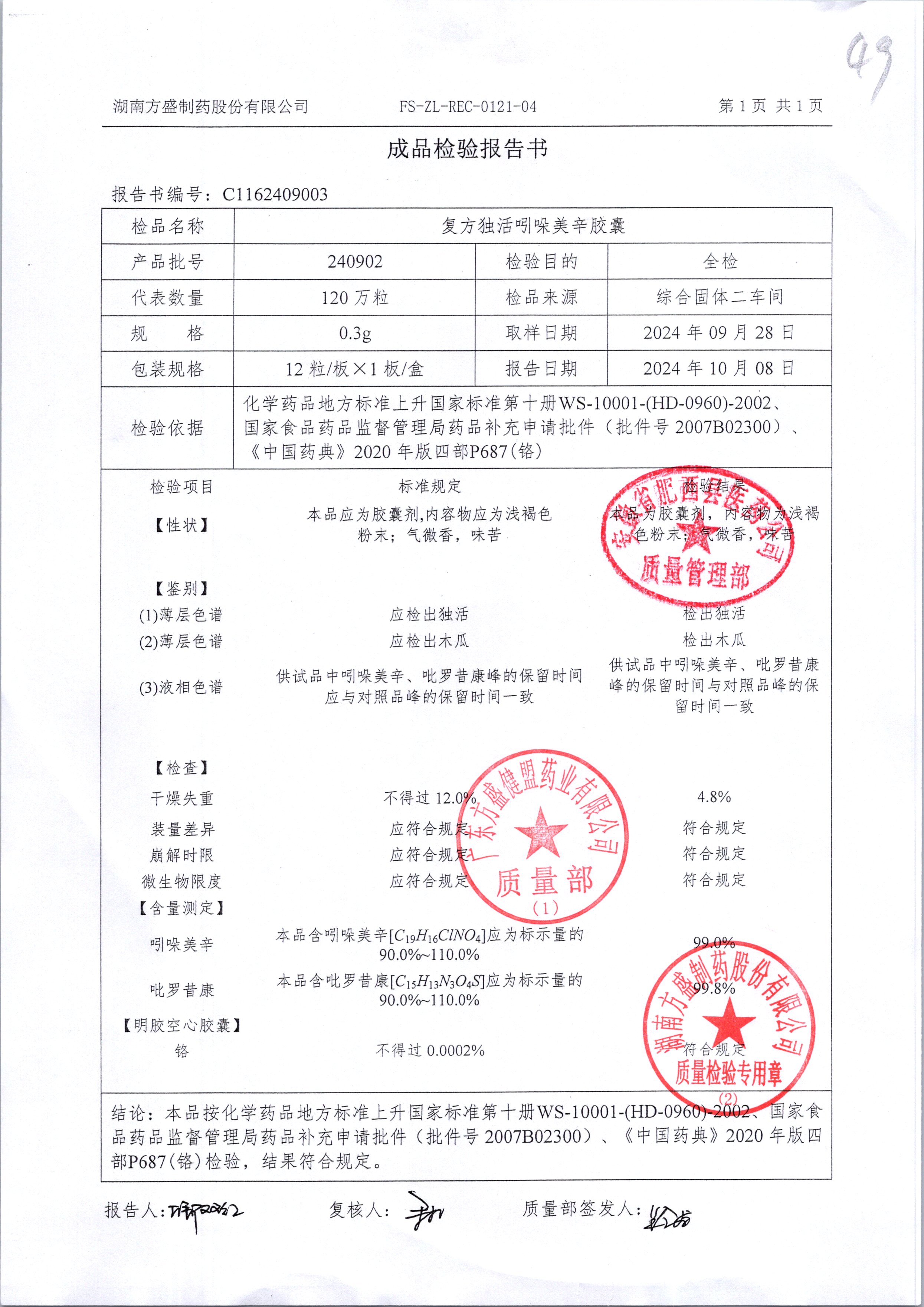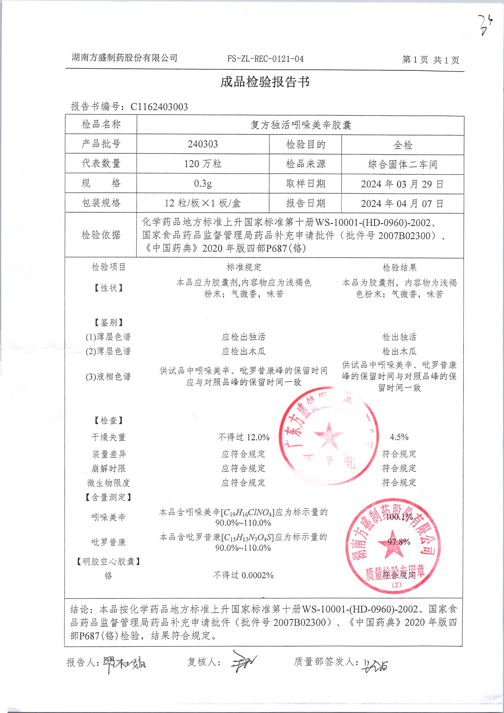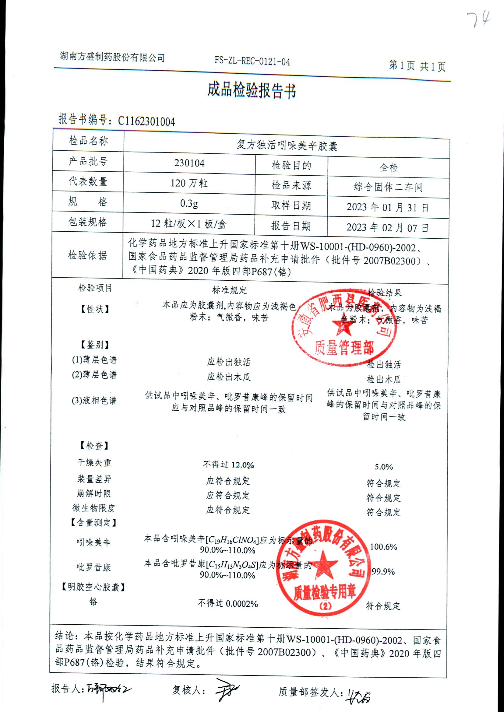 复方独活吲哚美辛胶囊 | 0.3g*12粒 | 240504 | 查看详情 |