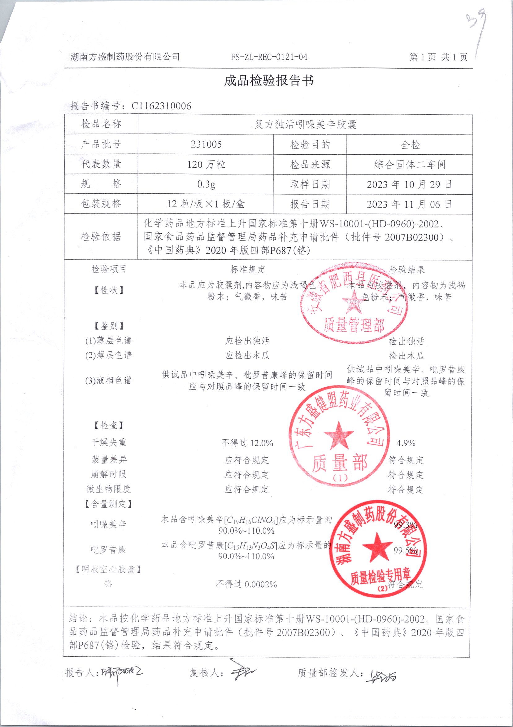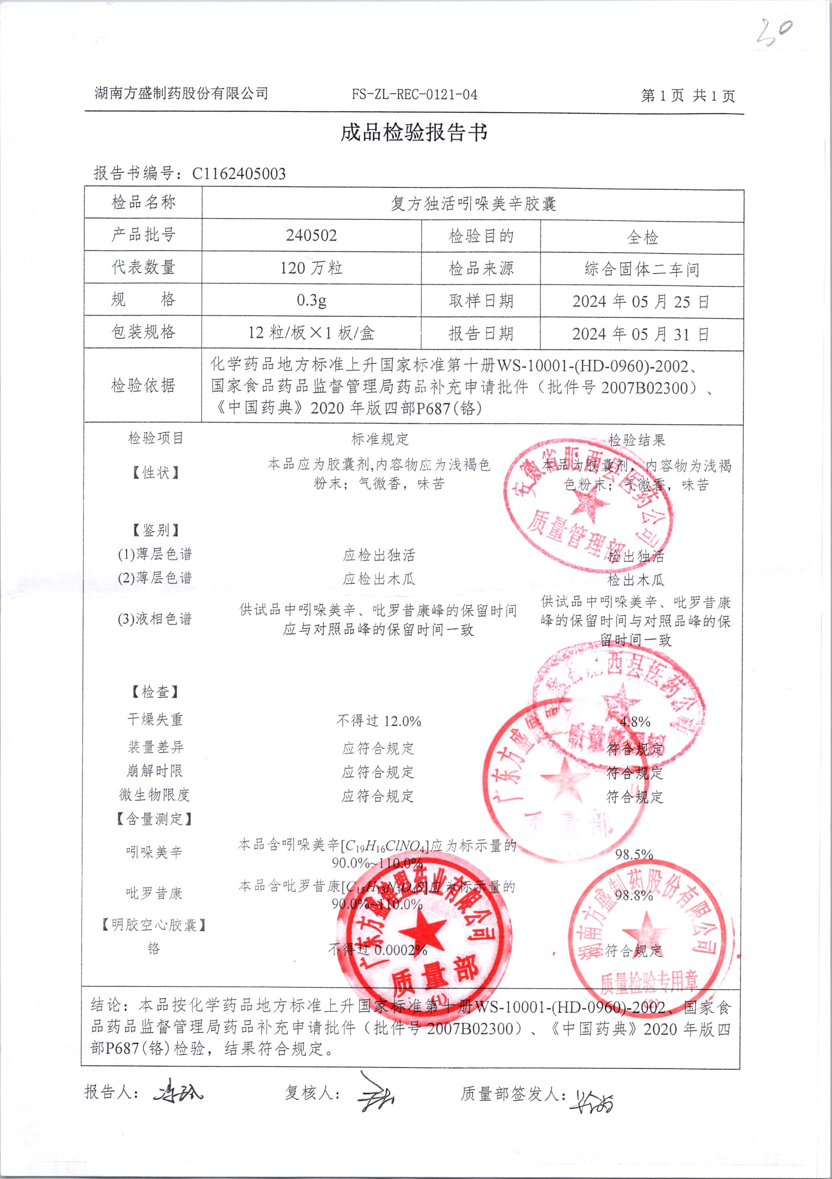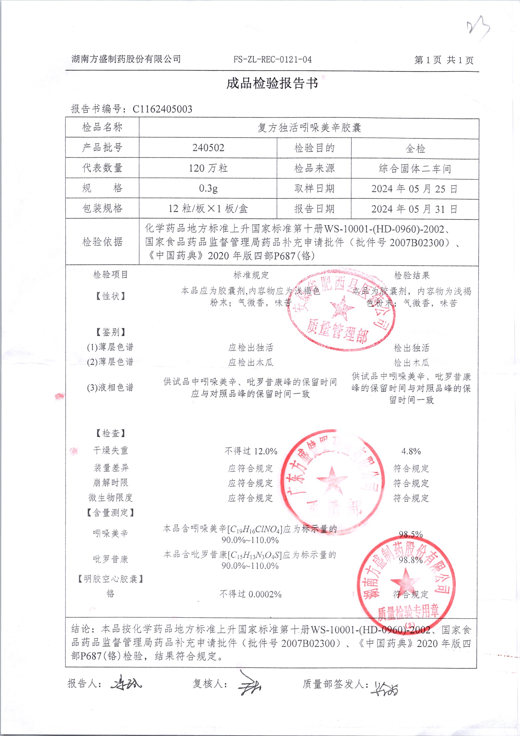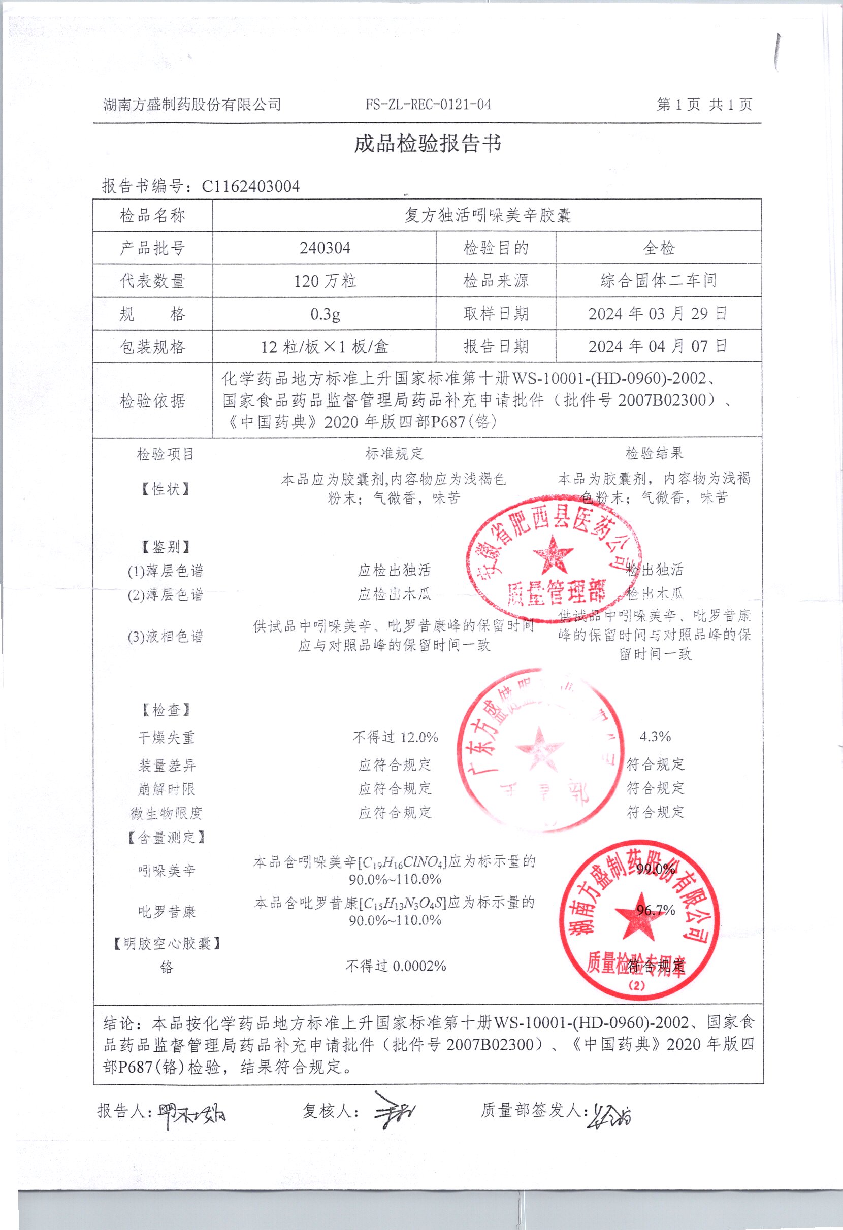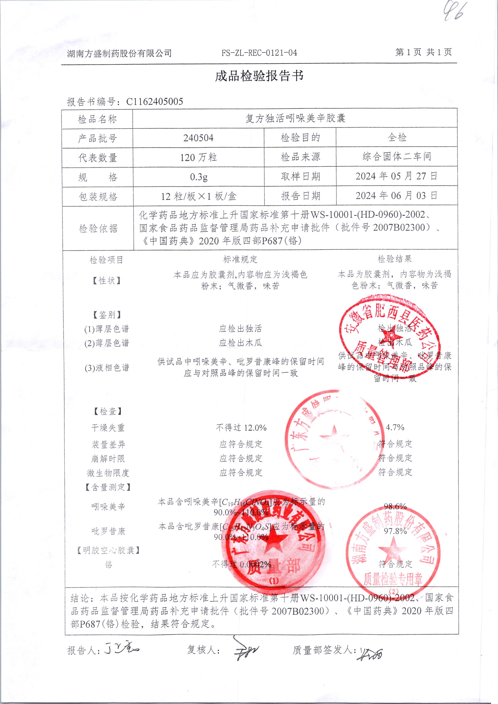 复方独活吲哚美辛胶囊 | 0.3g*12粒 | 240505 | 查看详情 |