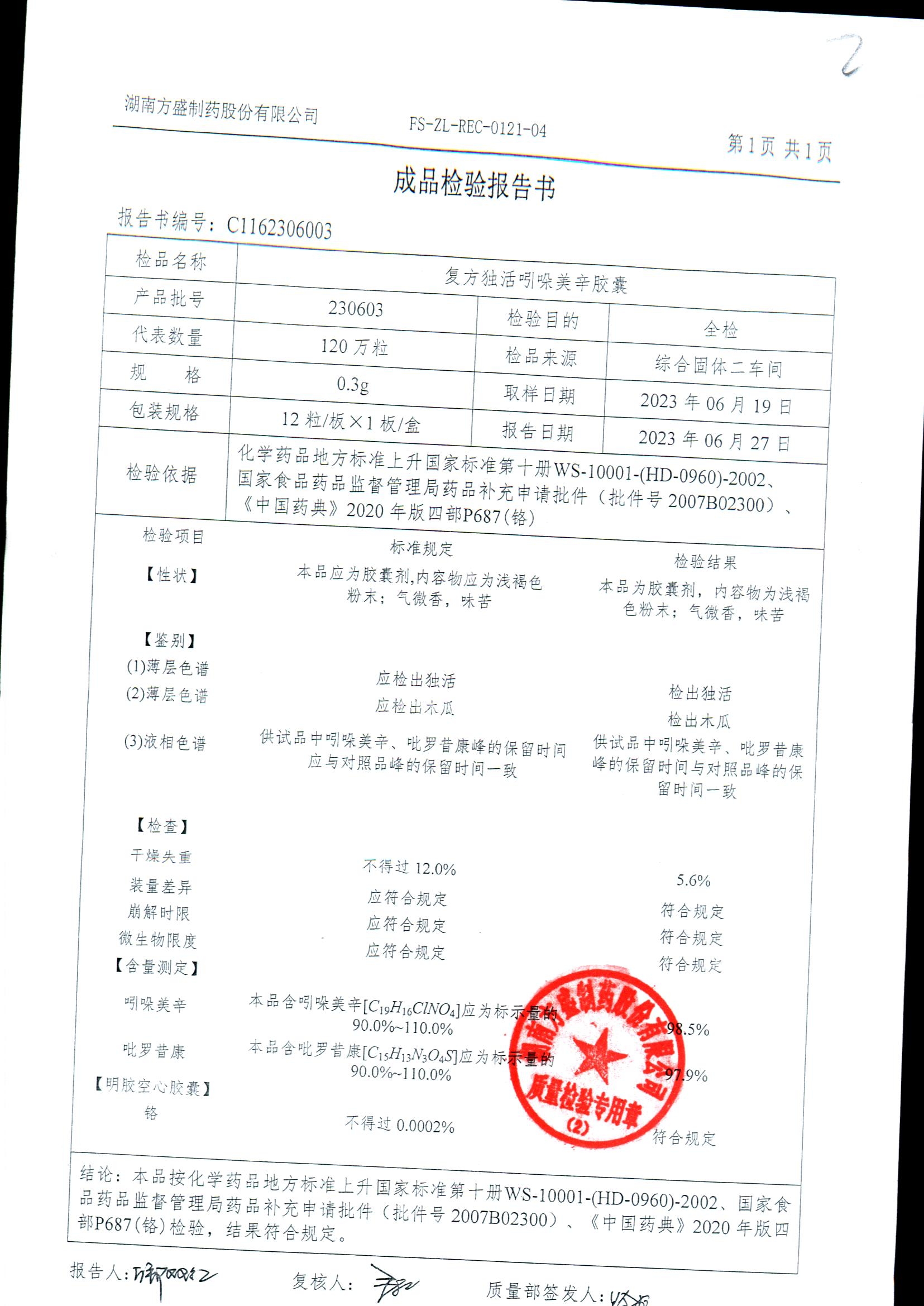 复方独活吲哚美辛胶囊 | 0.3g*12粒 | 230603 | 查看详情 |