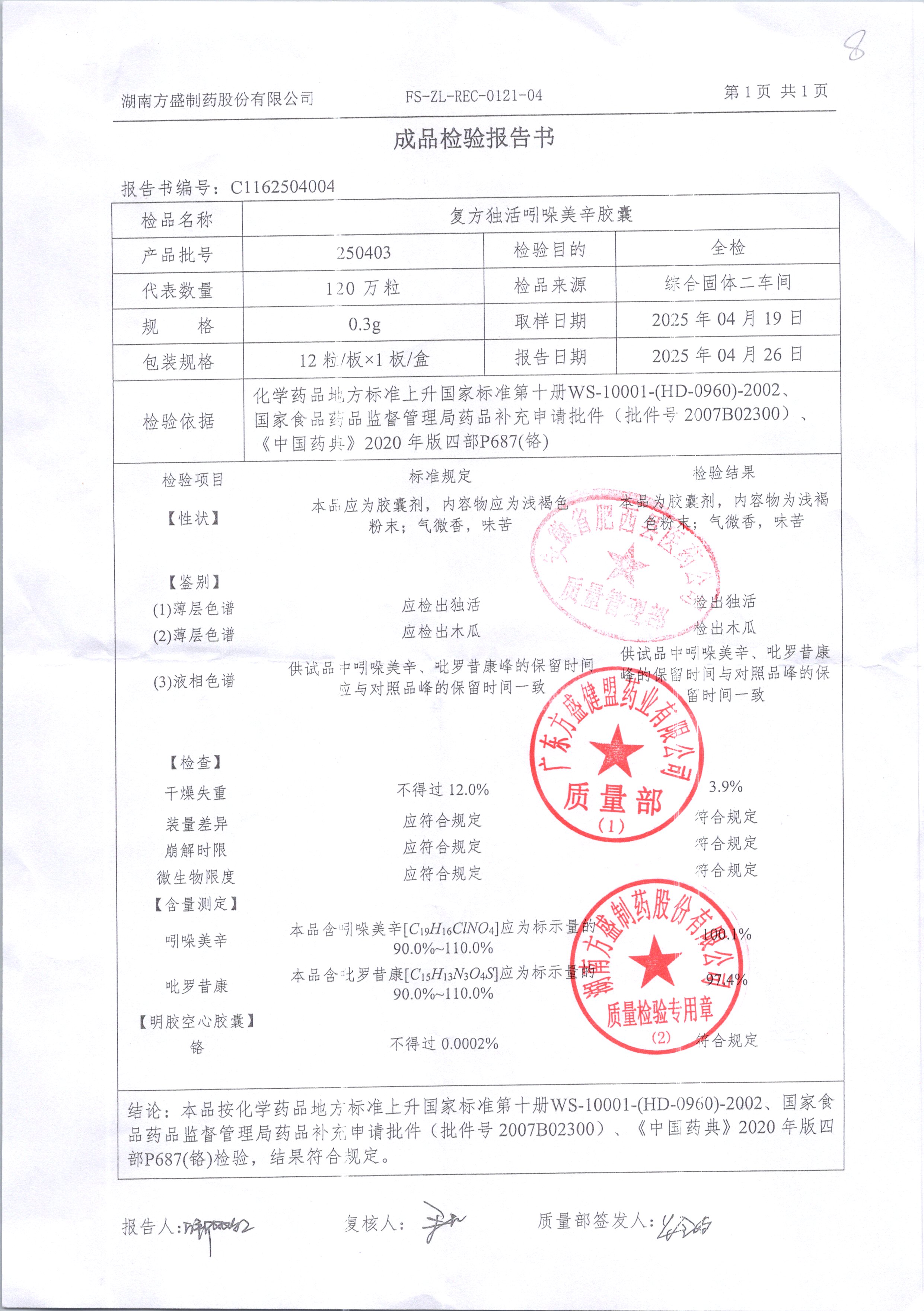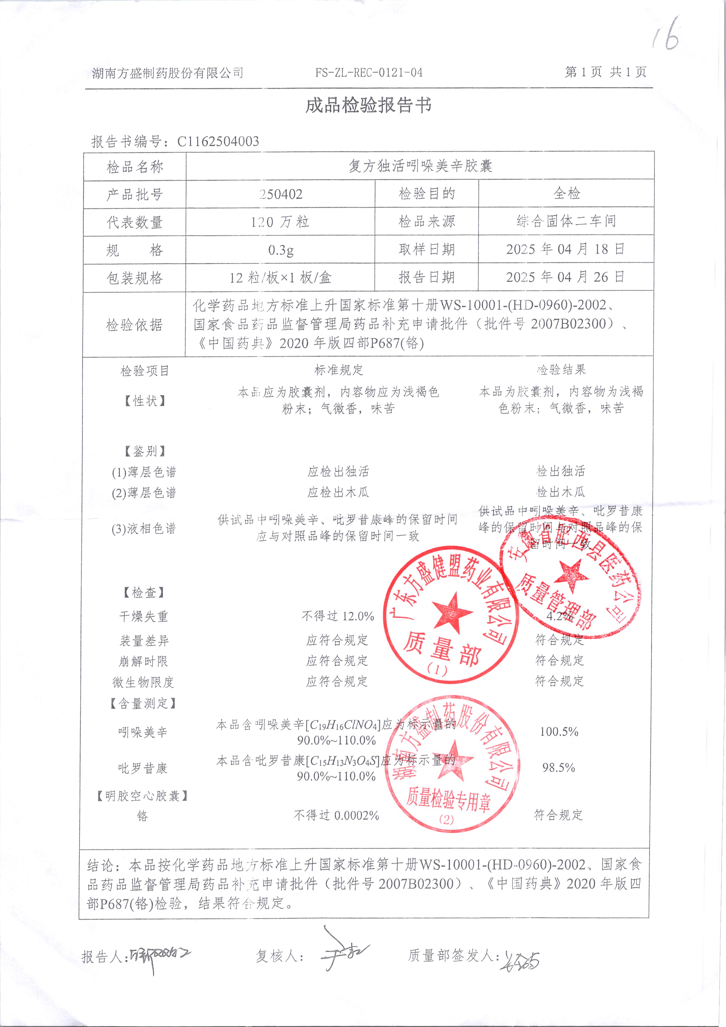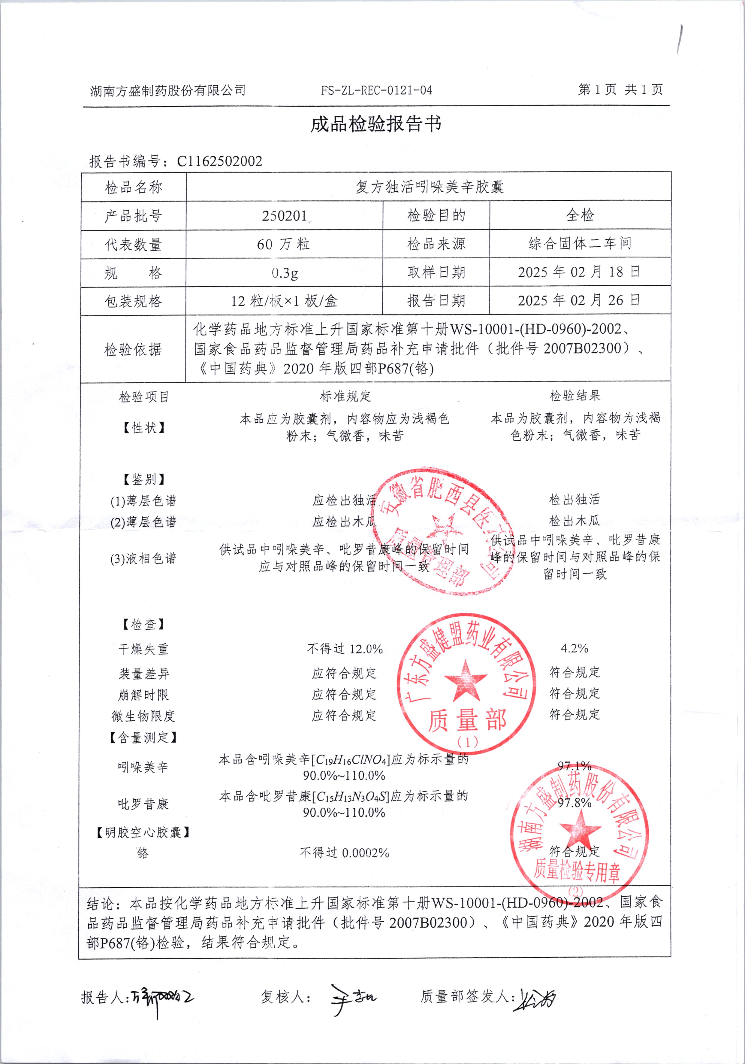 复方独活吲哚美辛胶囊 | 0.3g*12粒 | 250402 | 查看详情 |