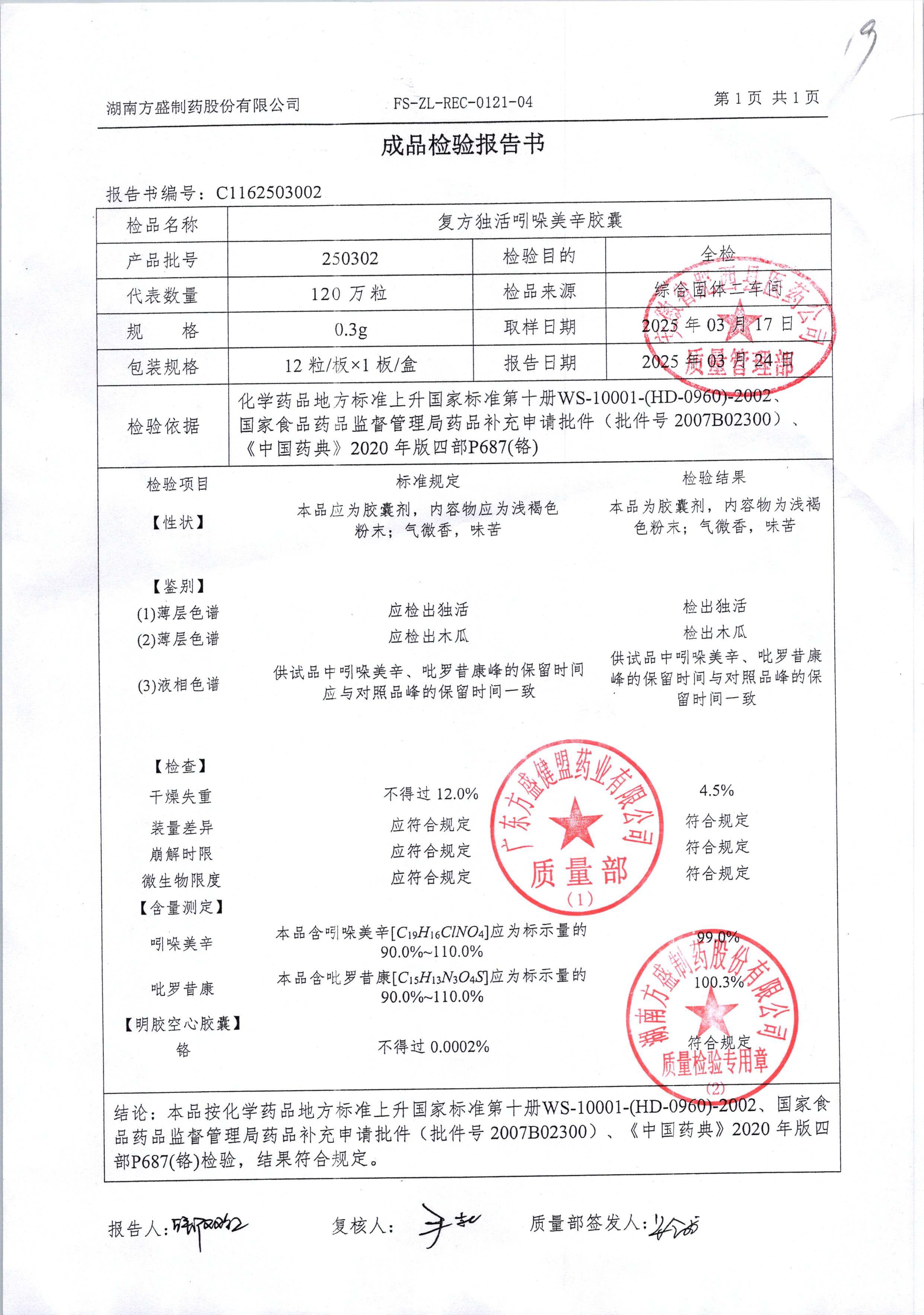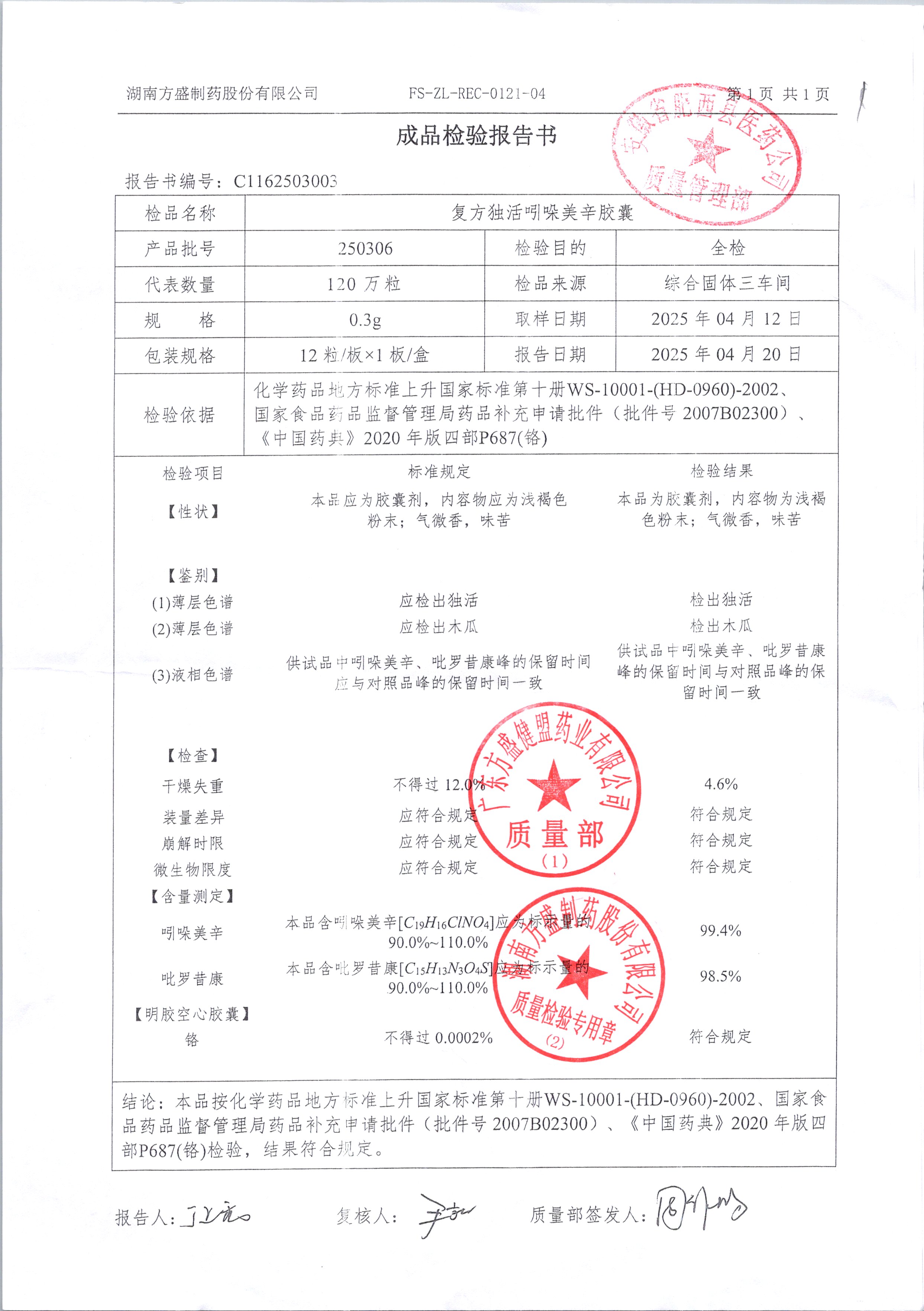 复方独活吲哚美辛胶囊 | 0.3g*12粒 | 250403 | 查看详情 |