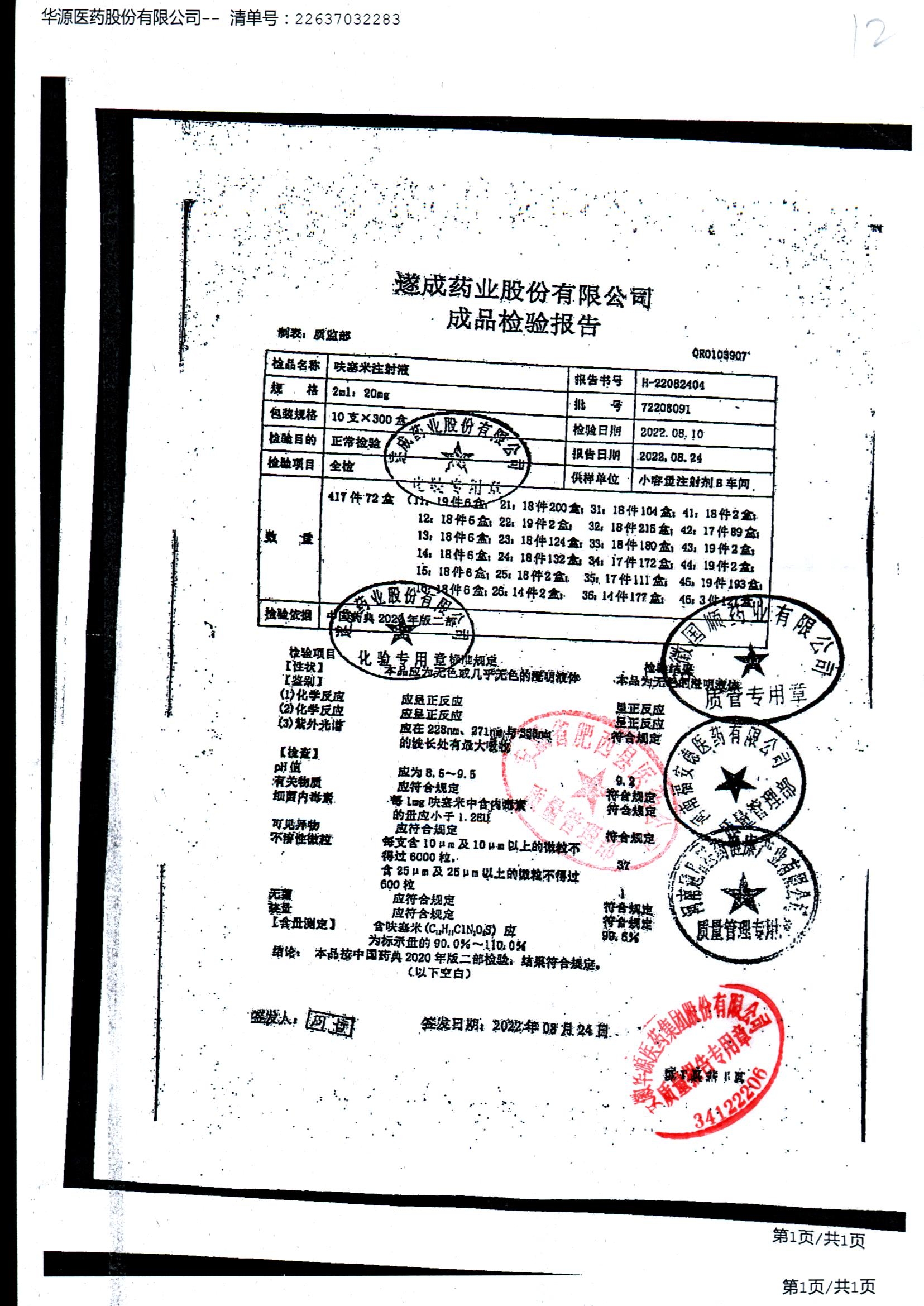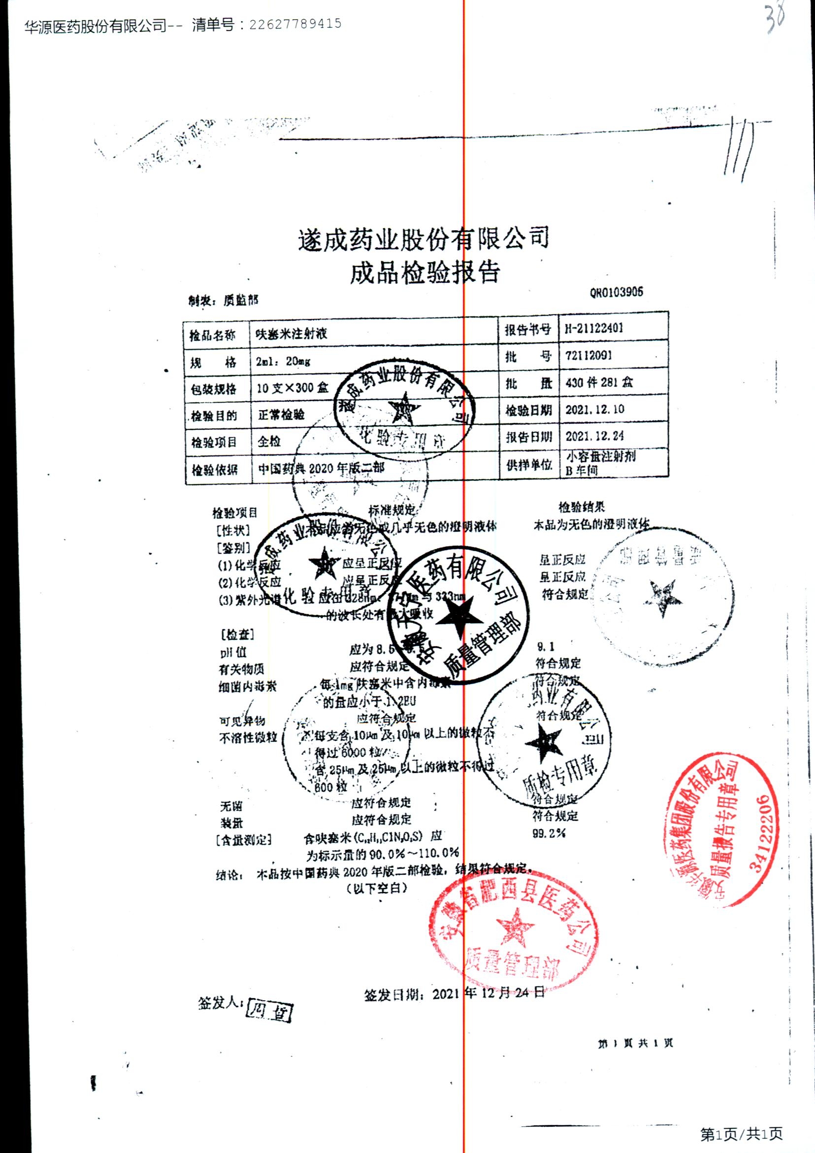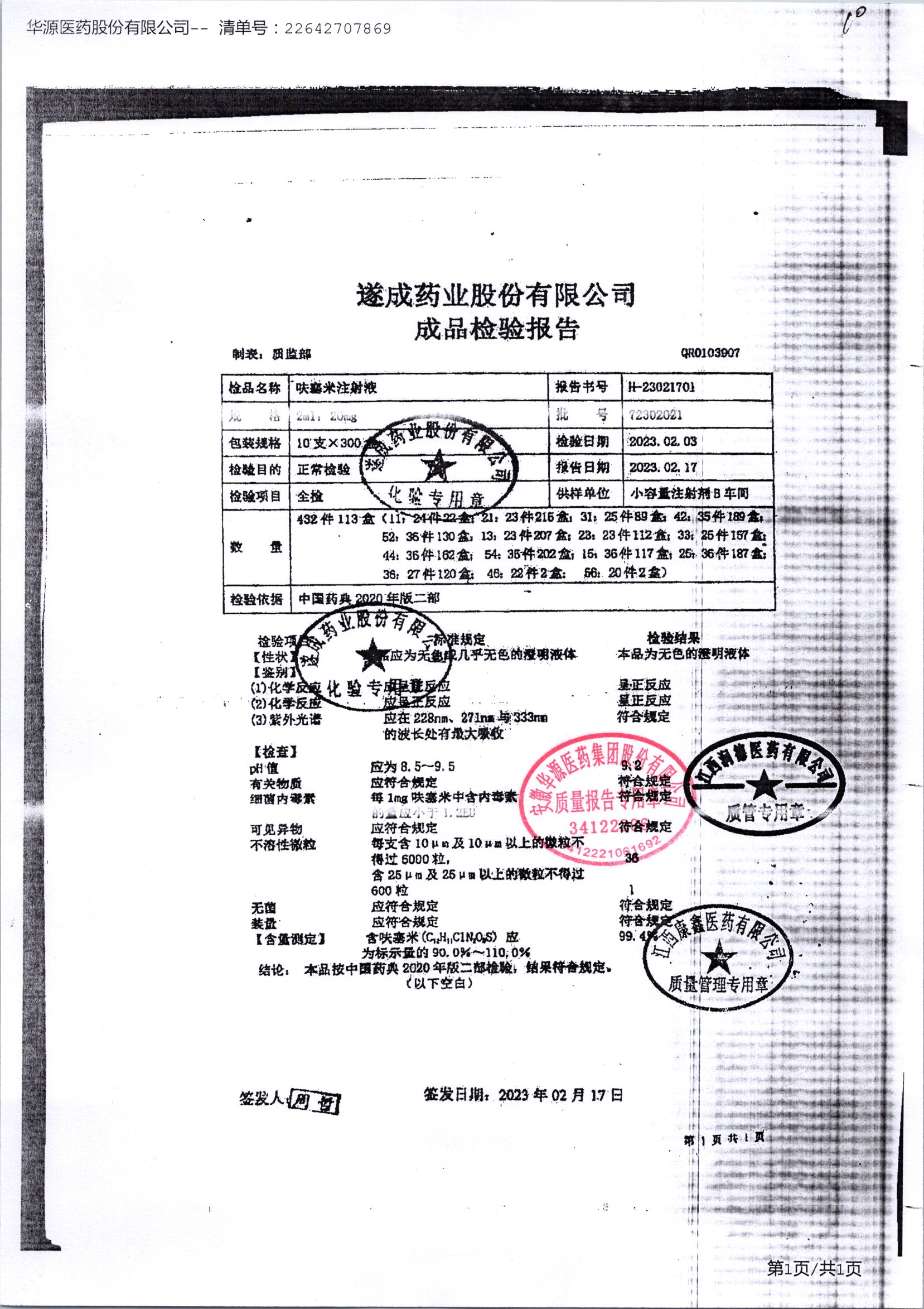 呋塞米注射液 | 2ml:20mg*10支 | 72302021 | 查看详情 |