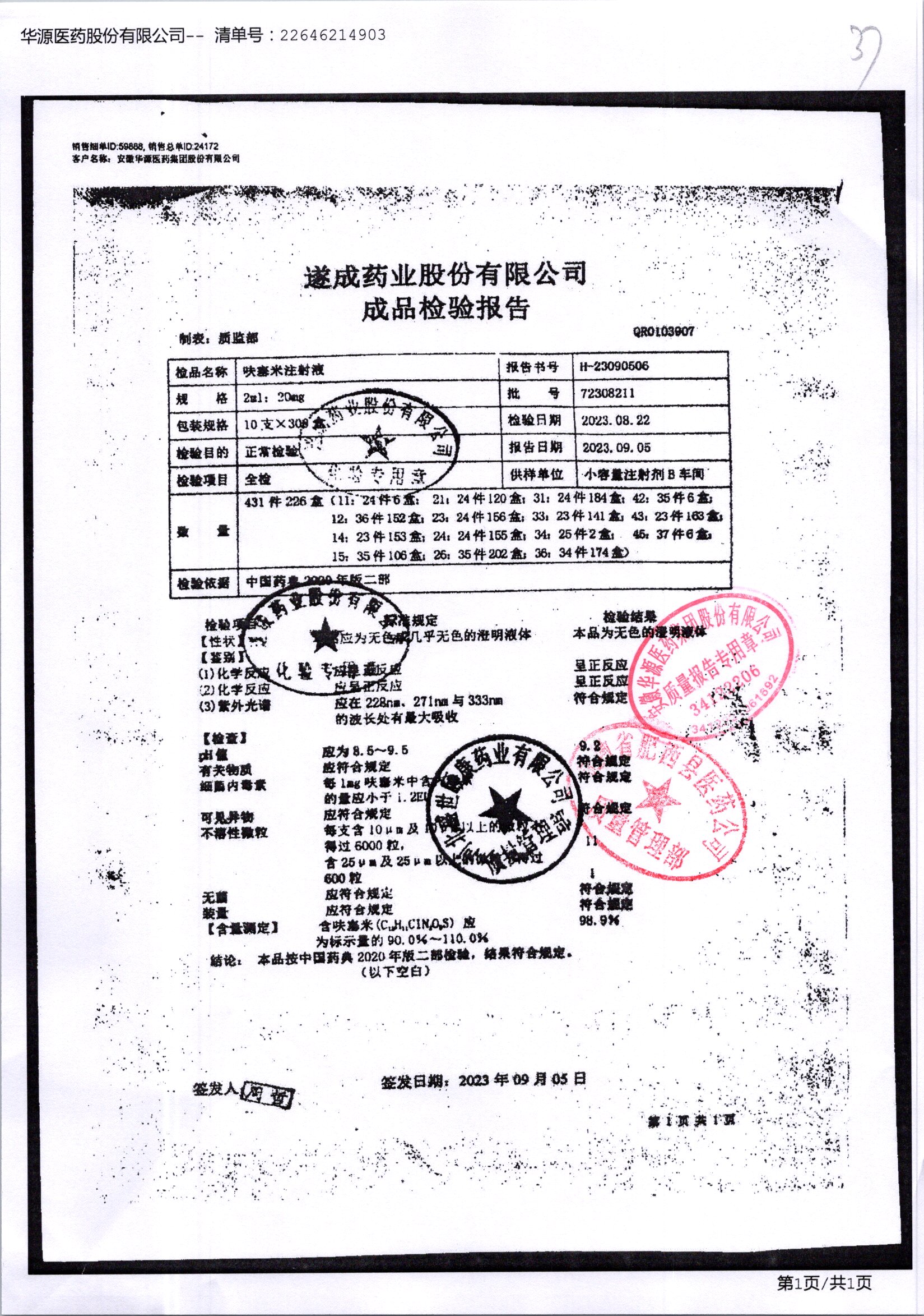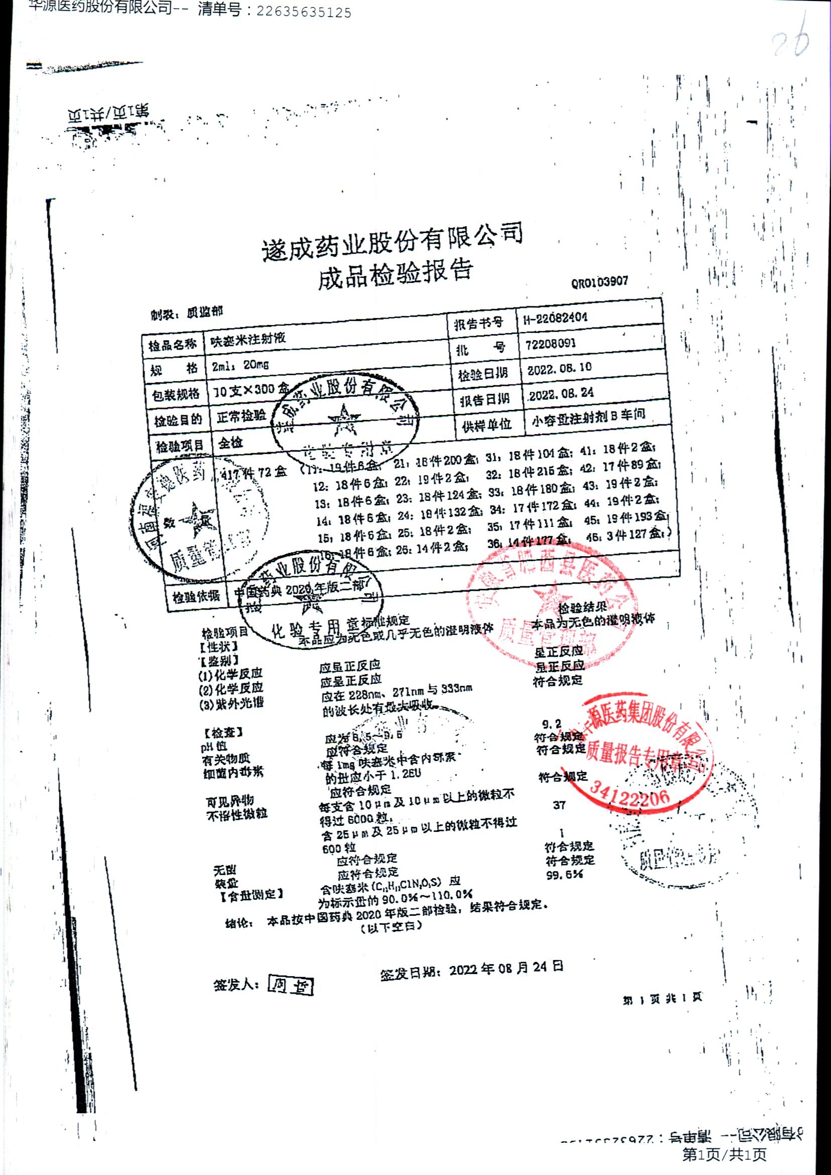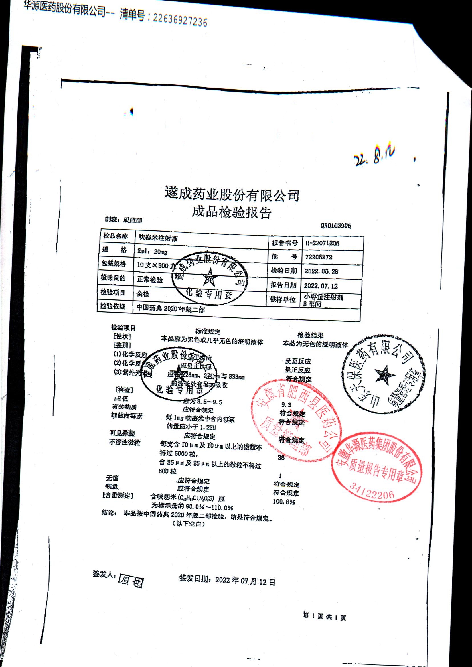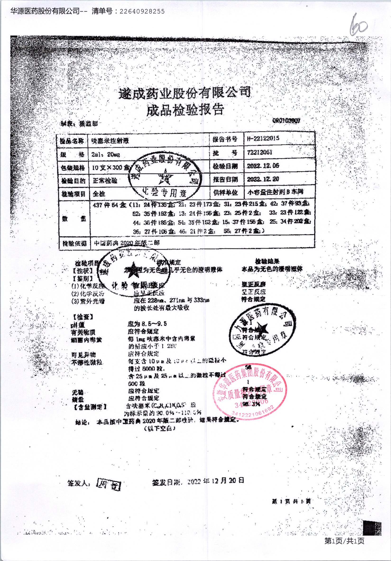呋塞米注射液 | 2ml:20mg*10支 | 72302021 | 查看详情 |