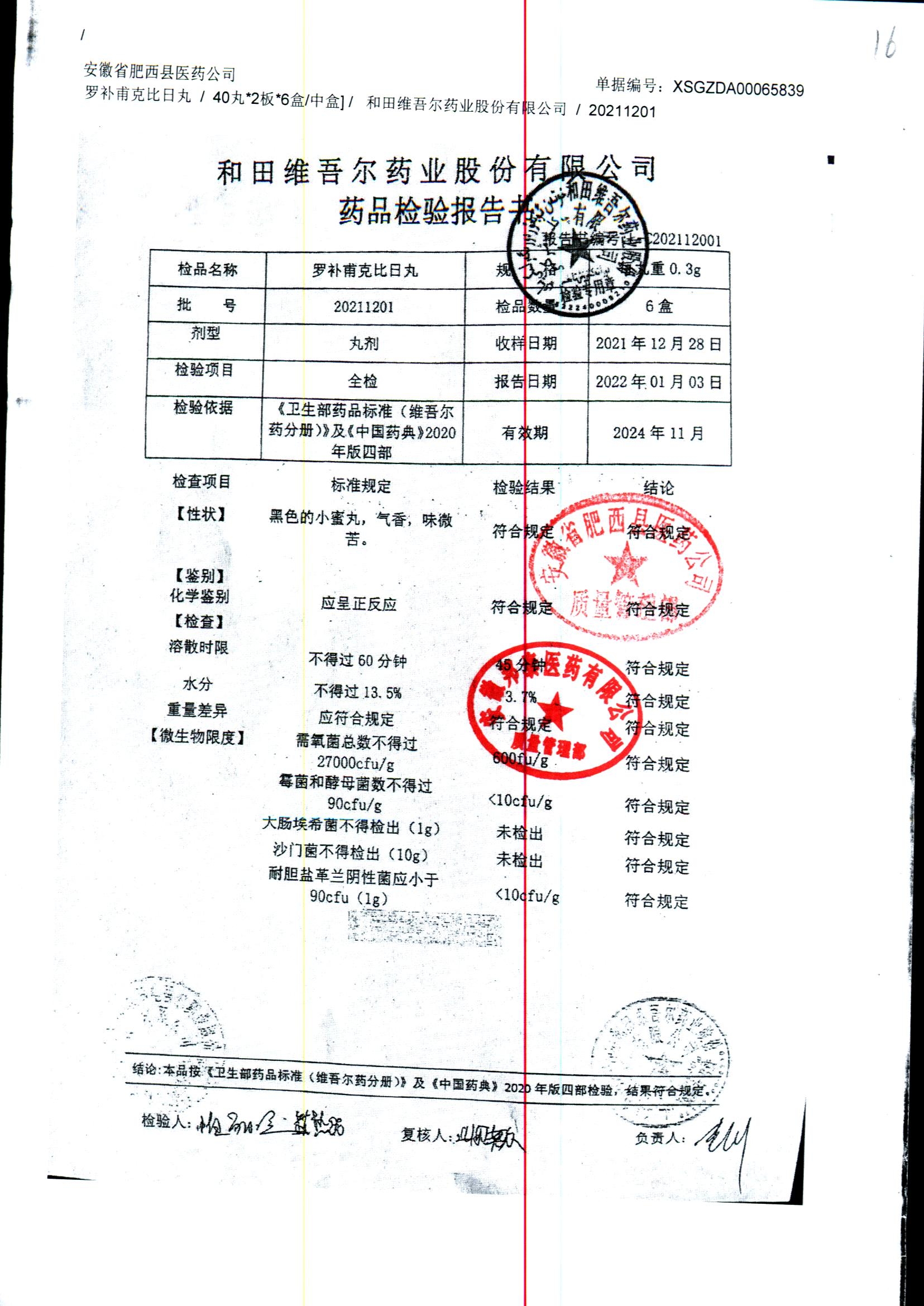 药检报告