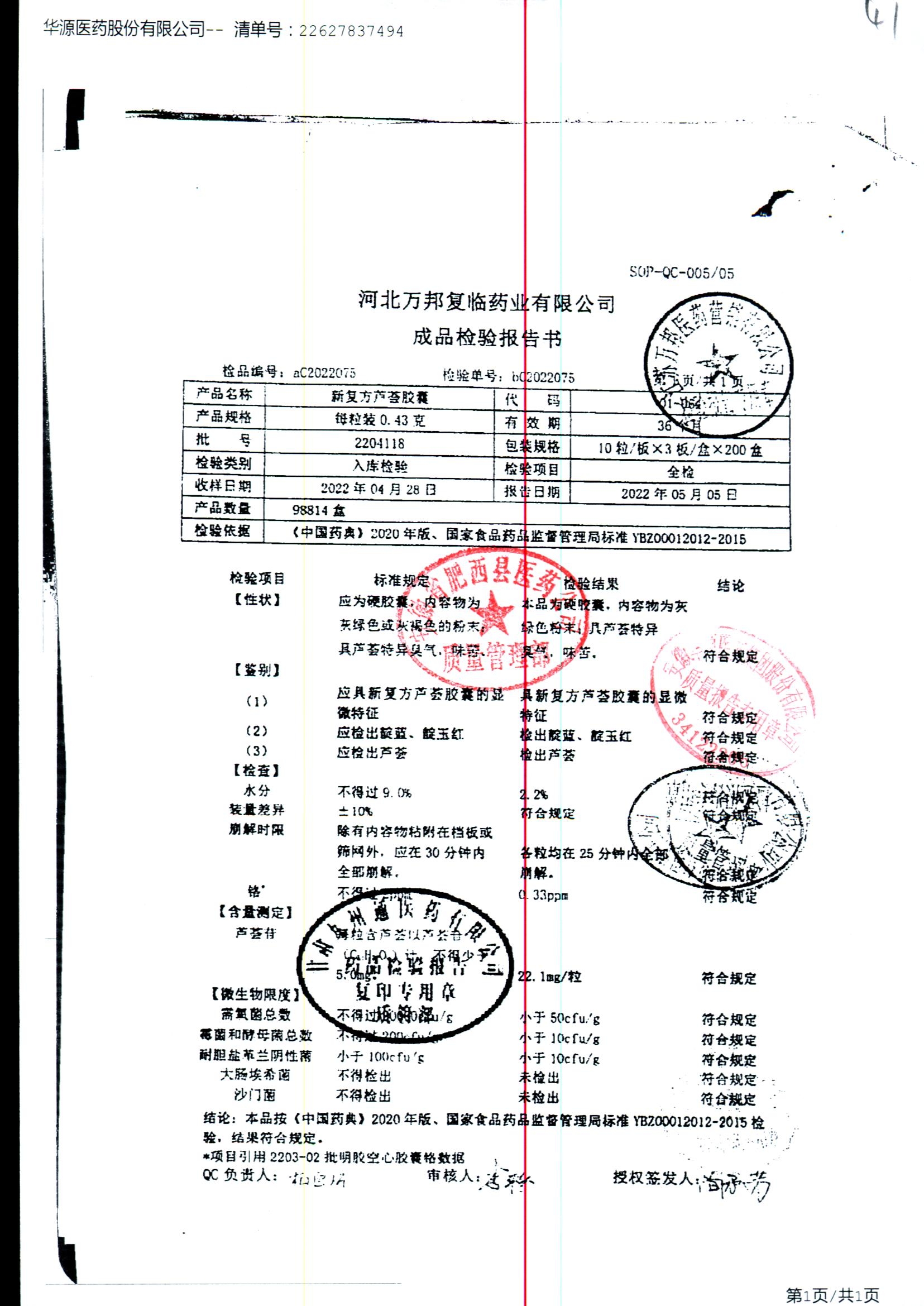 新复方芦荟胶囊 | 0.43g | 2204118 | 查看详情 |