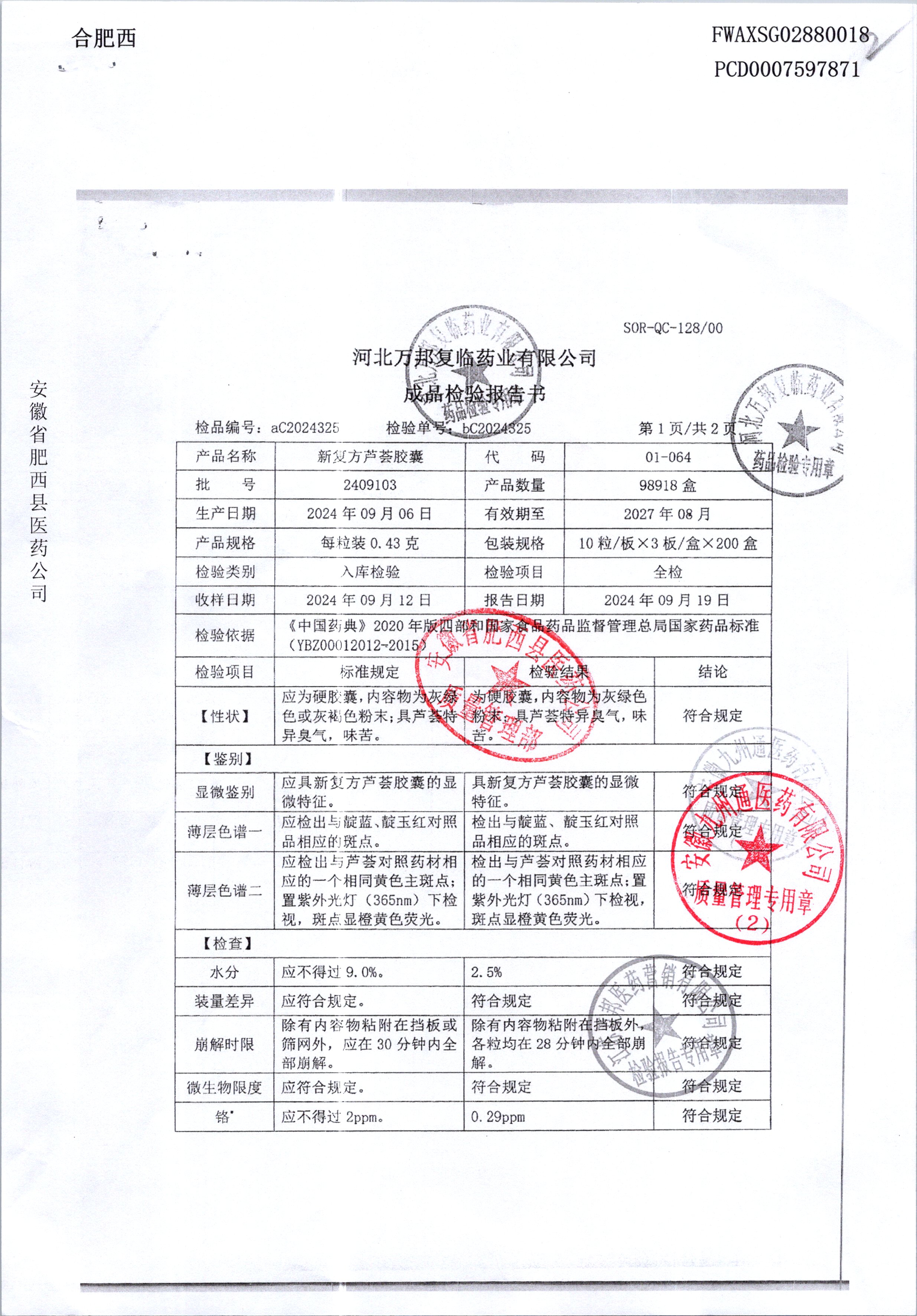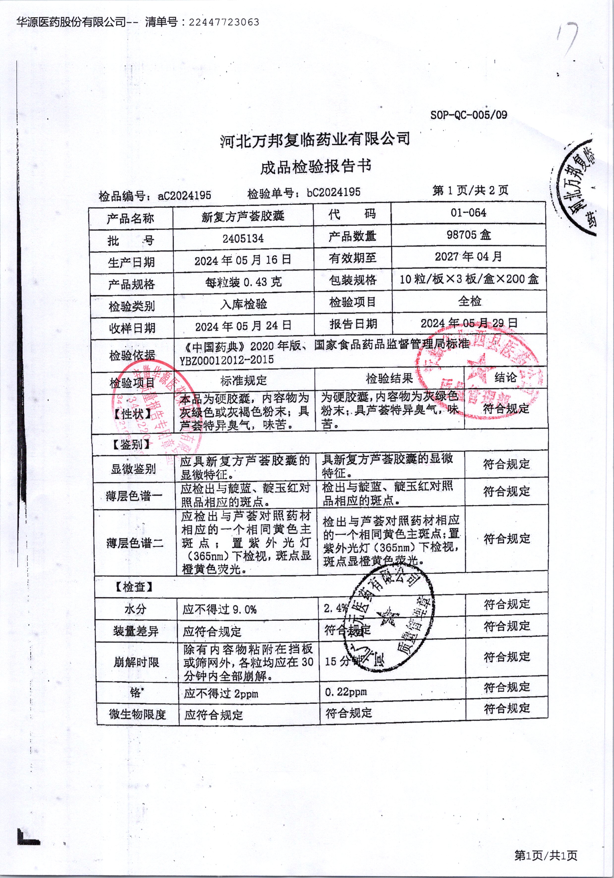 新复方芦荟胶囊 | 0.43g | 2409103 | 查看详情 |