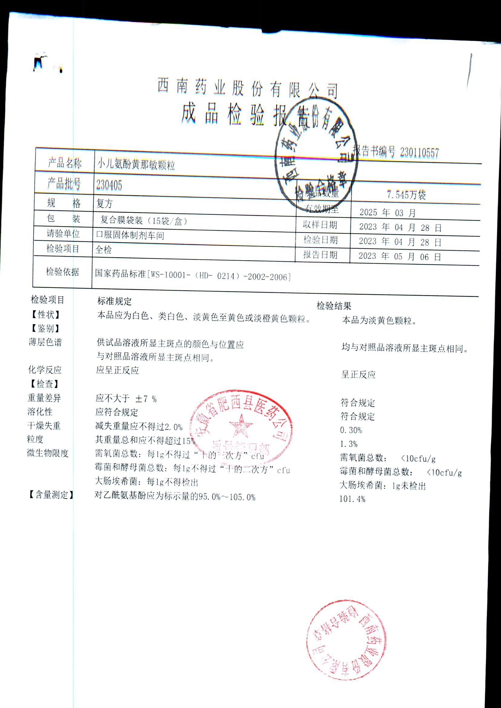 小儿氨酚黄那敏颗粒 | 复方 15袋 | 230405 | 查看详情 |