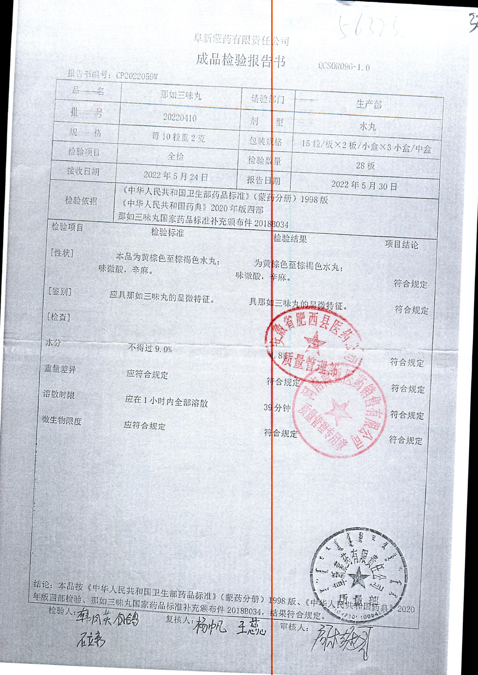 药检报告