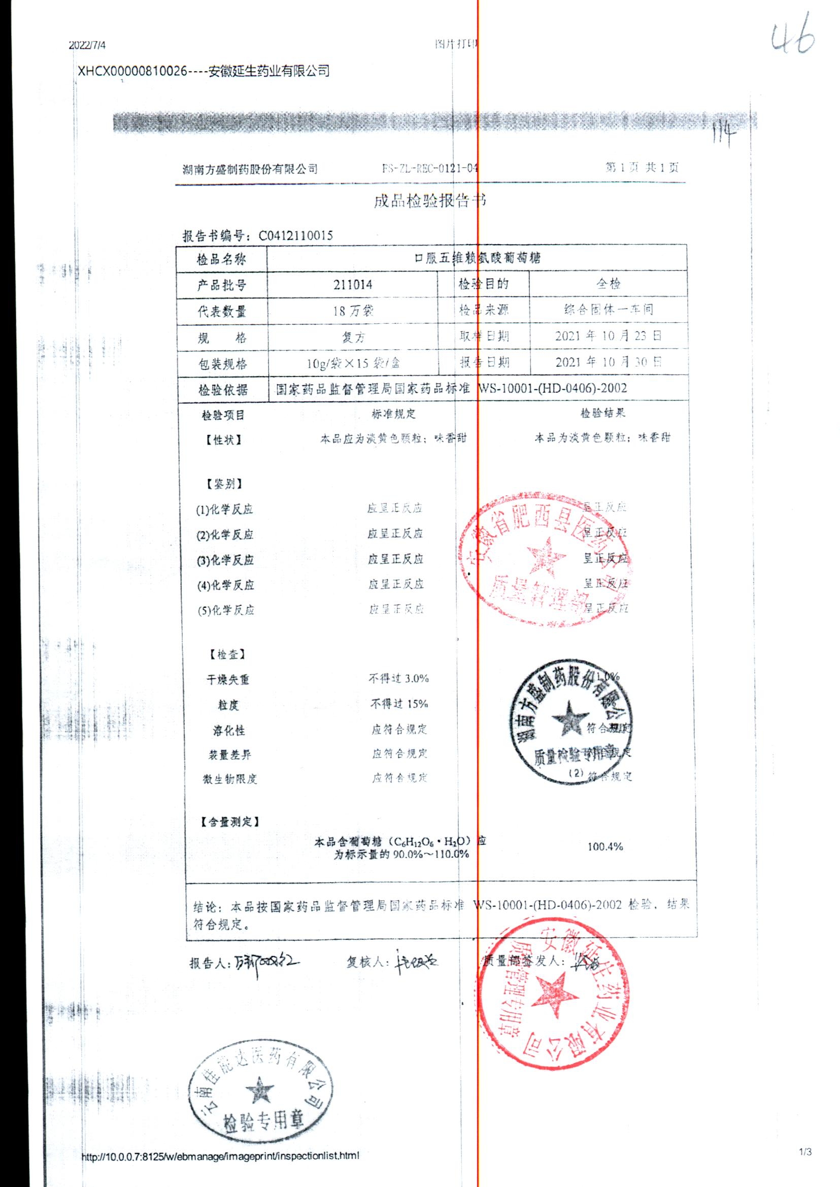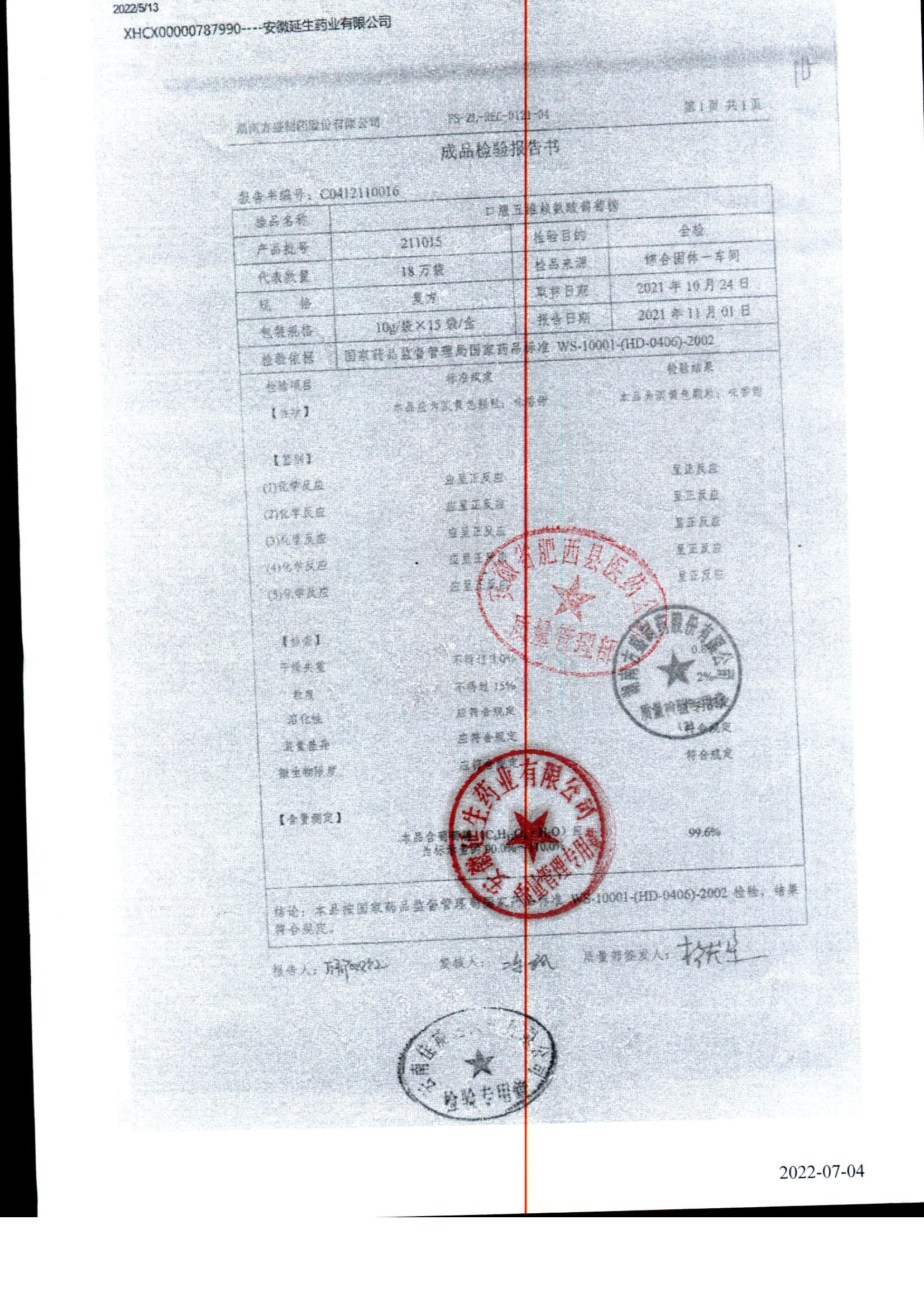 药检报告