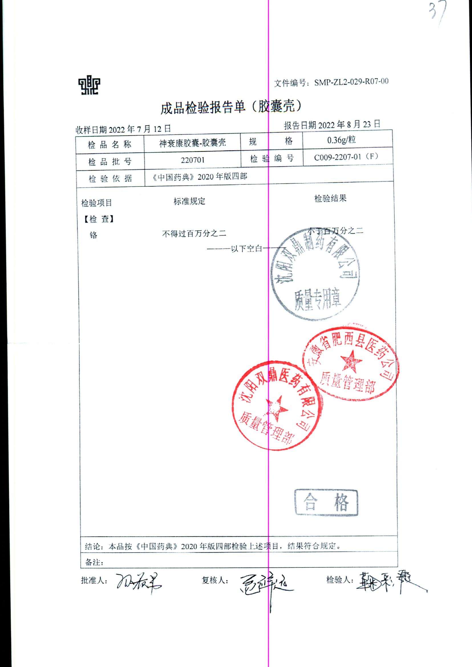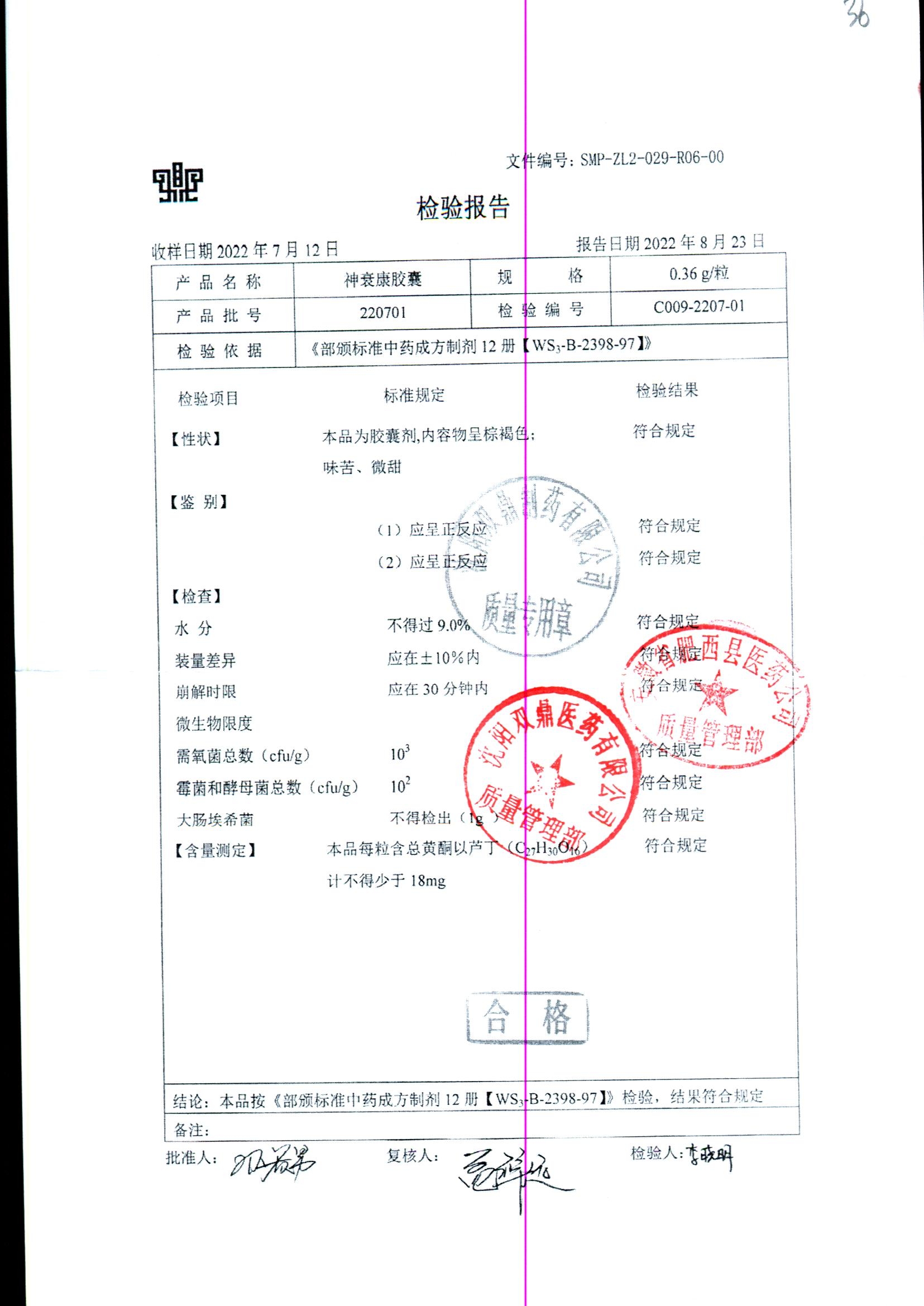 神衰康胶囊 | 0.36g | 220701/2 | 查看详情 |
