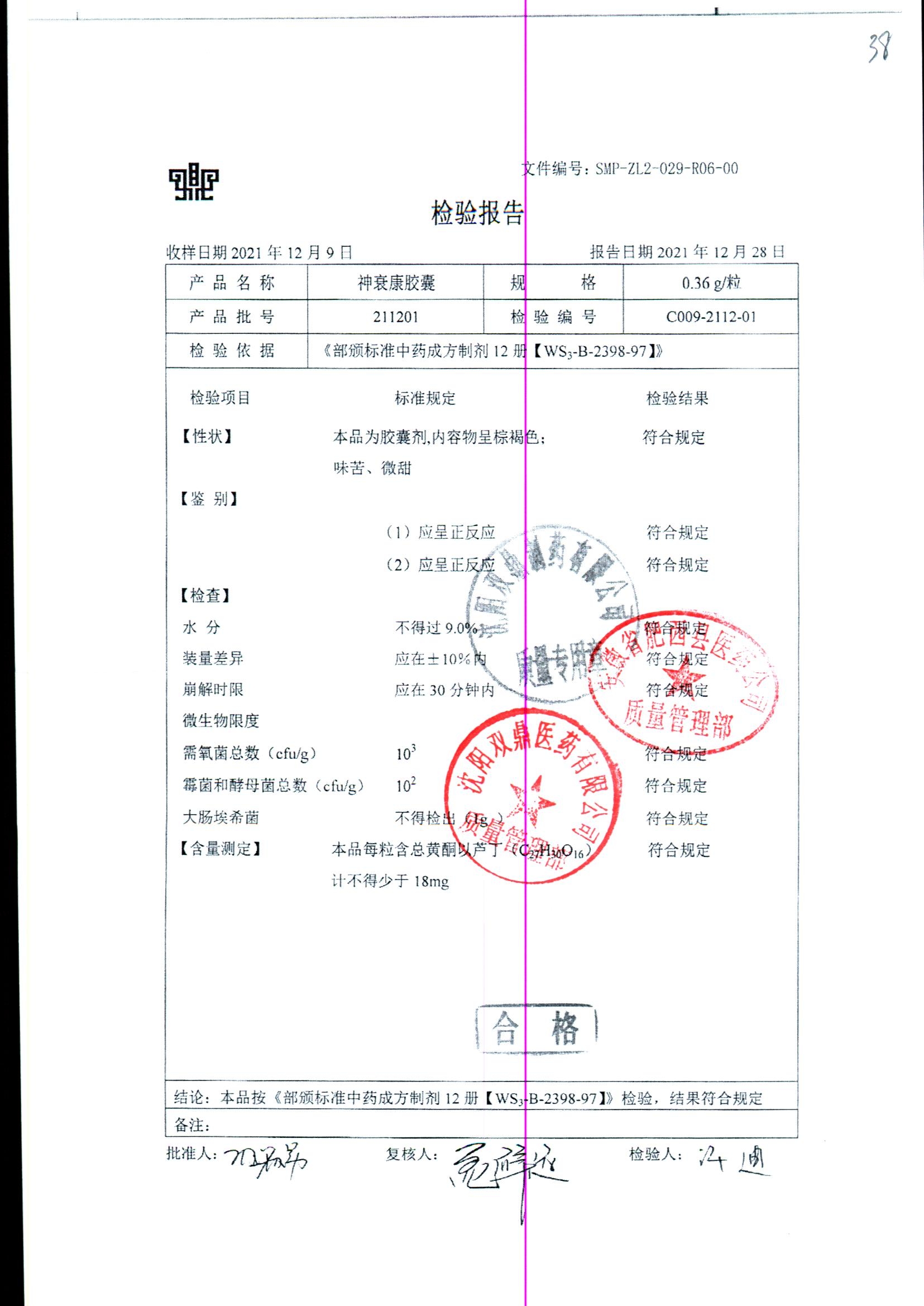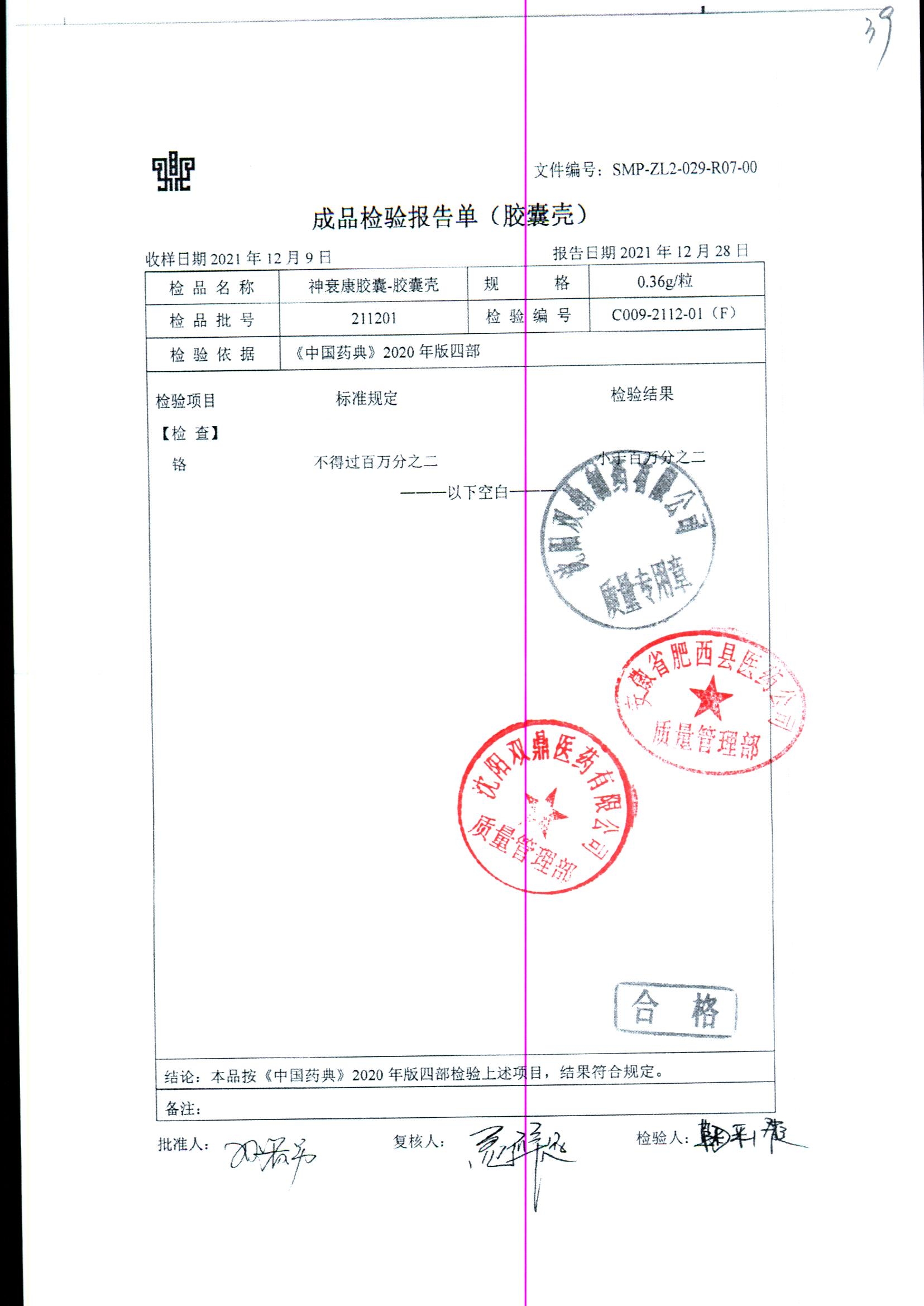神衰康胶囊 | 0.36g | 211201/2 | 查看详情 |