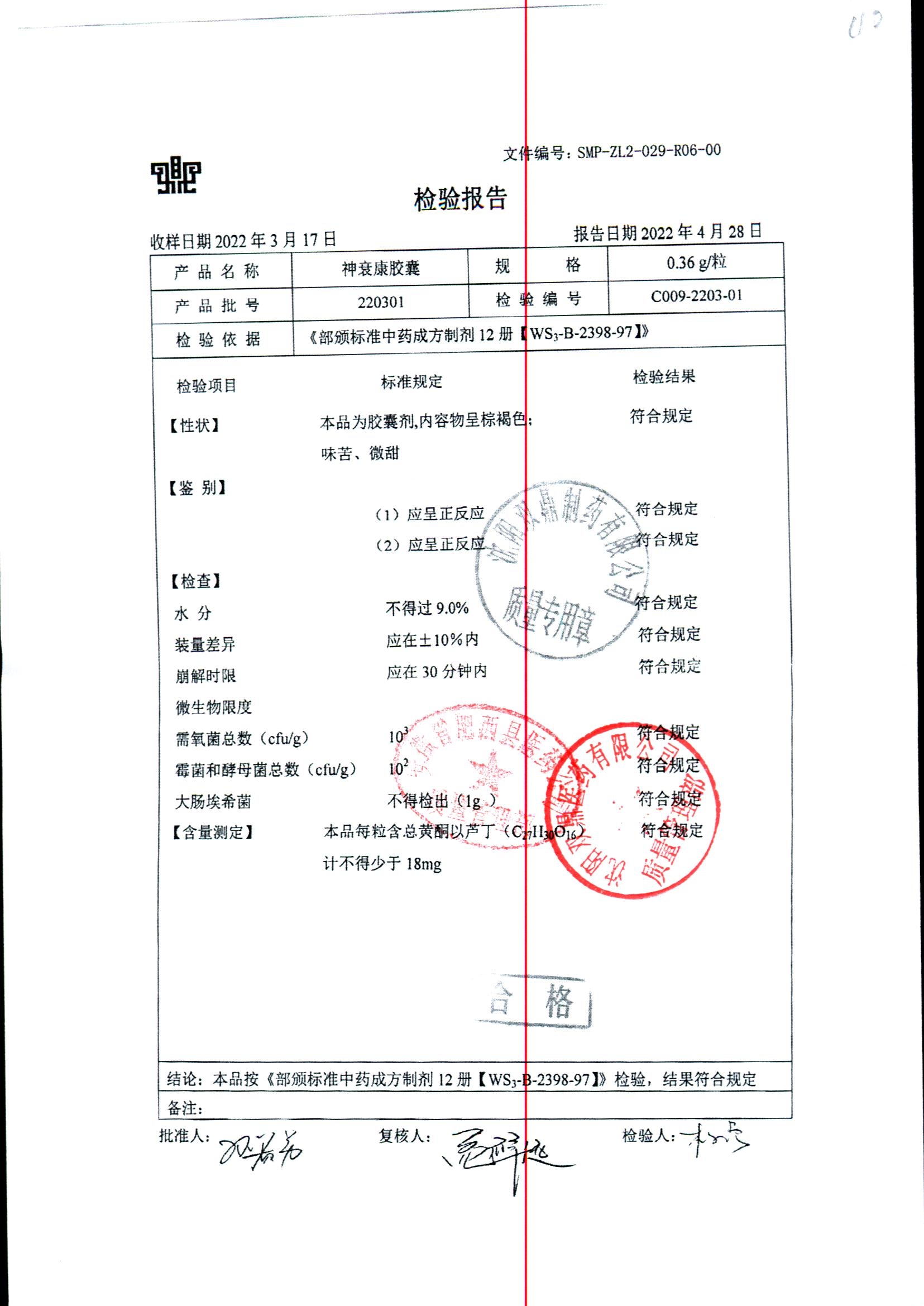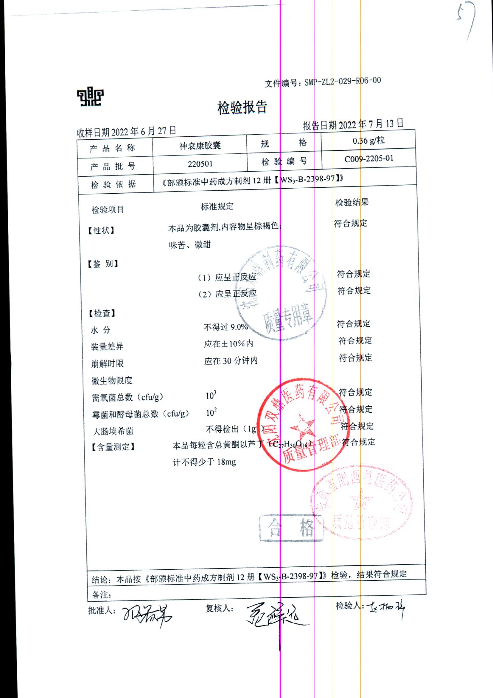 神衰康胶囊 | 0.36g | 220501/2 | 查看详情 |