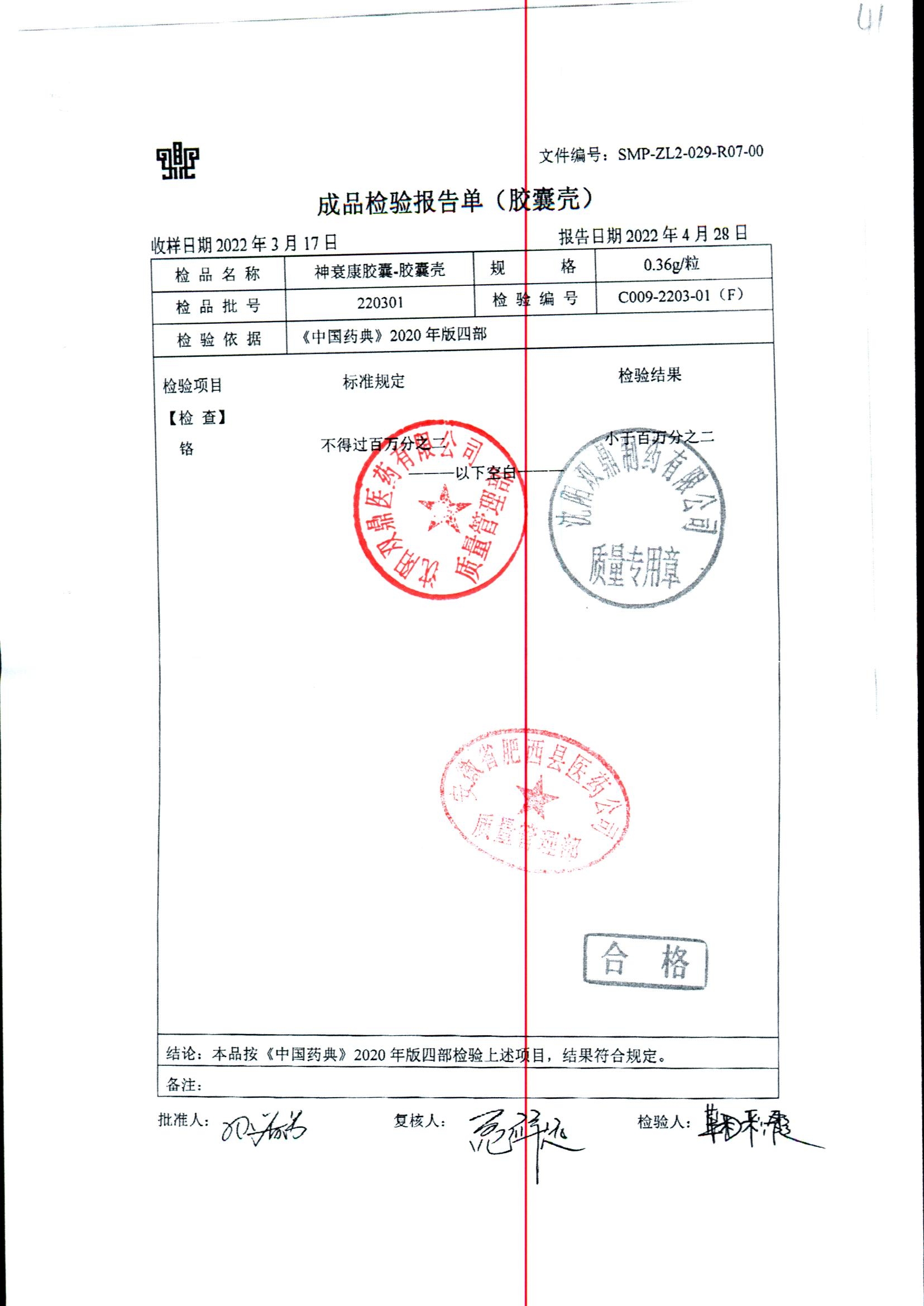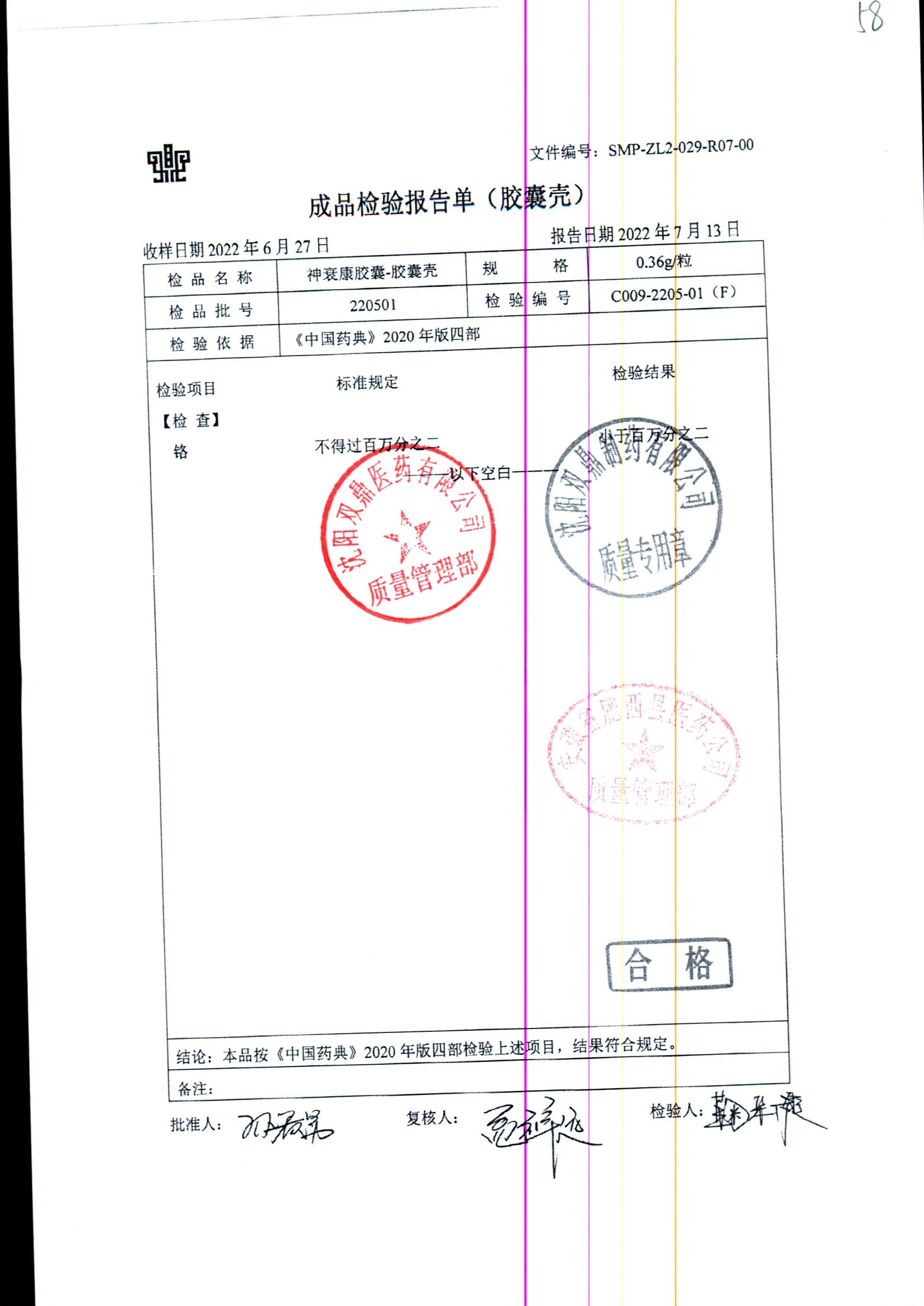 神衰康胶囊 | 0.36g | 220501/1 | 查看详情 |