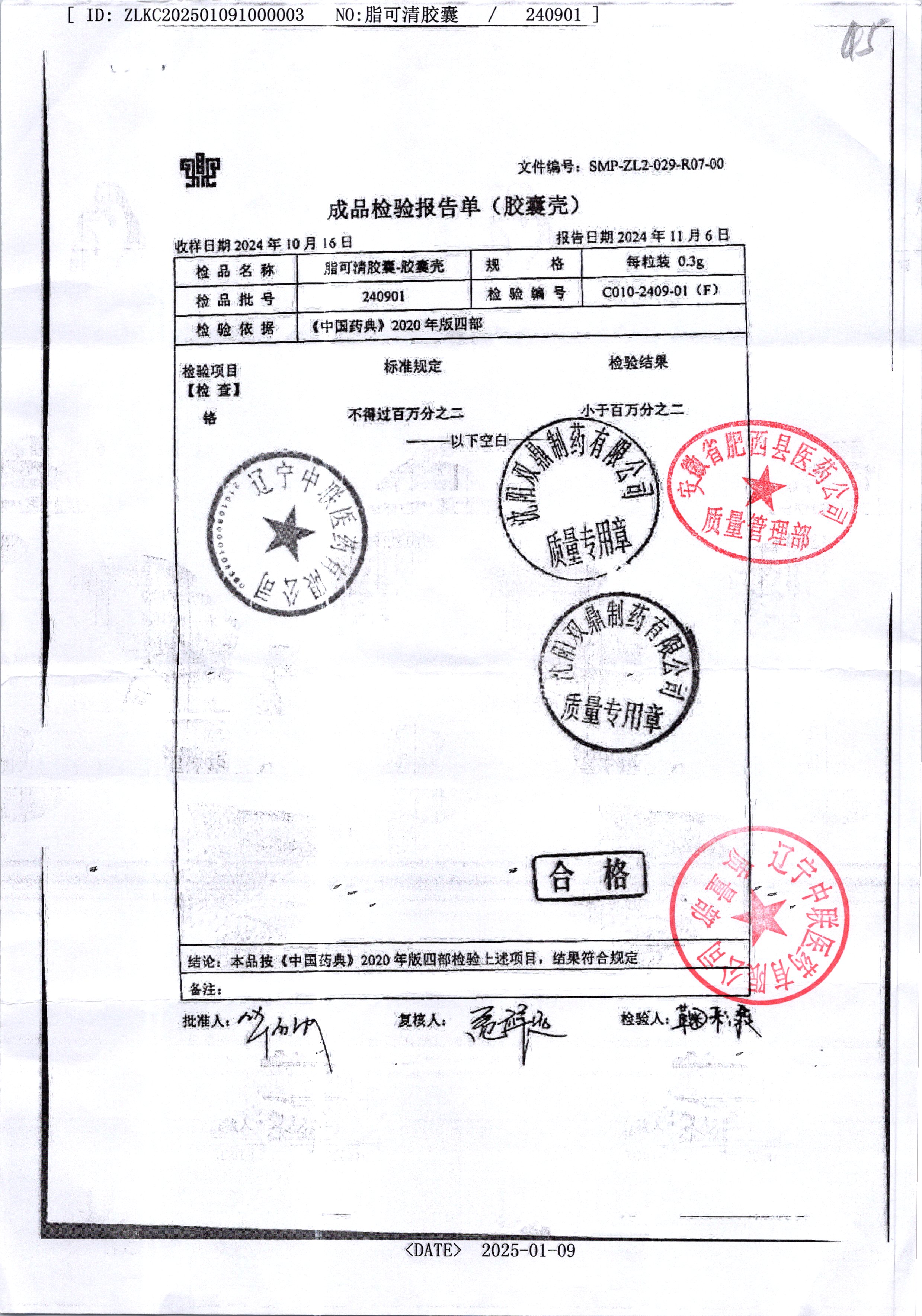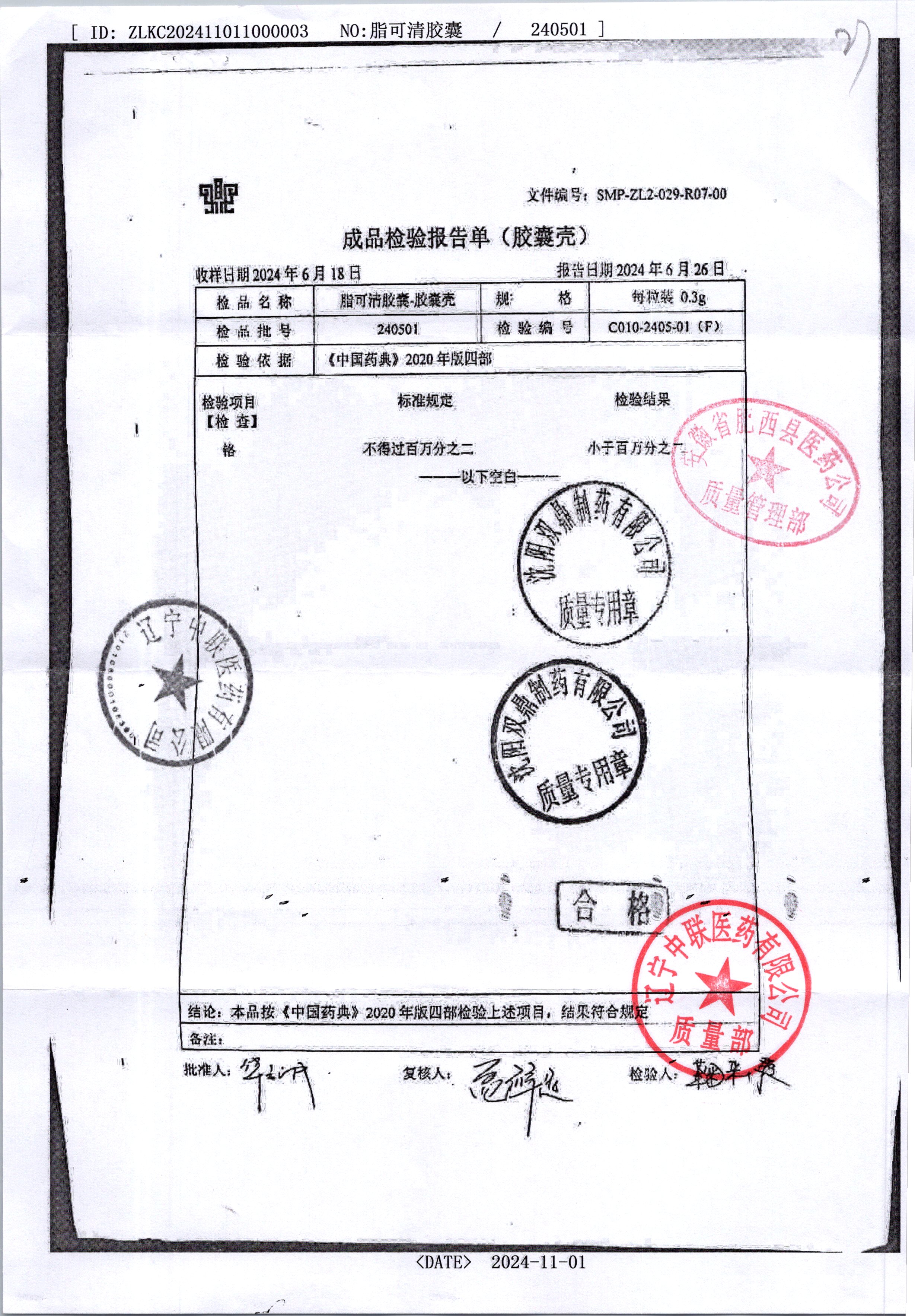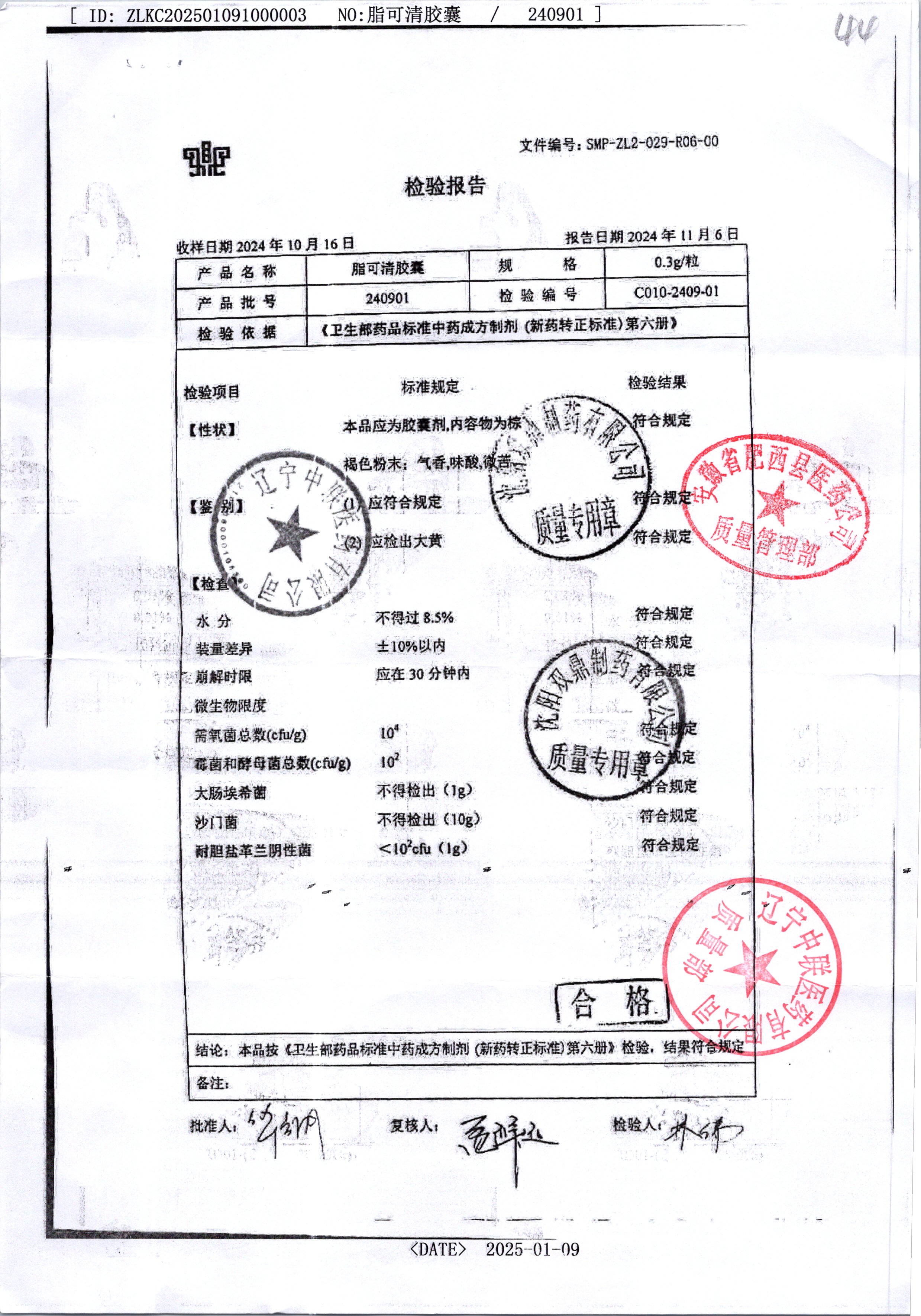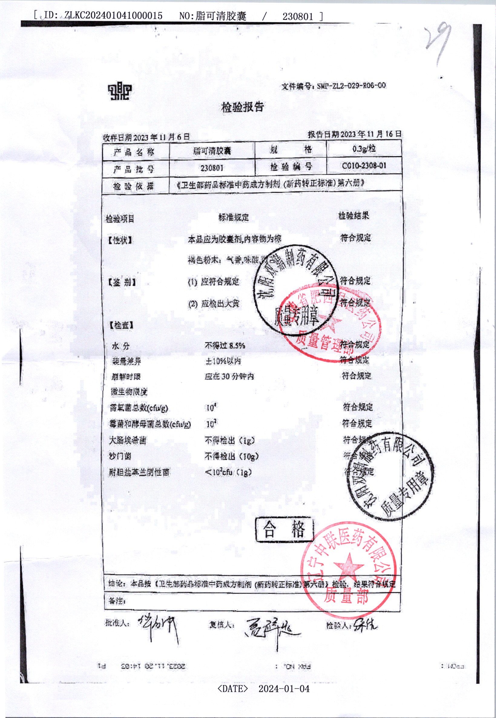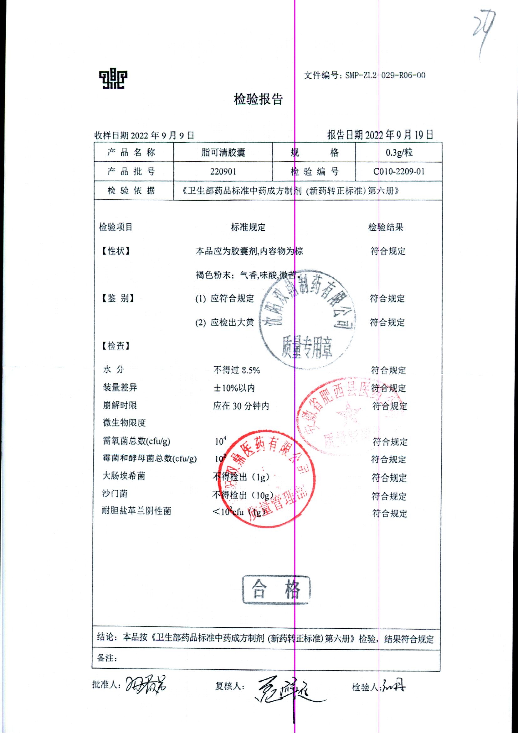 脂可清胶囊 | 0.3g | 240901/2 | 查看详情 |