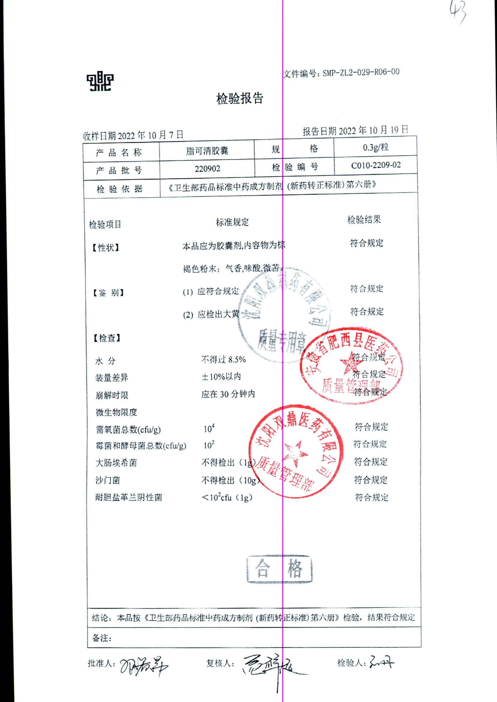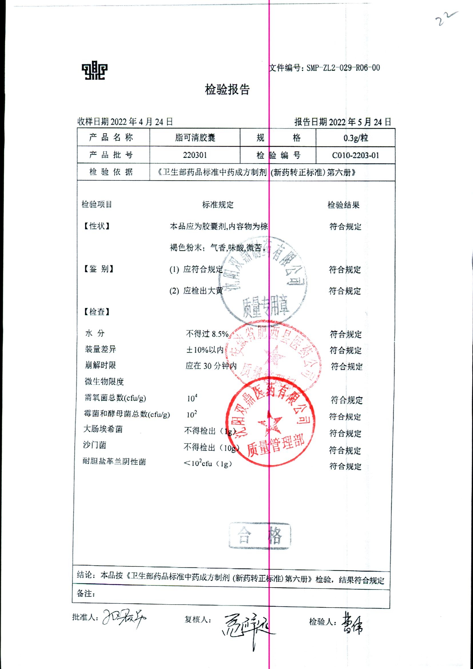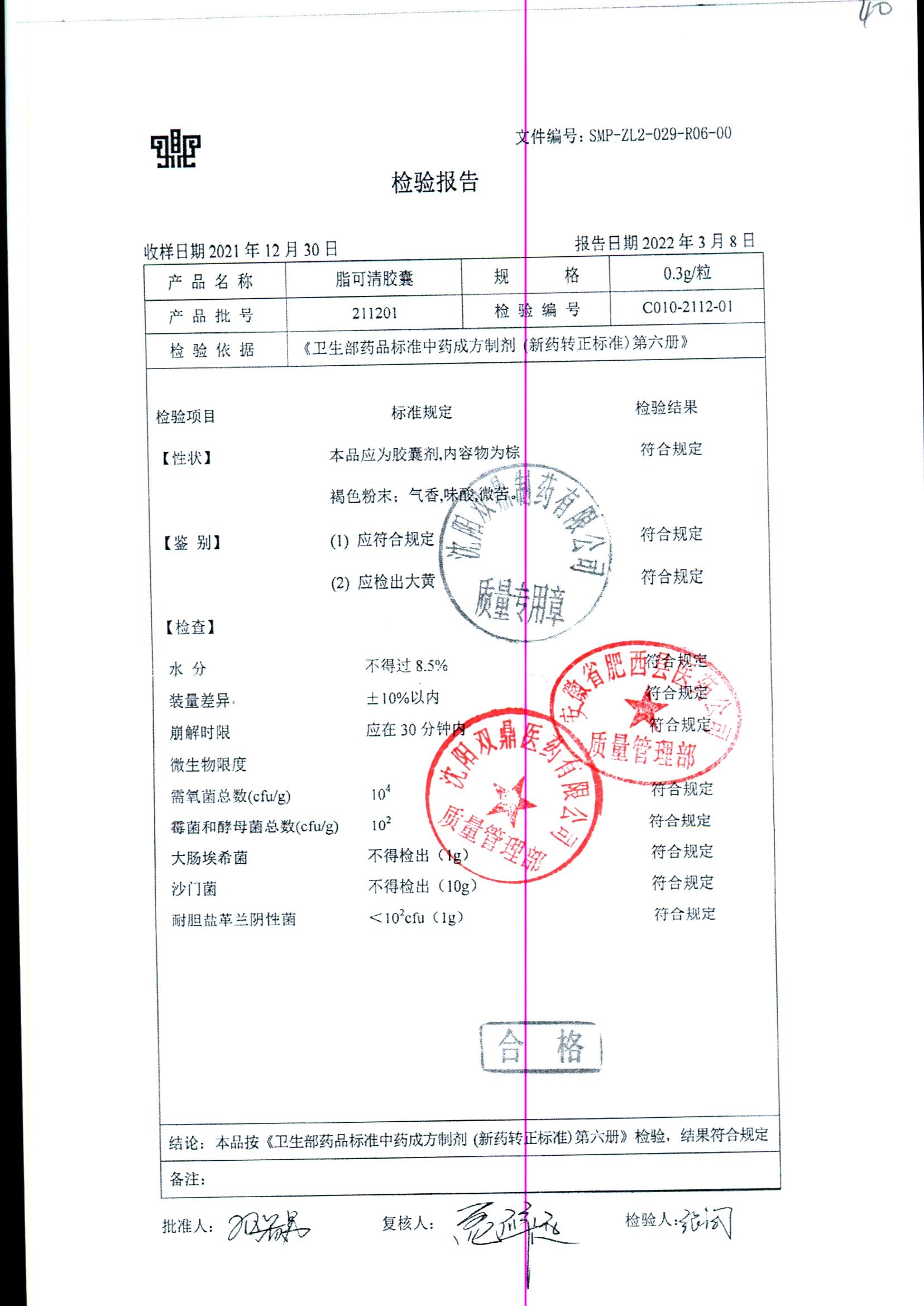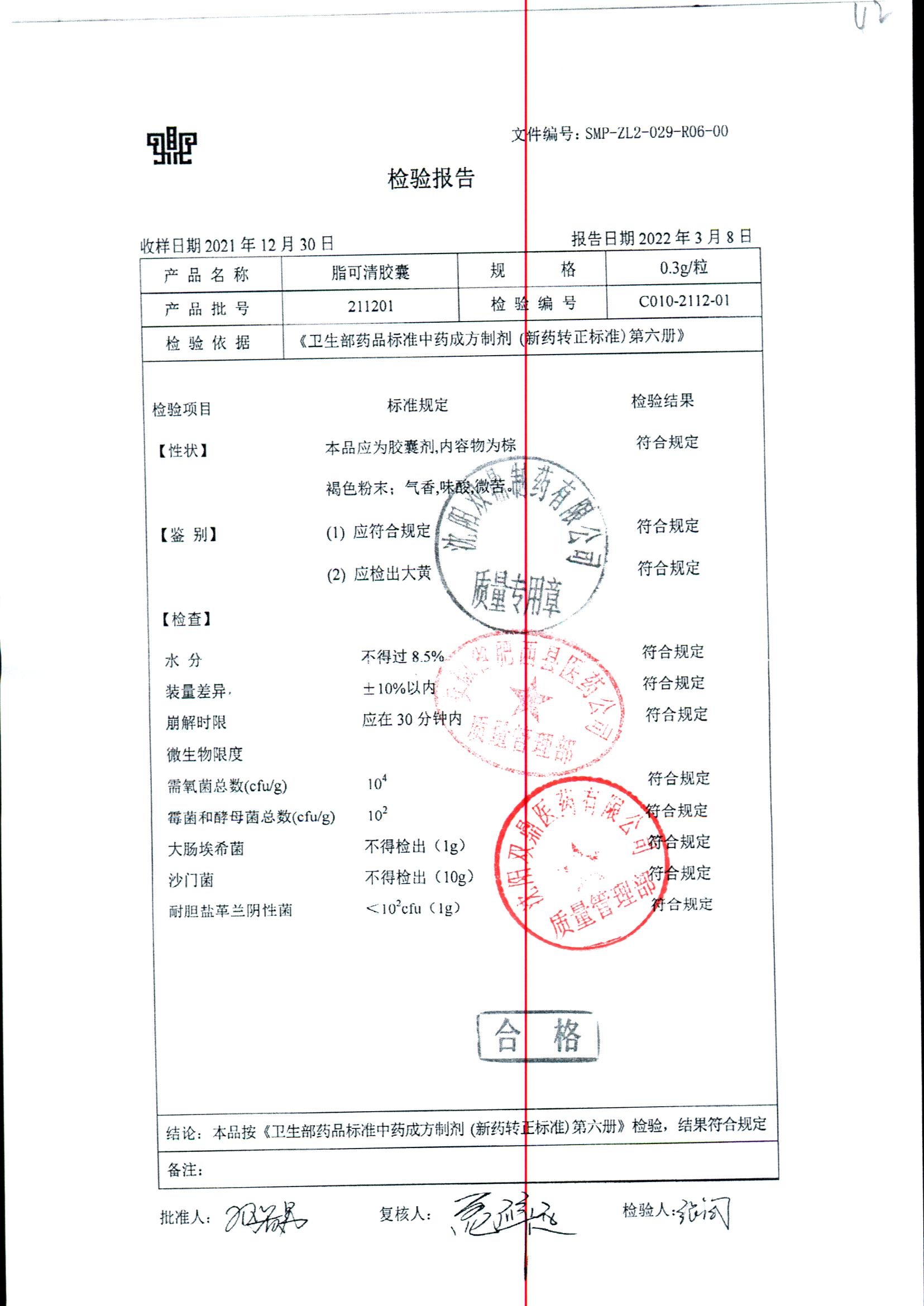 脂可清胶囊 | 0.3g | 211201/2 | 查看详情 |
