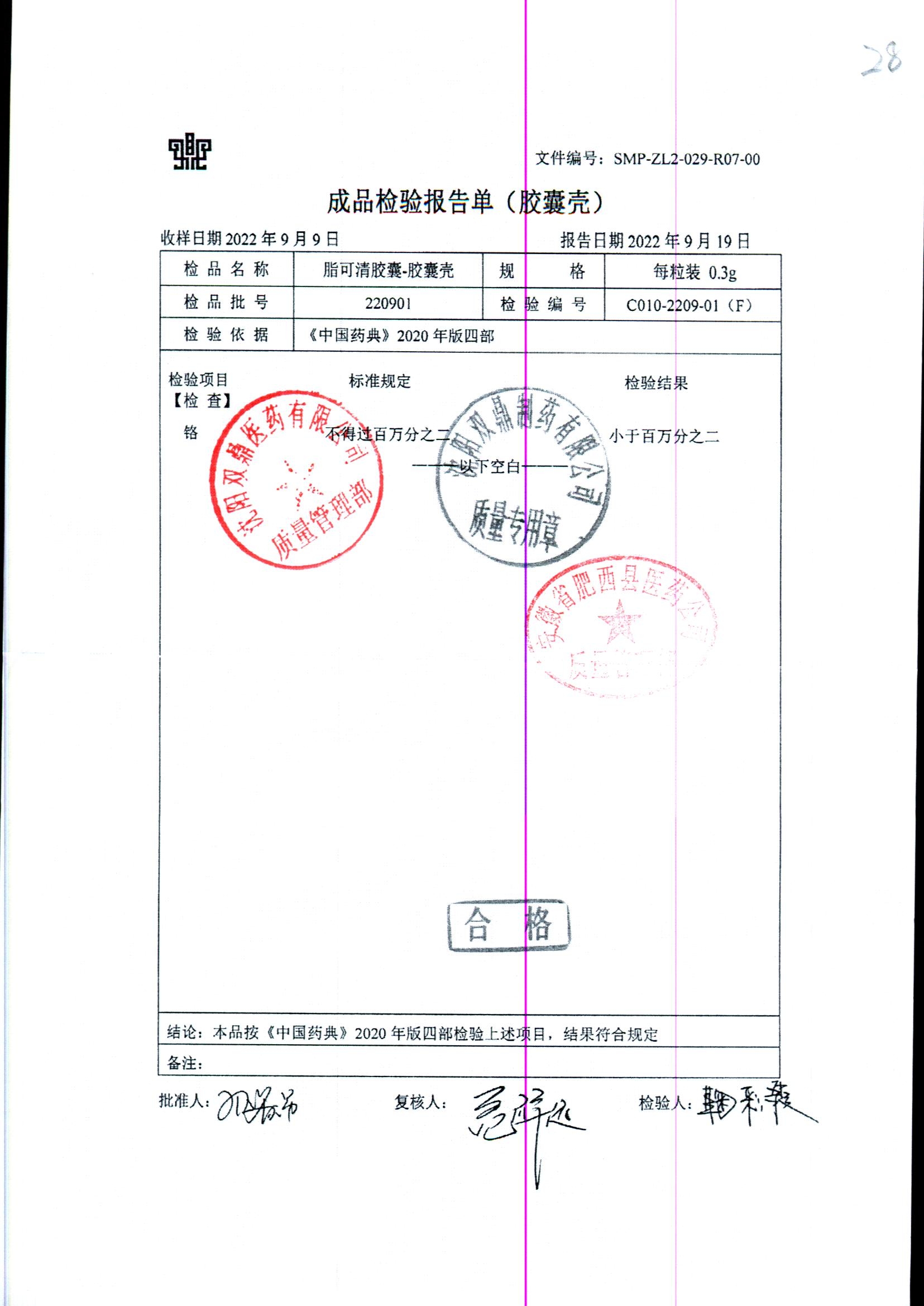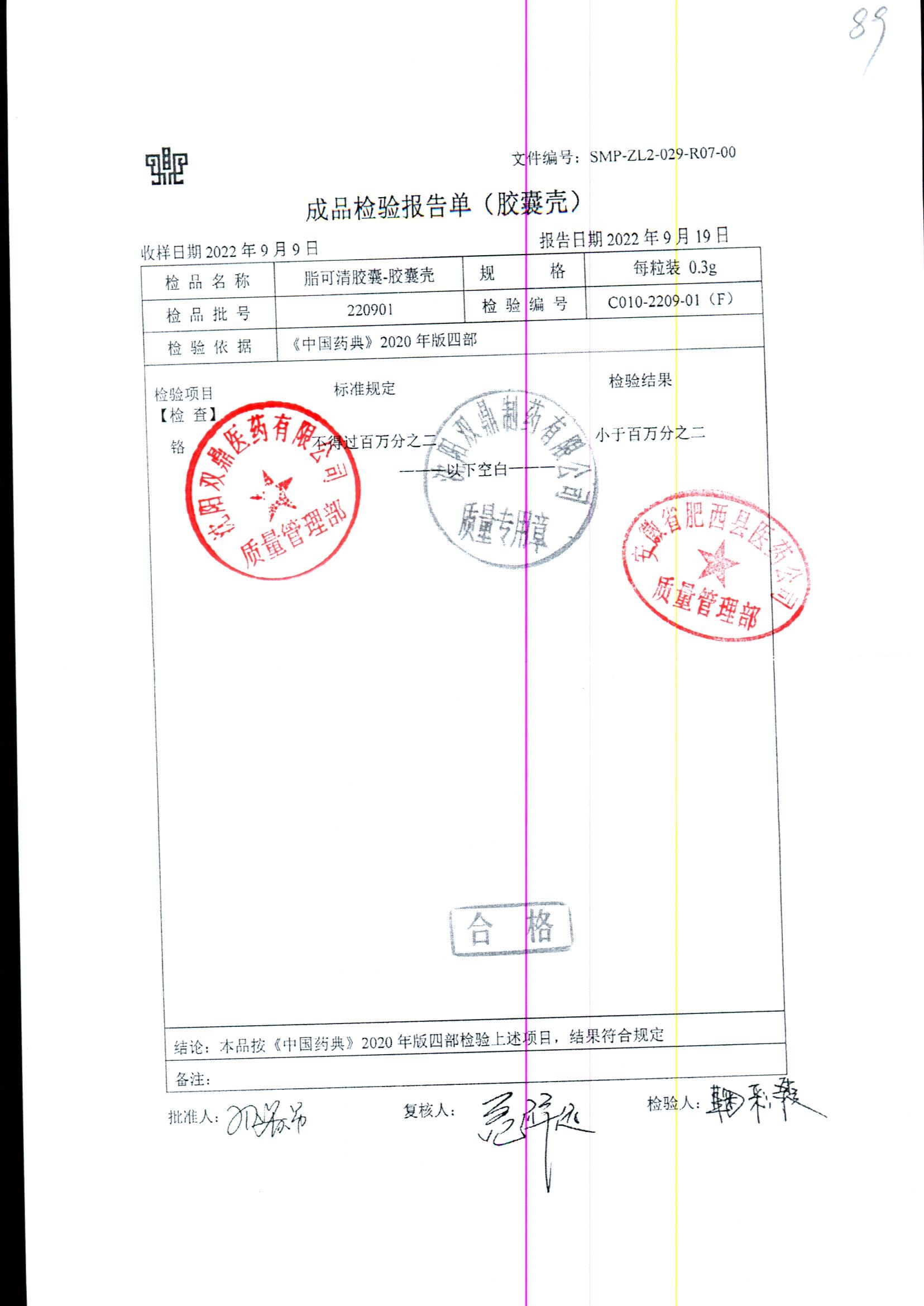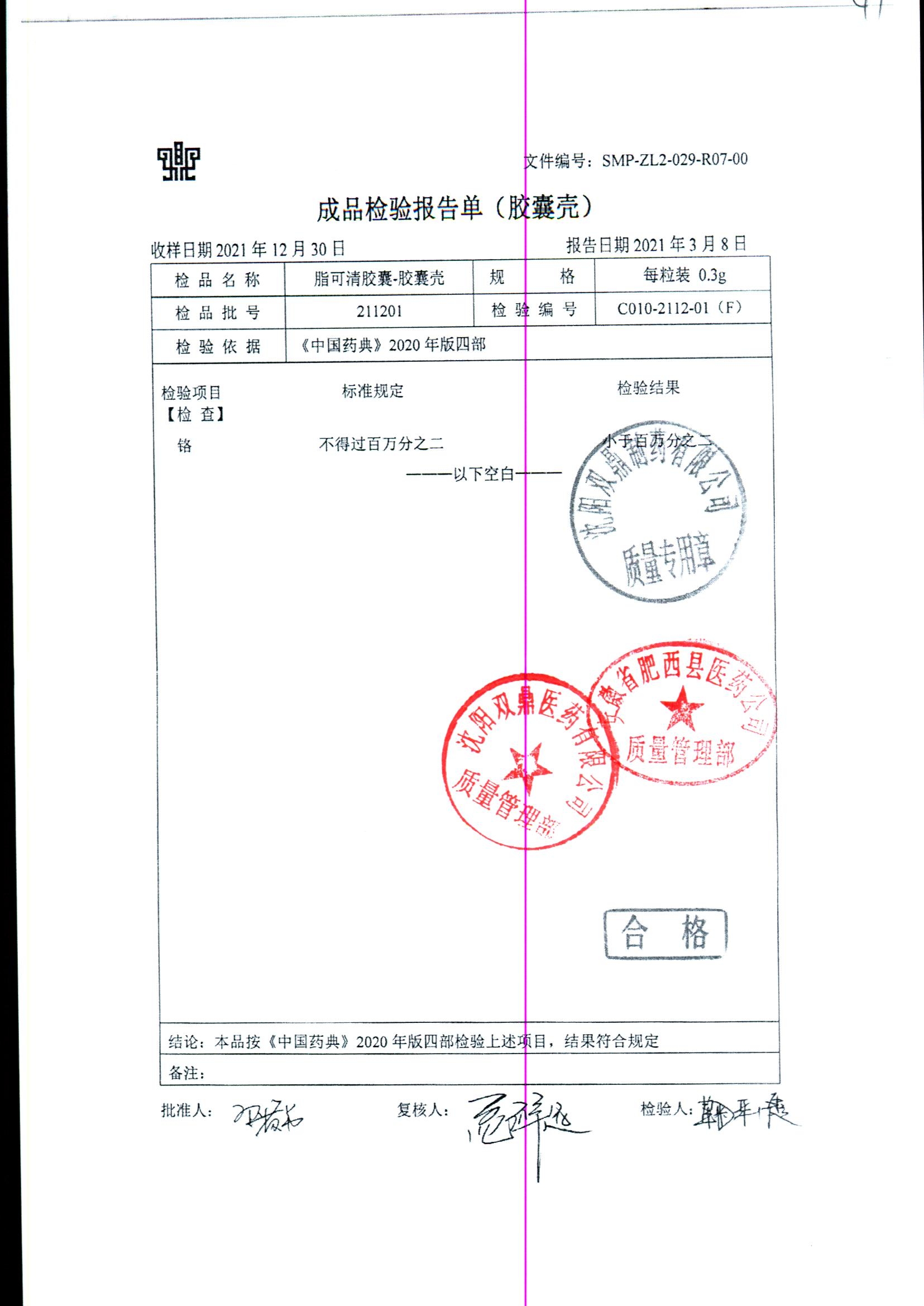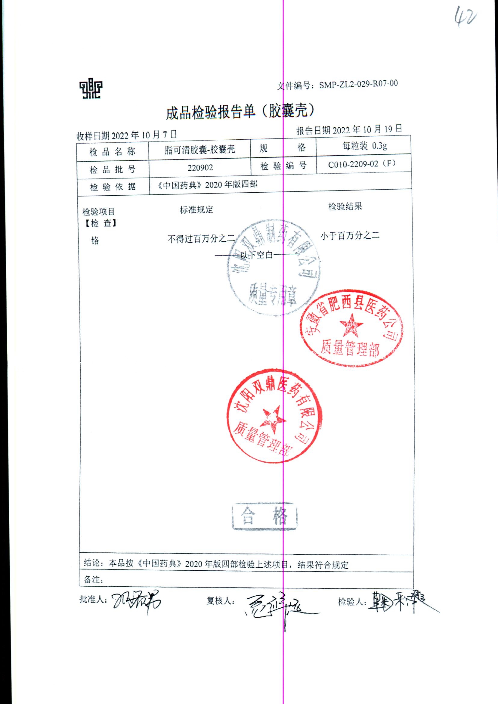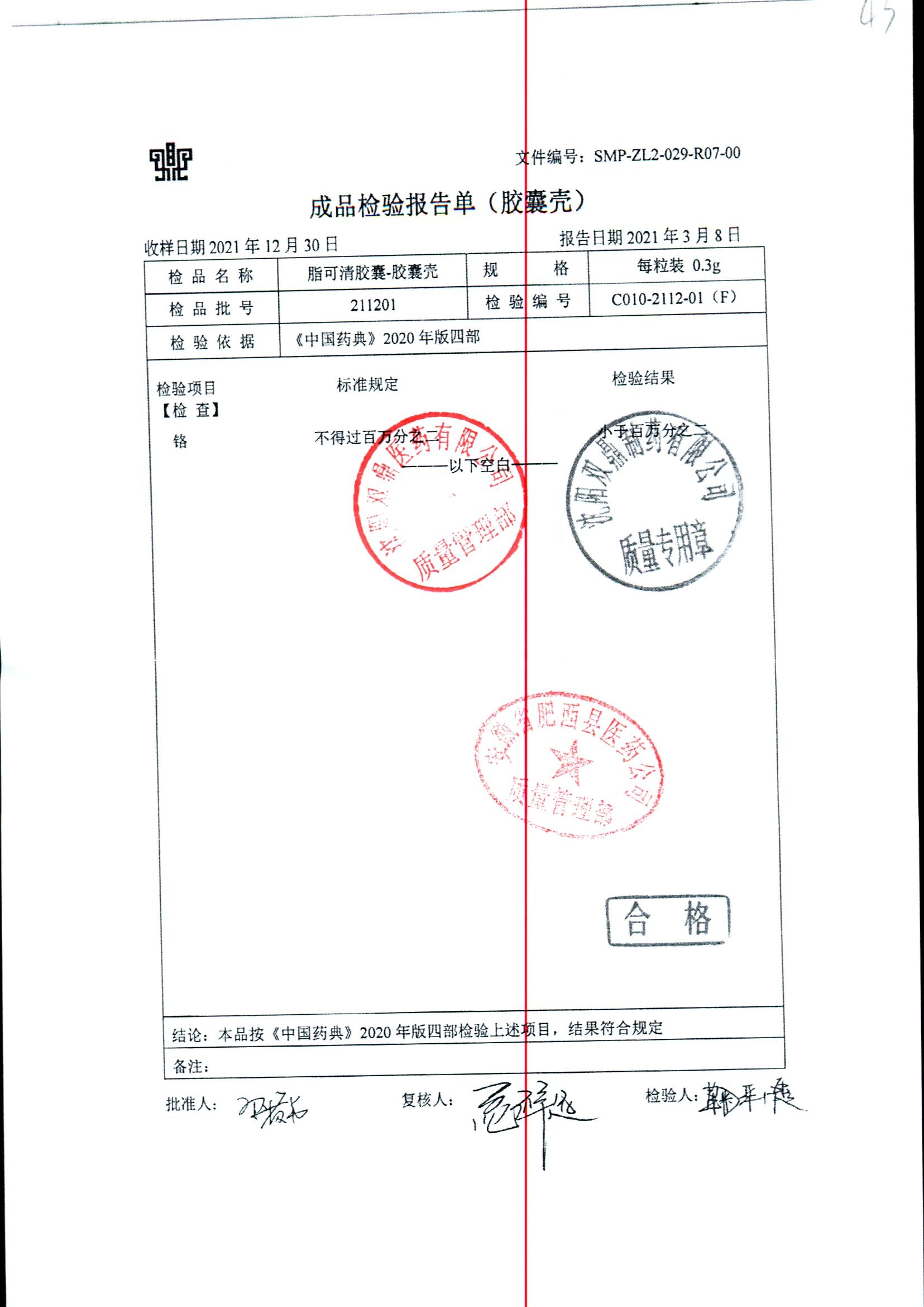 脂可清胶囊 | 0.3g | 211201/2 | 查看详情 |