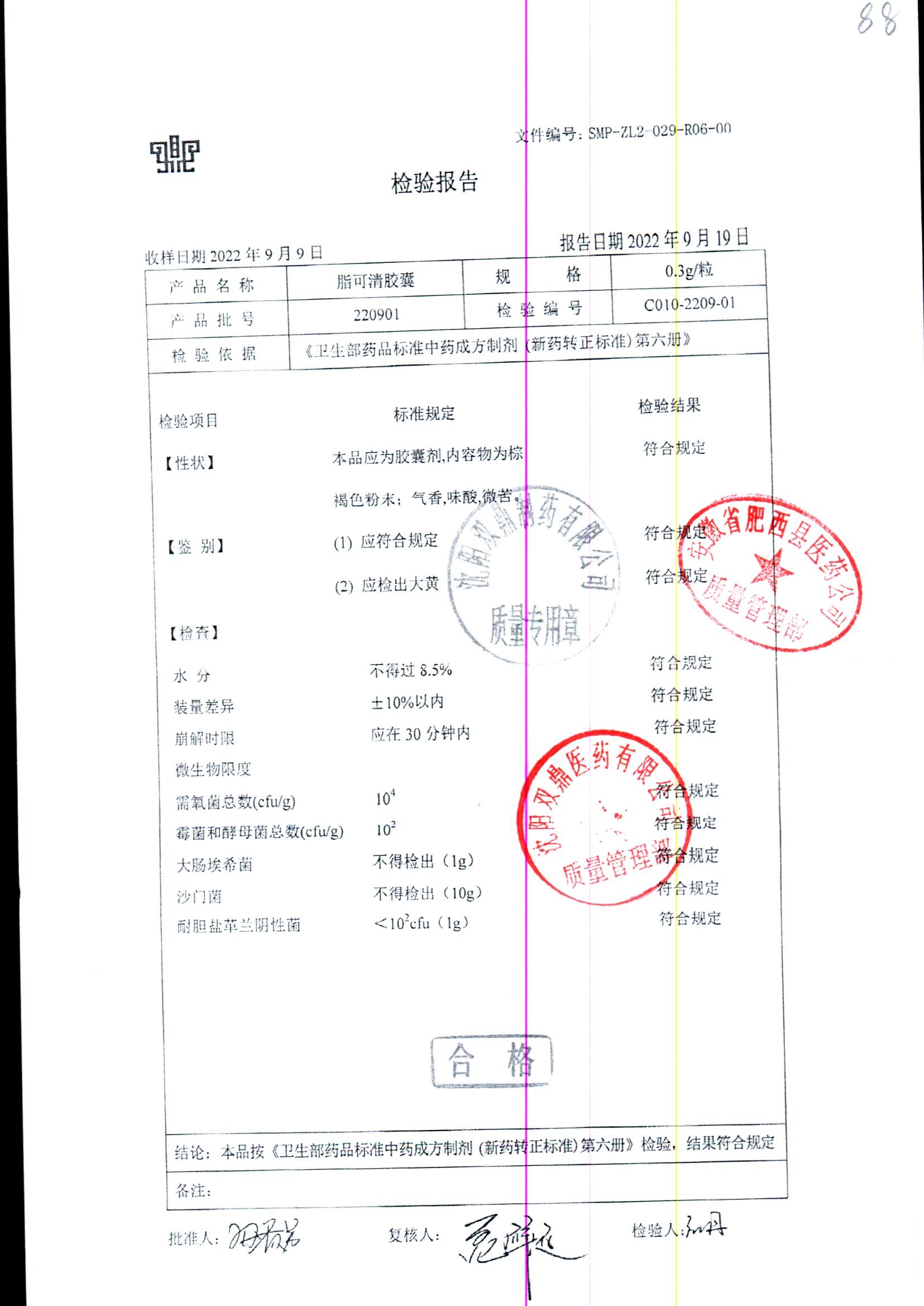 脂可清胶囊 | 0.3g | 220901/2 | 查看详情 |