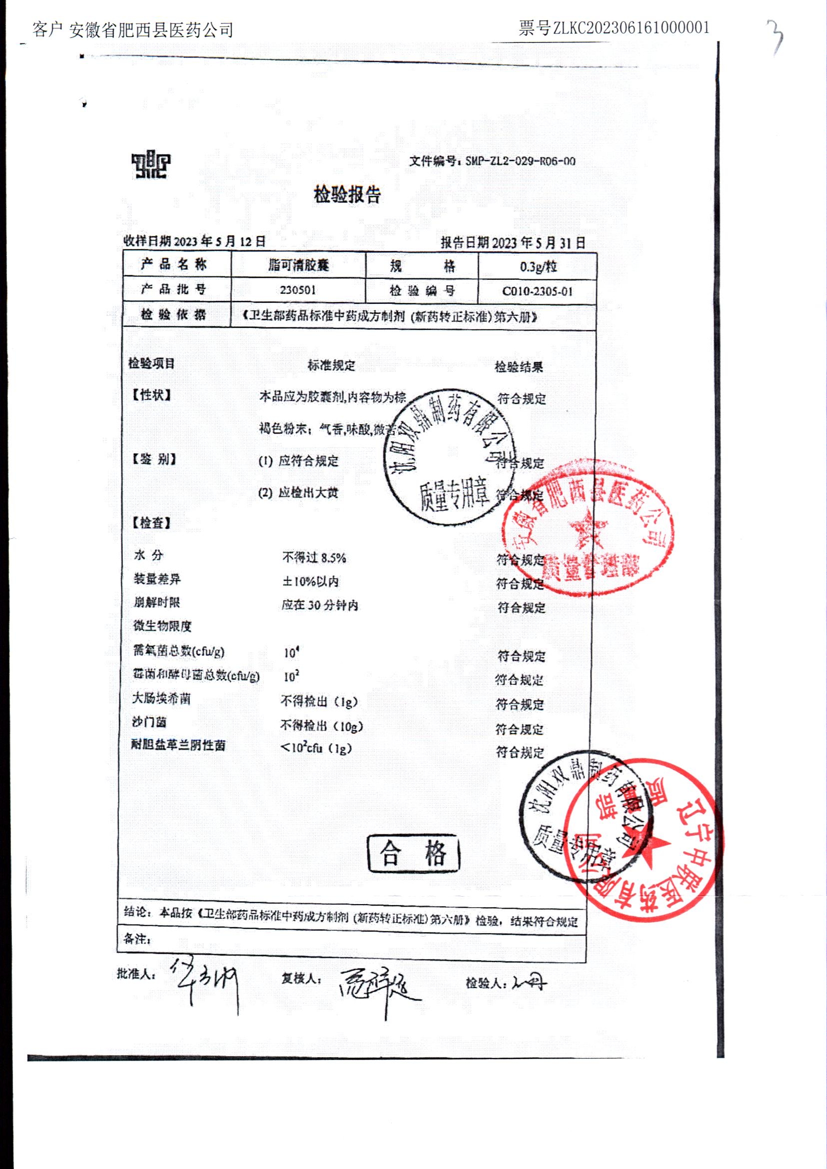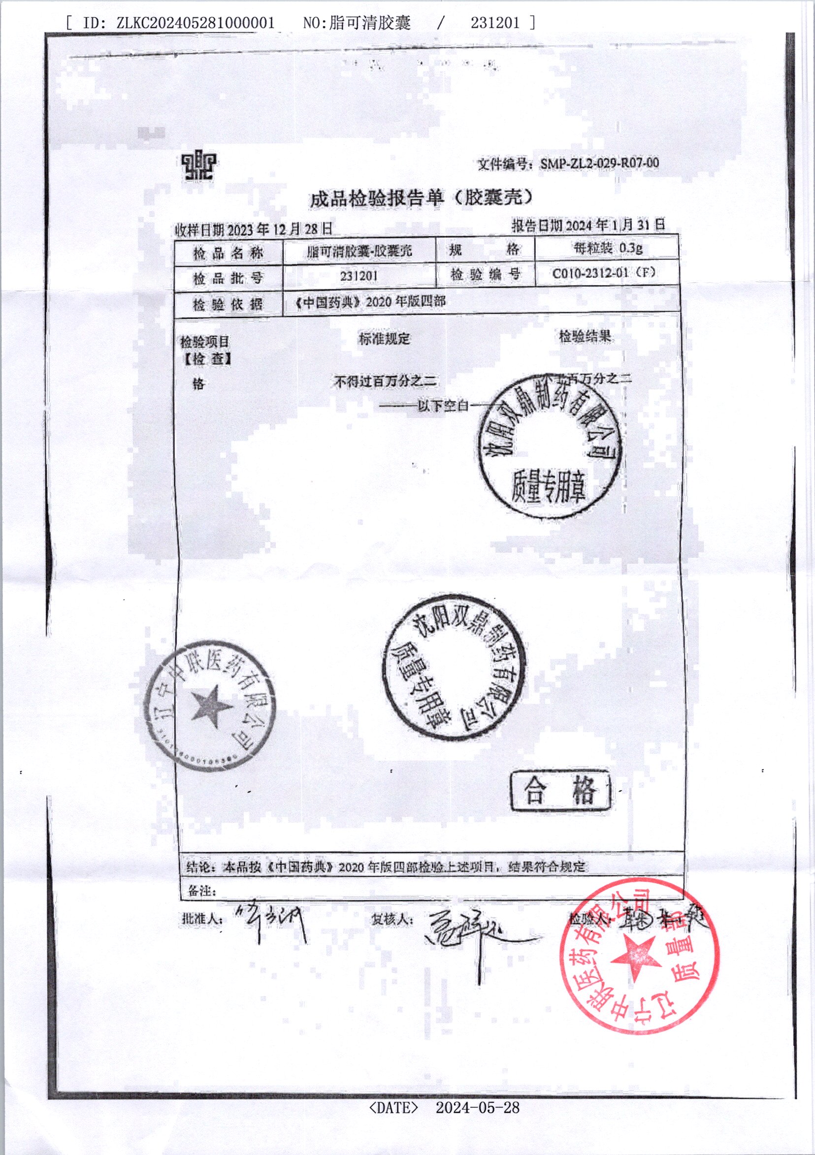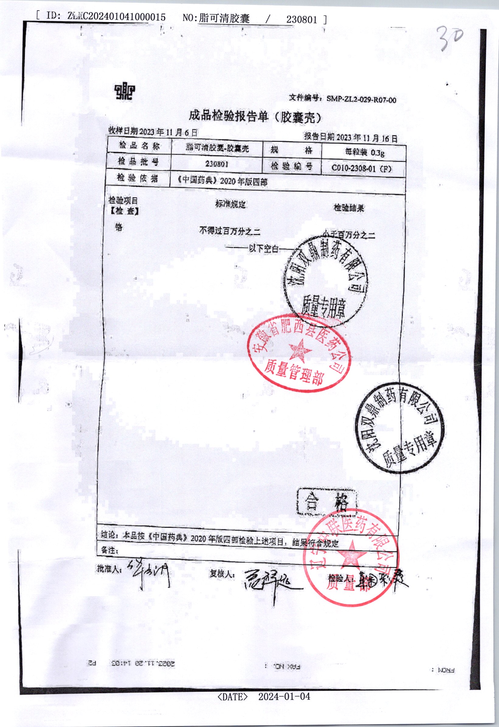 脂可清胶囊 | 0.3g | 231201/2 | 查看详情 |