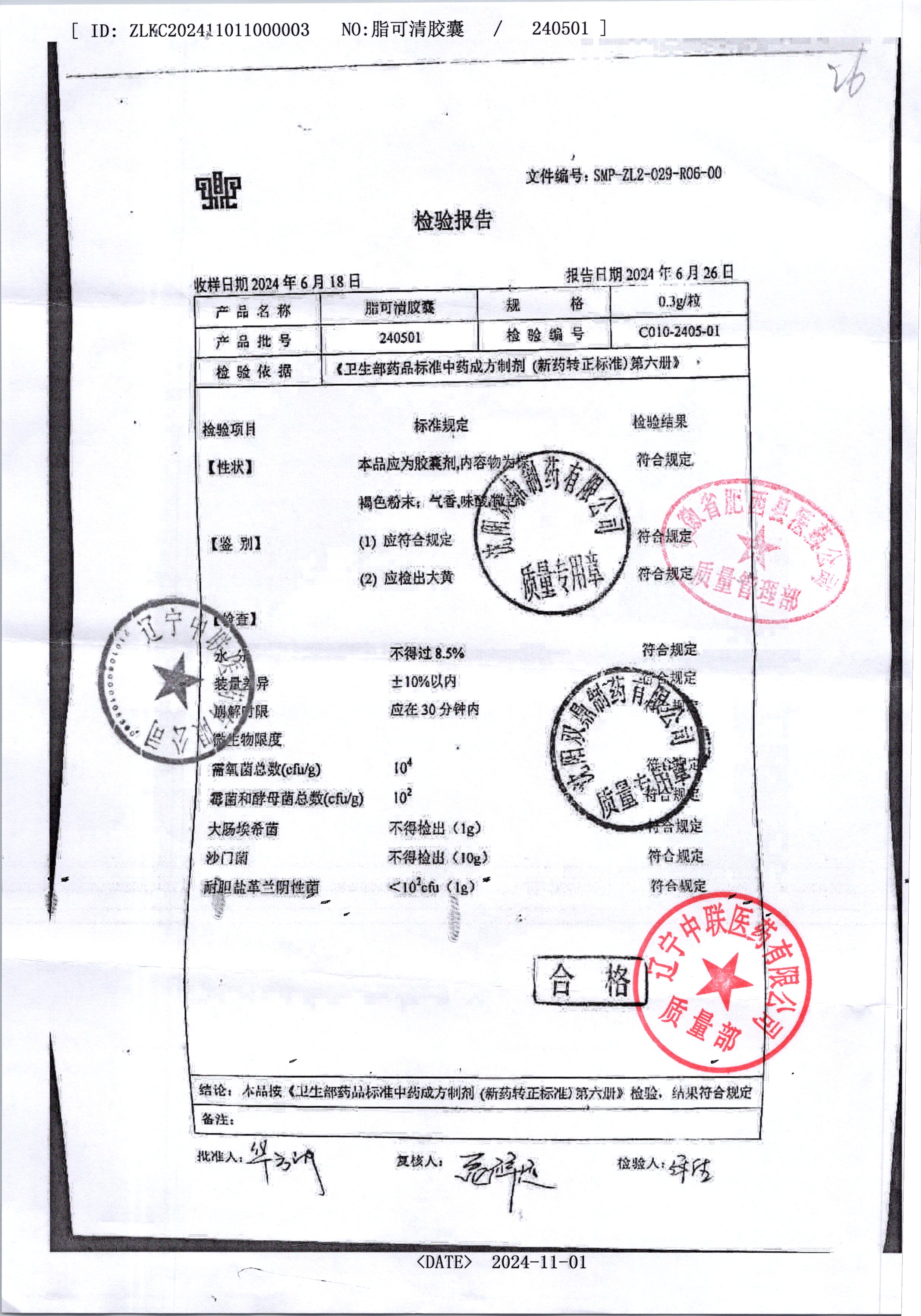脂可清胶囊 | 0.3g | 240901/1 | 查看详情 |