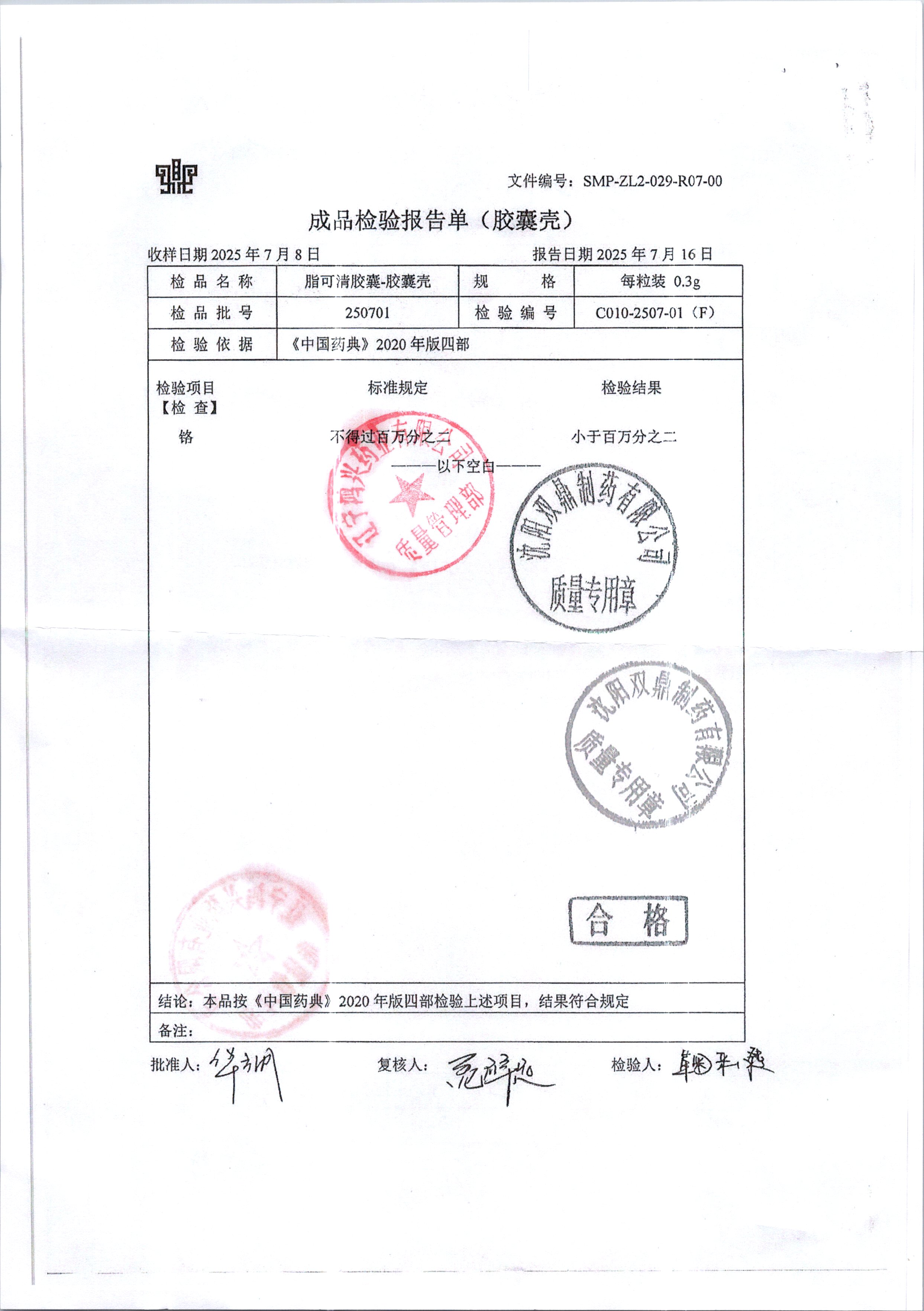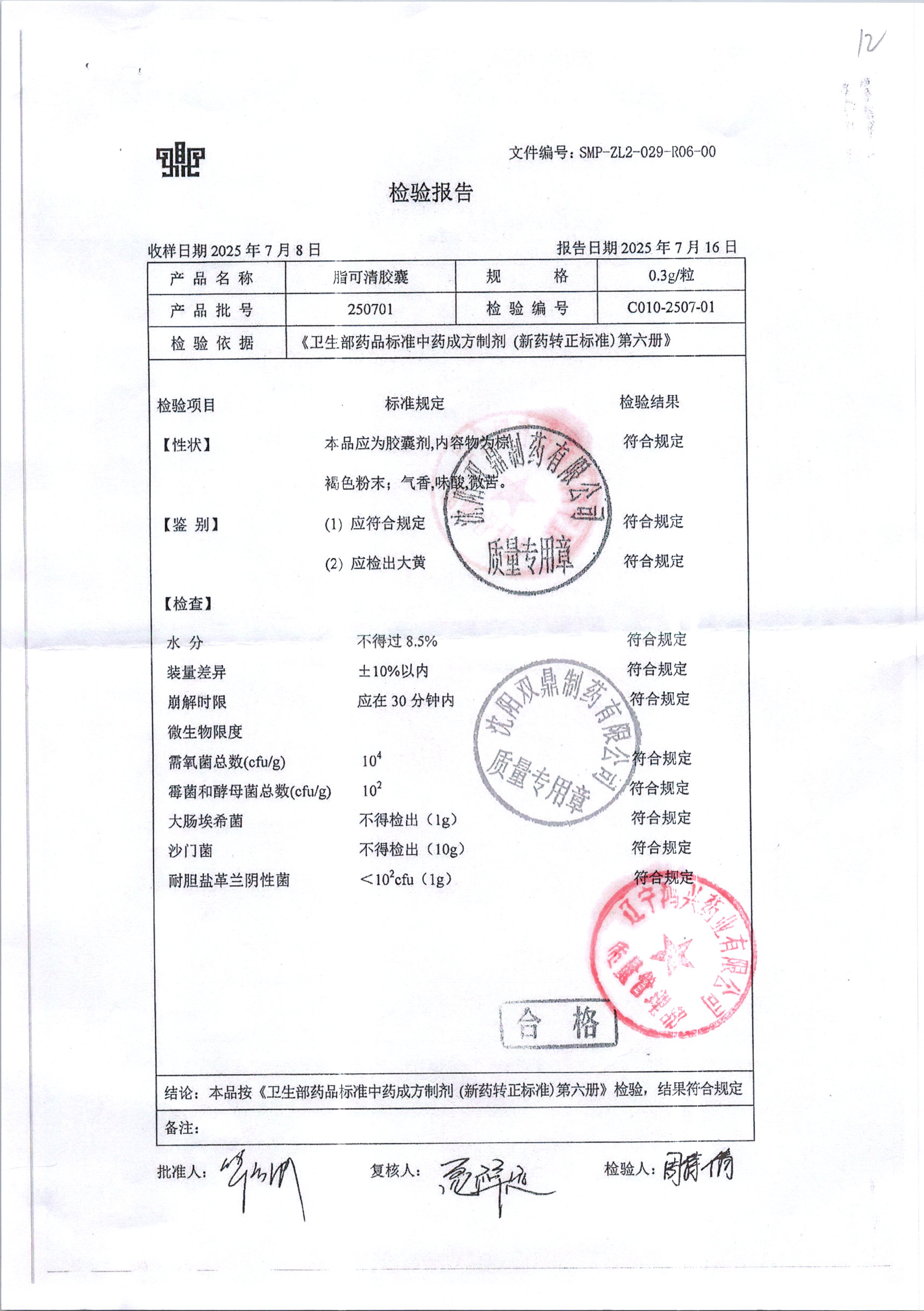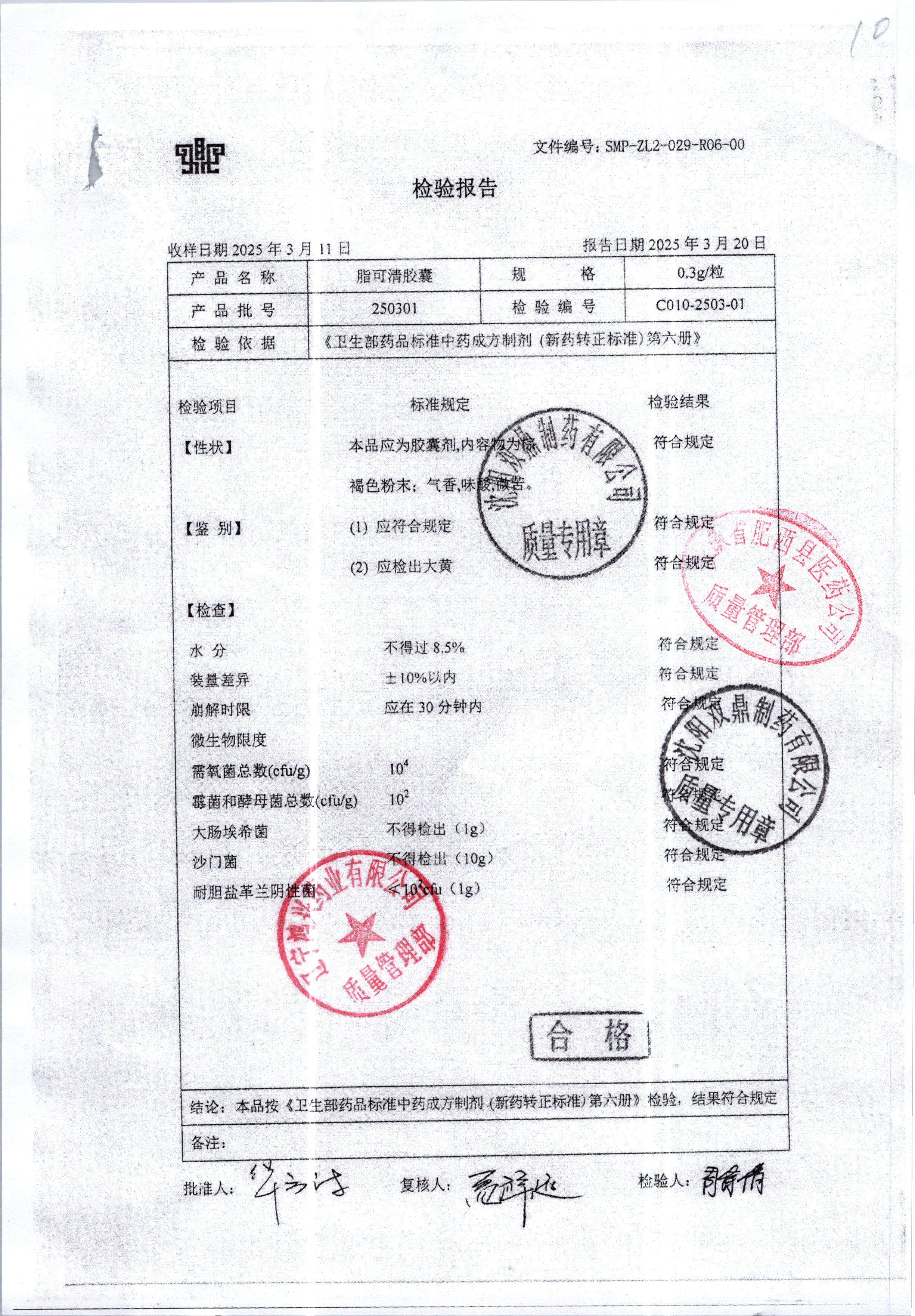脂可清胶囊 | 0.3g | 250701/1 | 查看详情 |