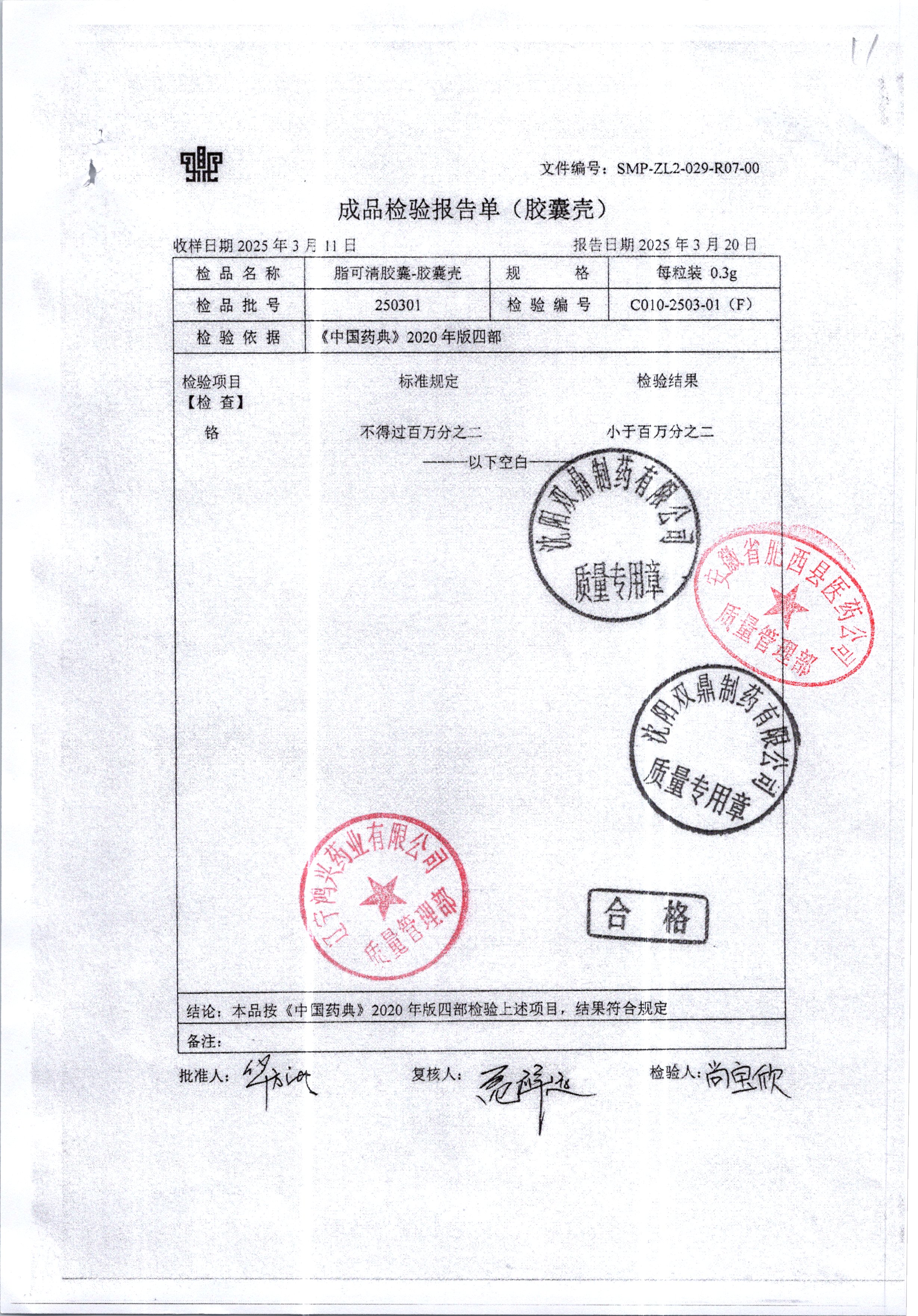 脂可清胶囊 | 0.3g | 250701/2 | 查看详情 |