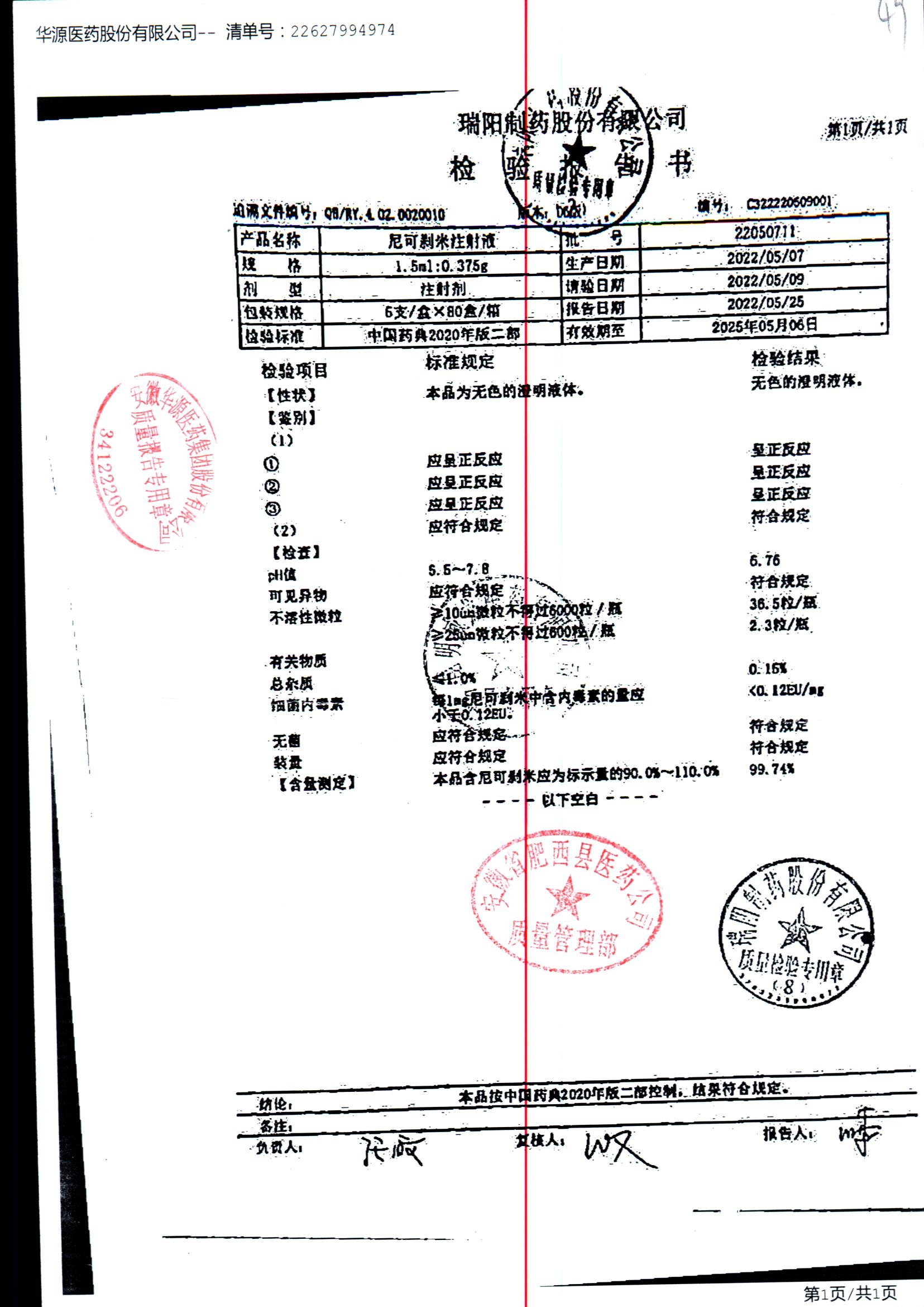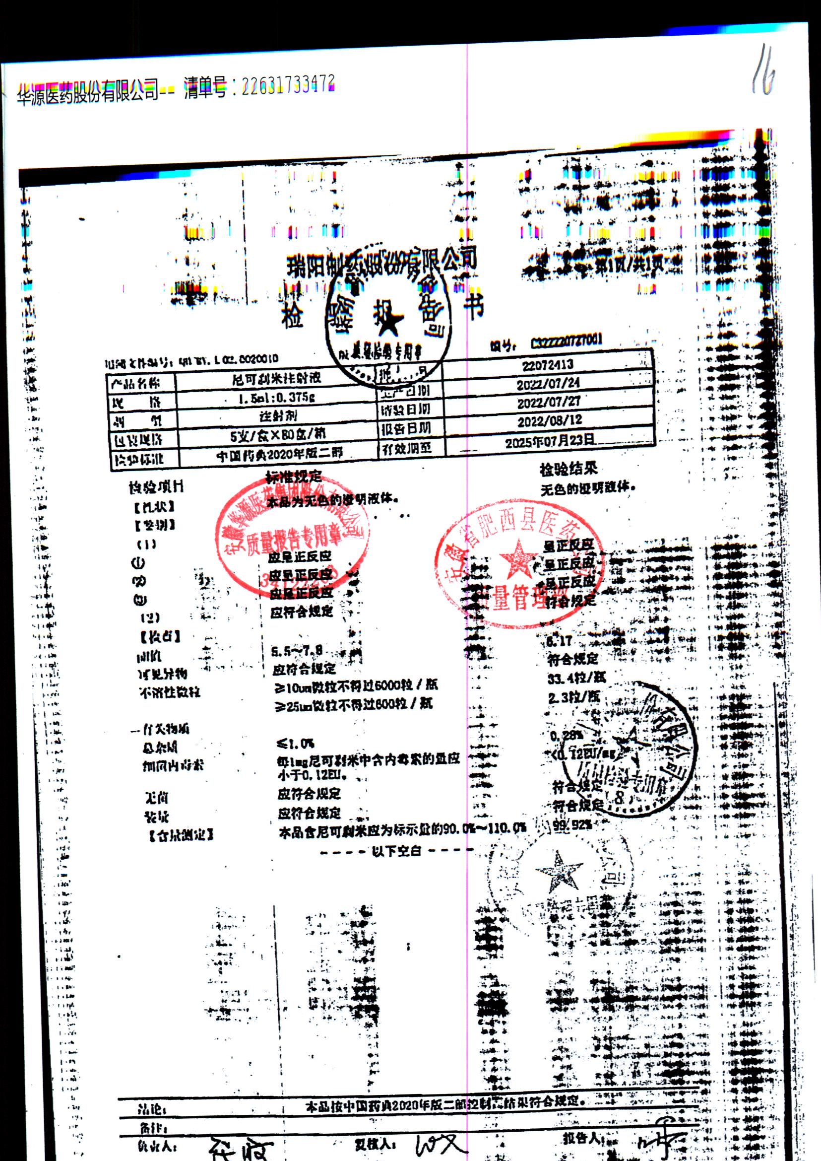 药检报告