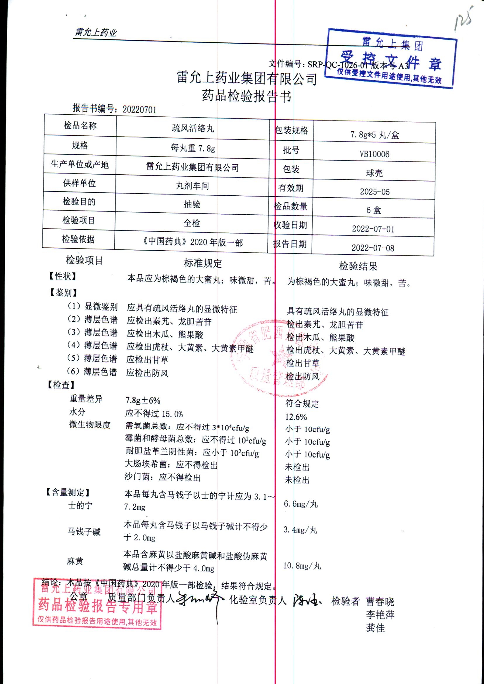 疏风活络丸 | 7.8*5丸 | VB10012 | 查看详情 |