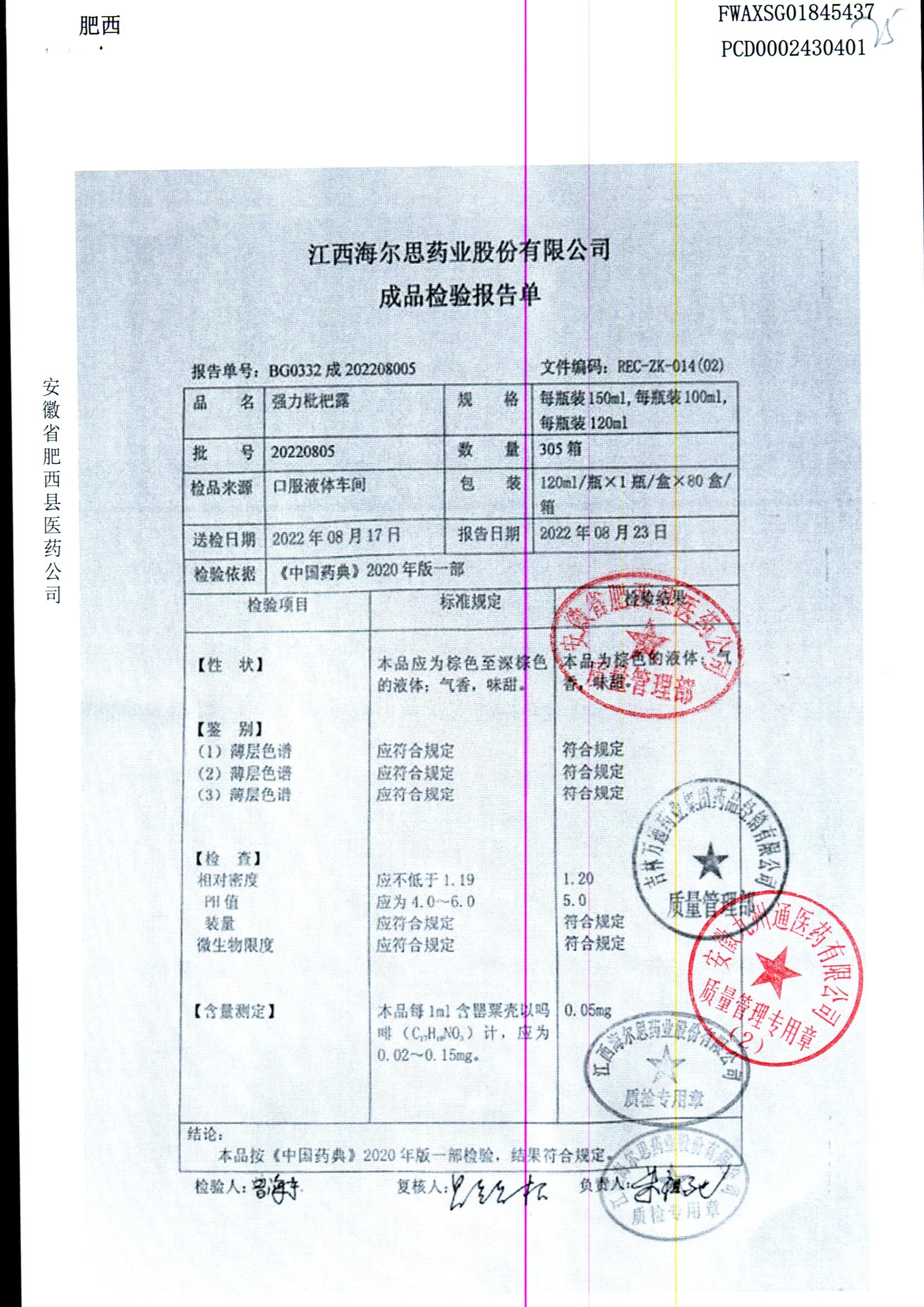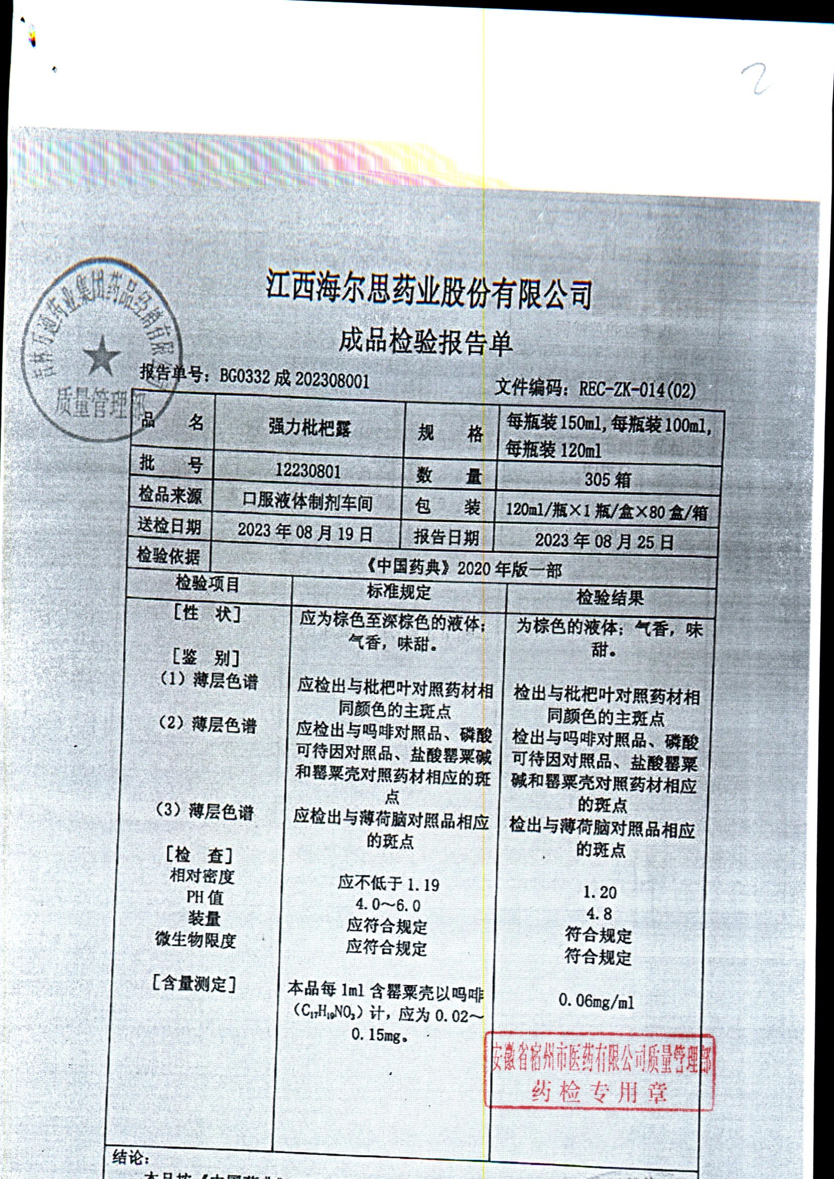 强力枇杷露 | 120ml | 20220805 | 查看详情 |
