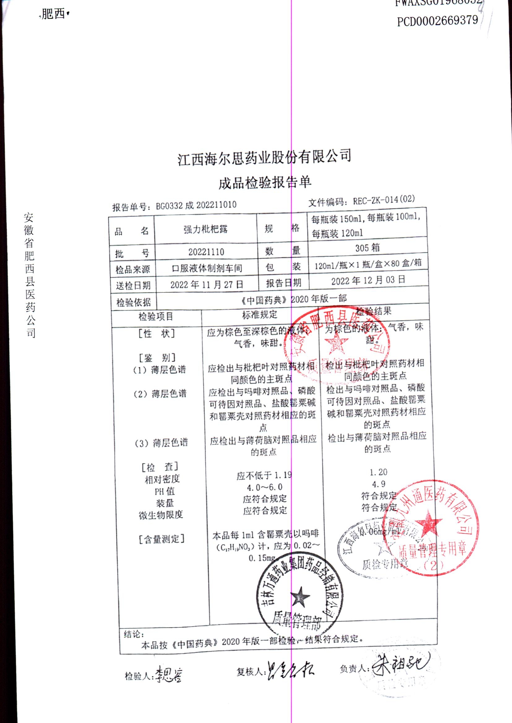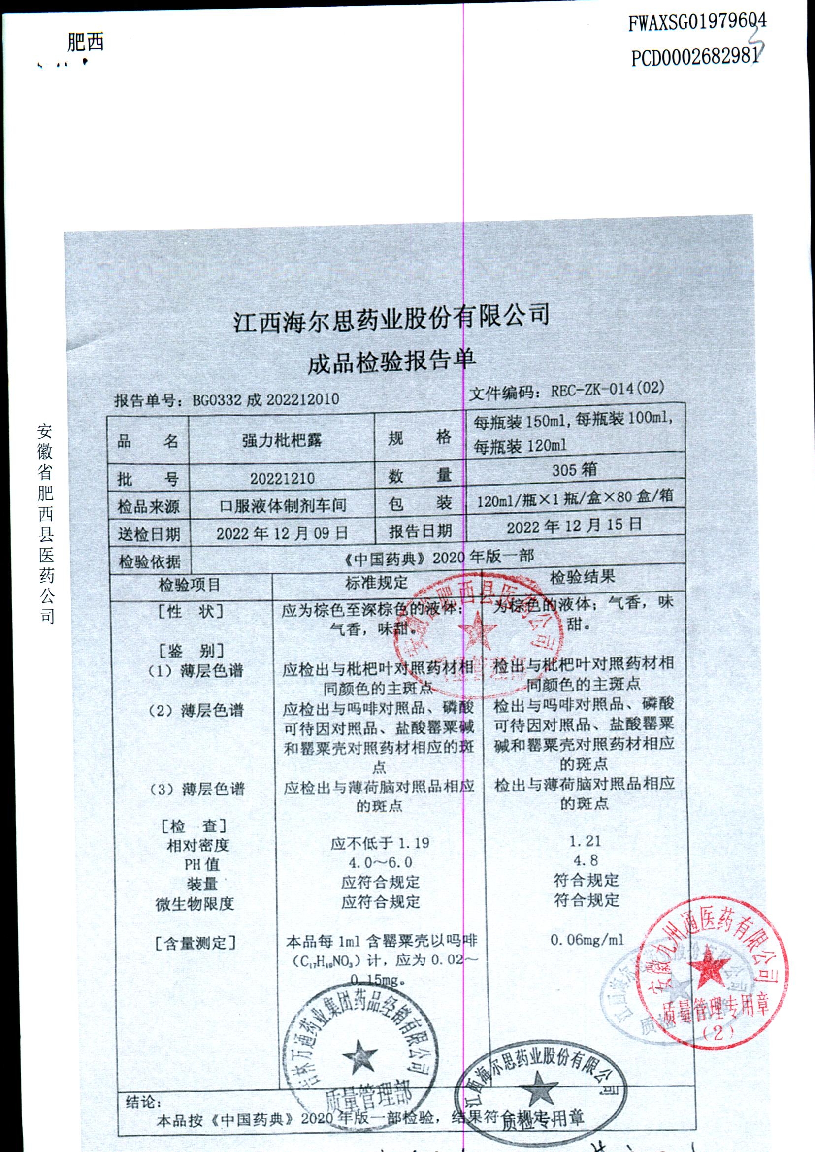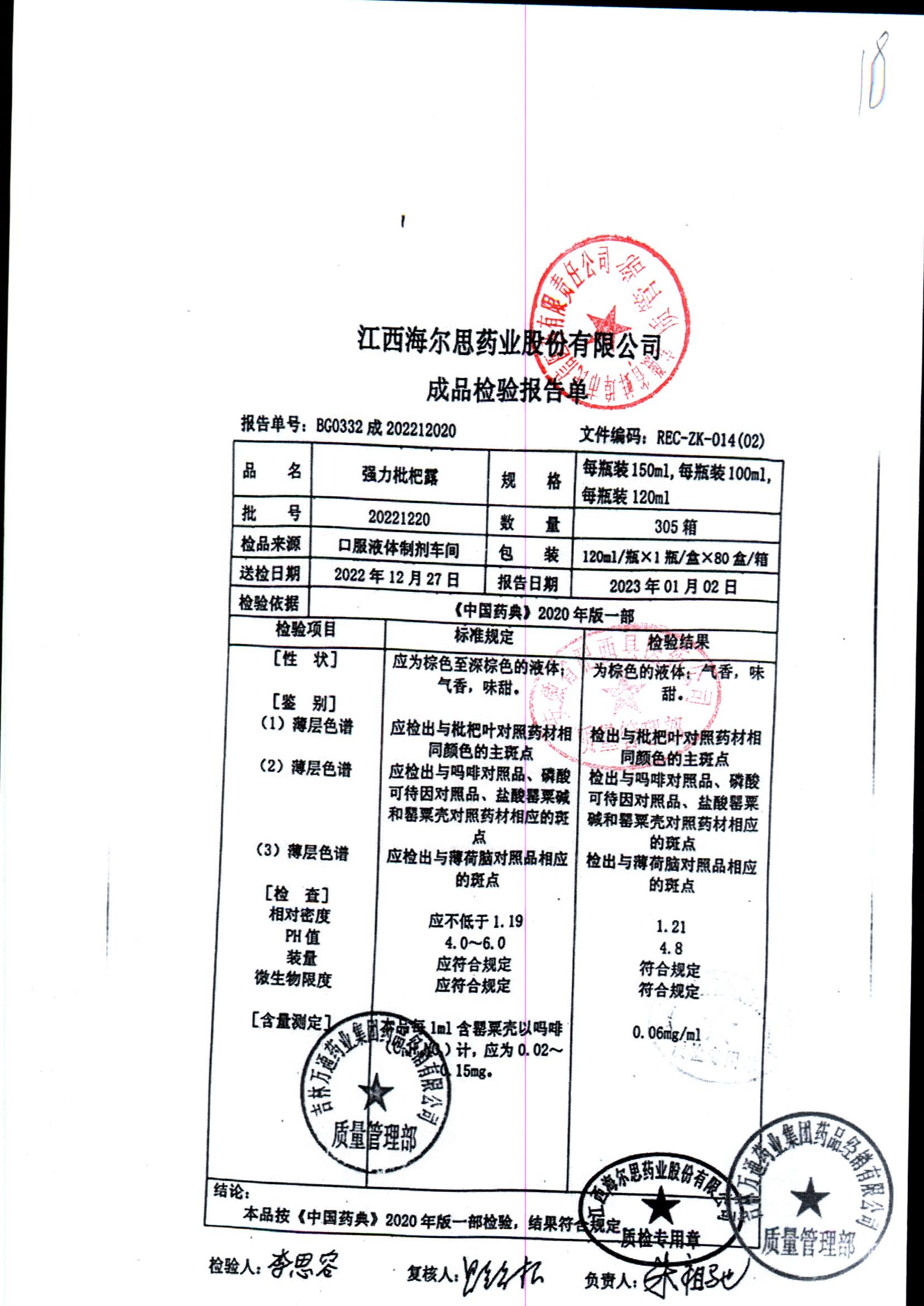 强力枇杷露 | 120ml | 20221219 | 查看详情 |