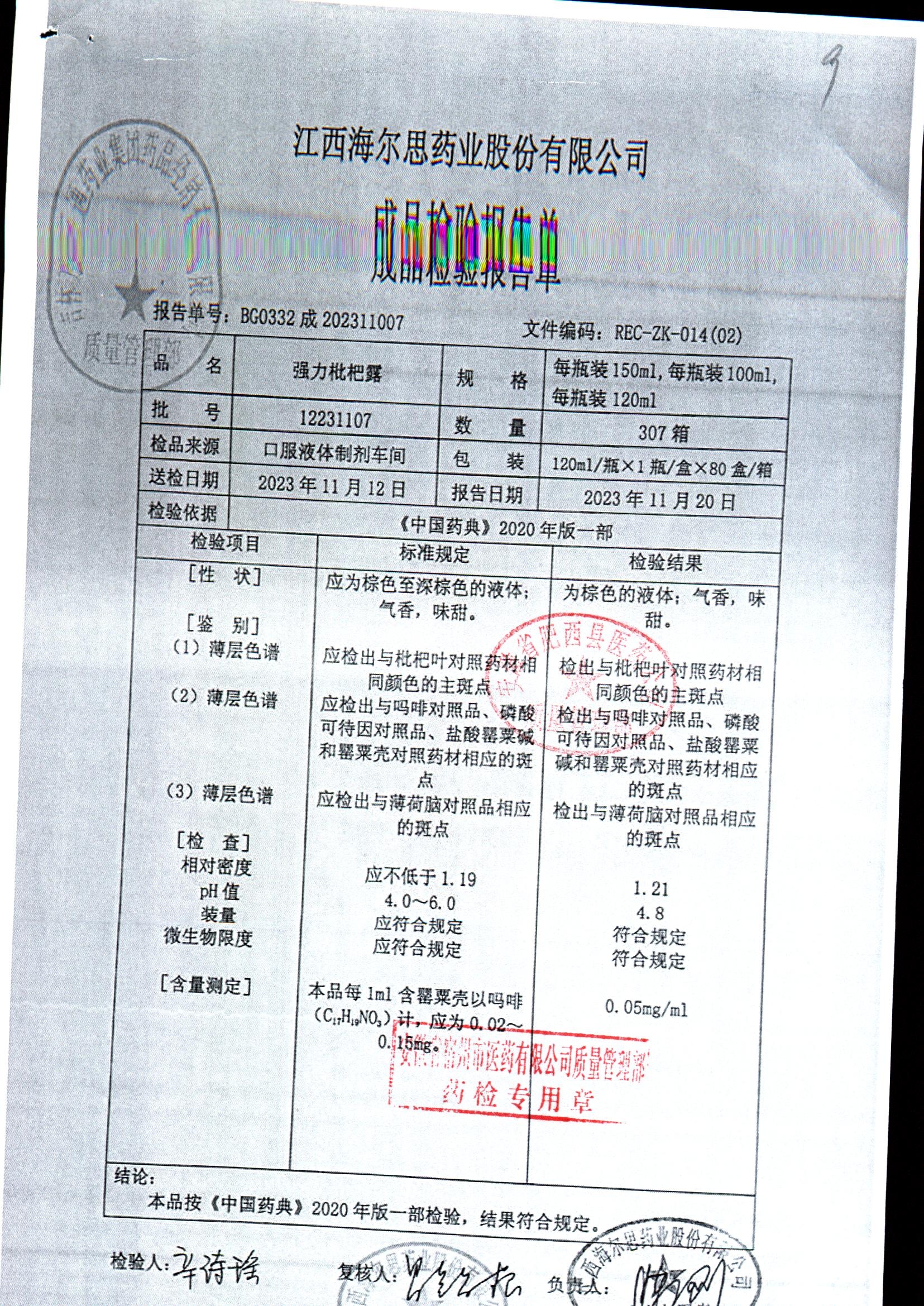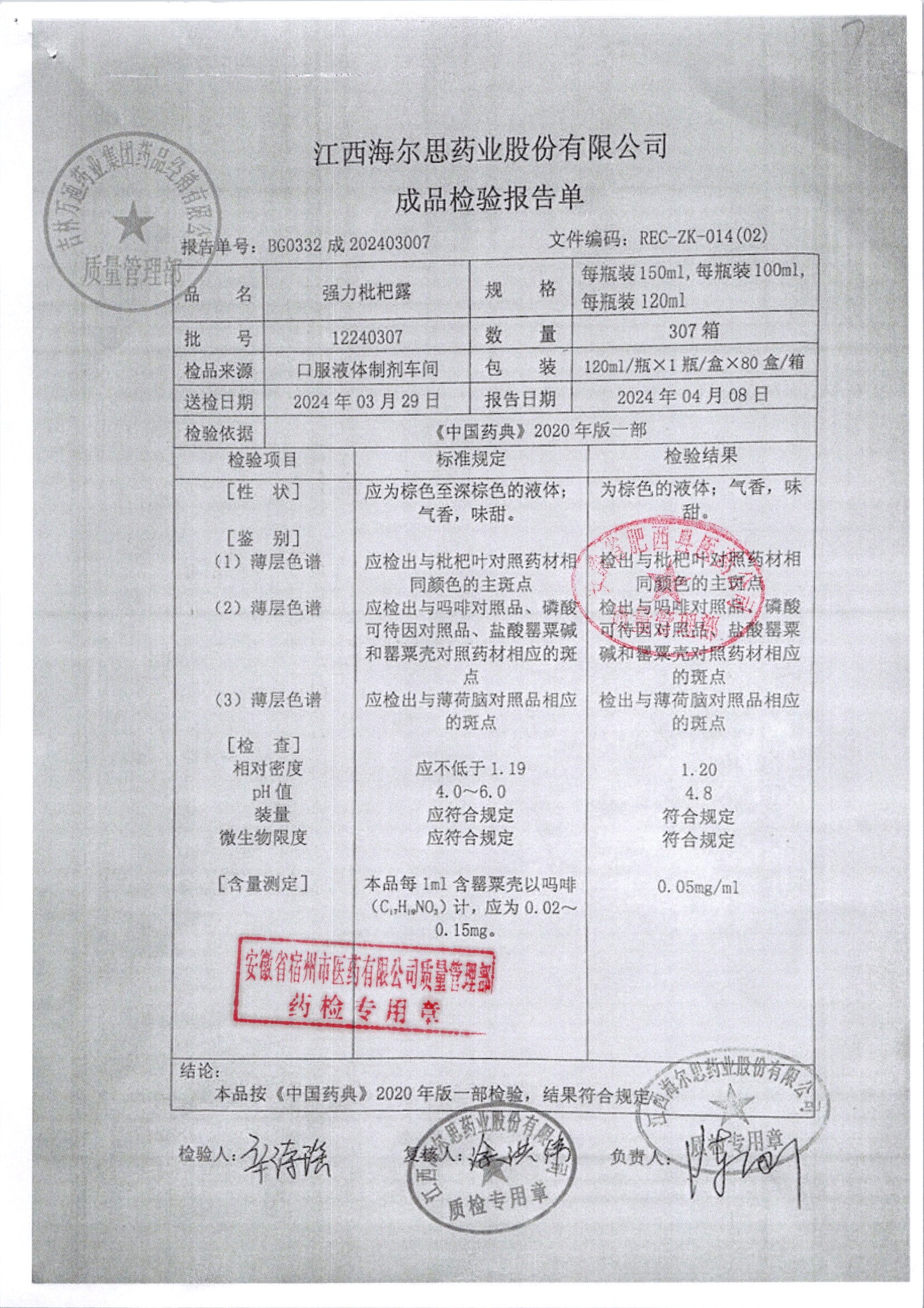 强力枇杷露 | 120ml | 20220406 | 查看详情 |