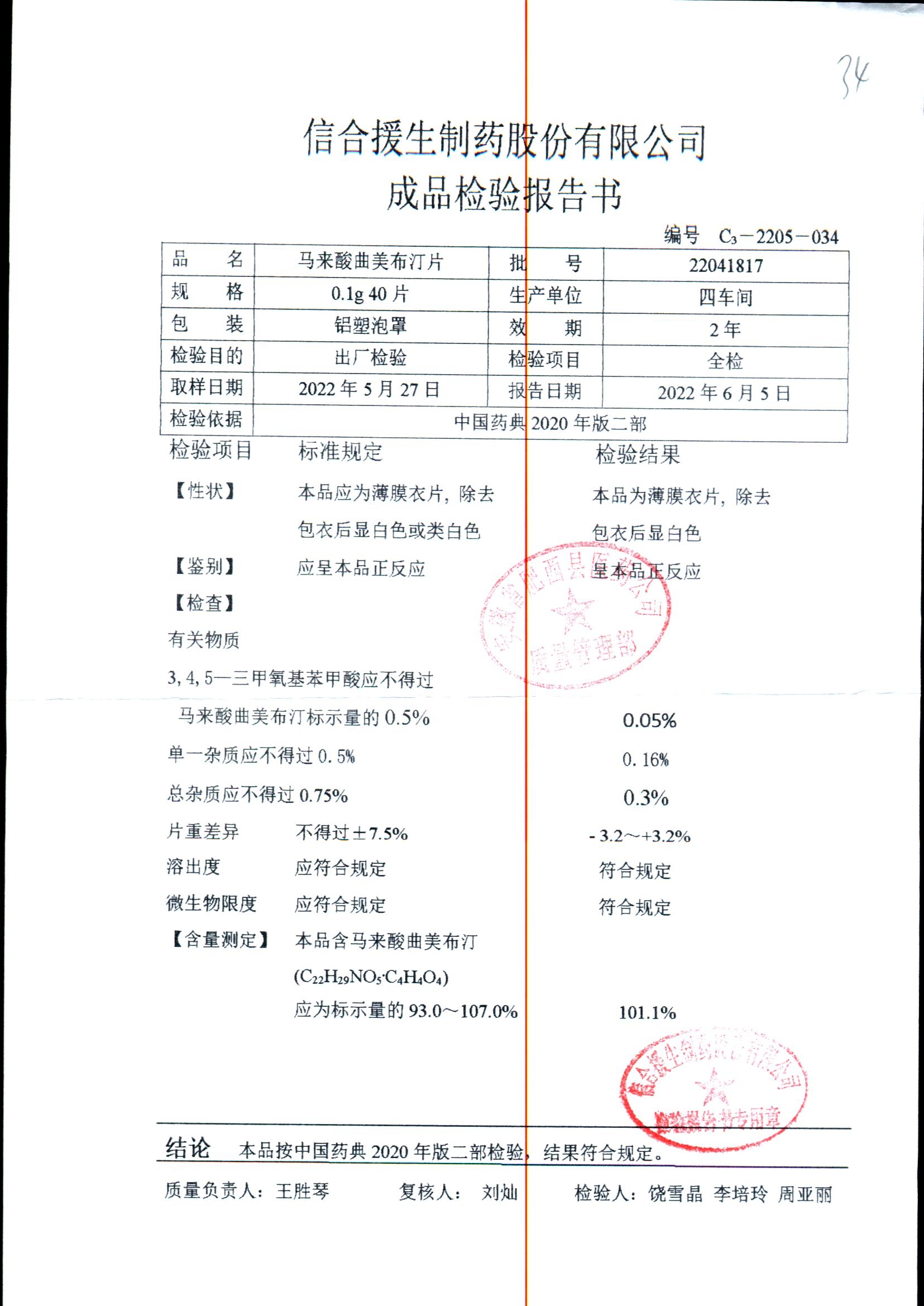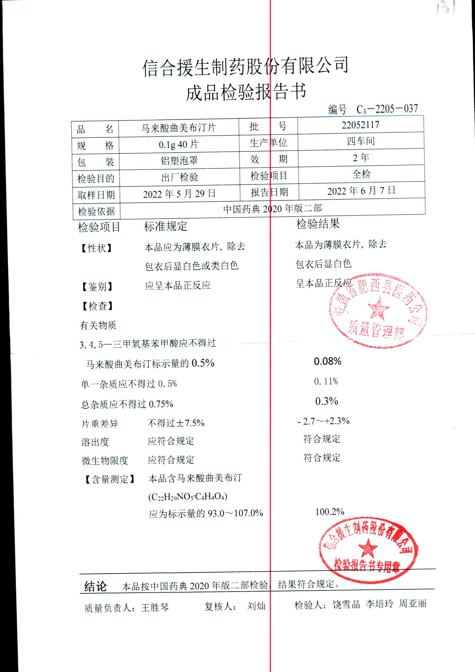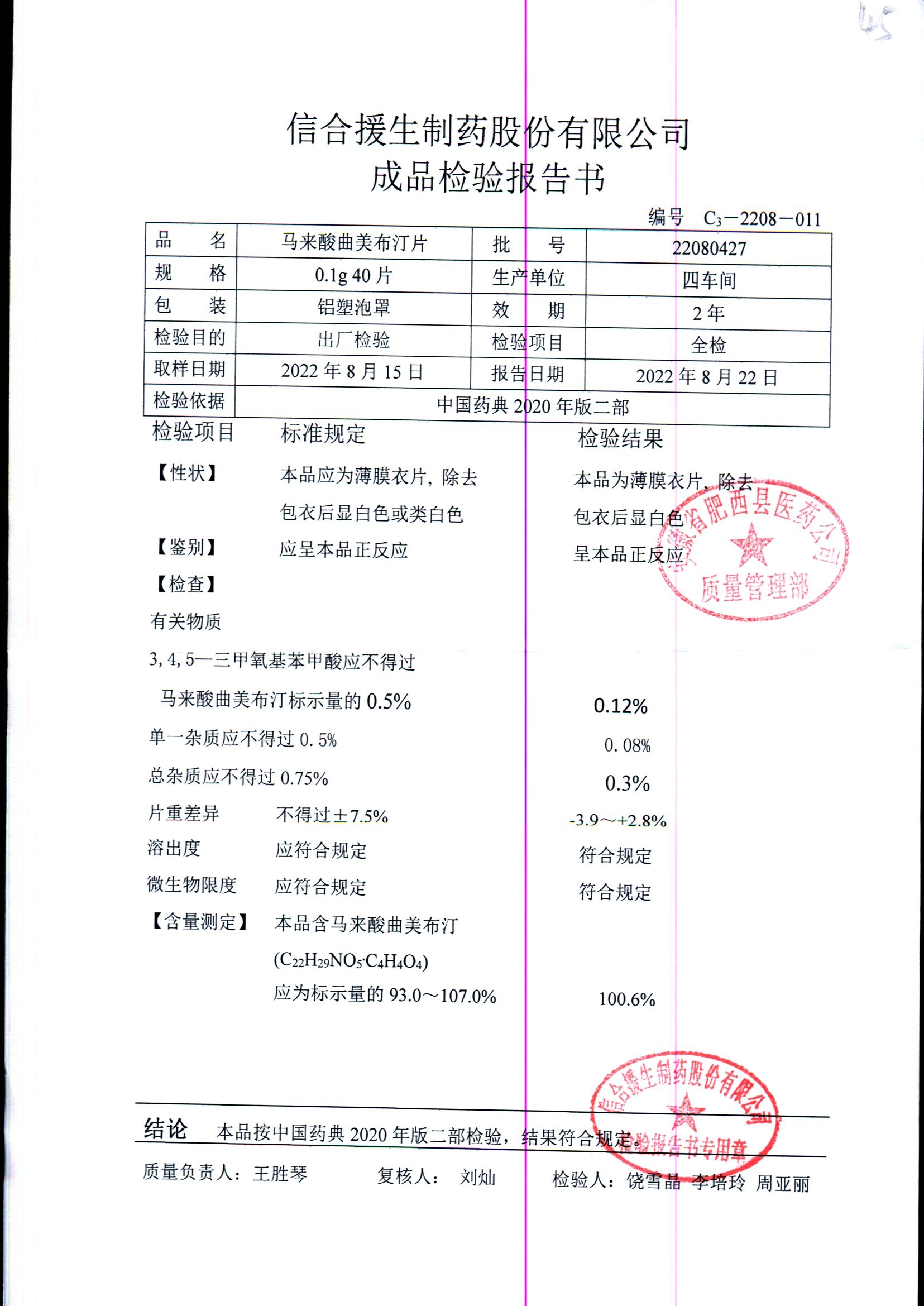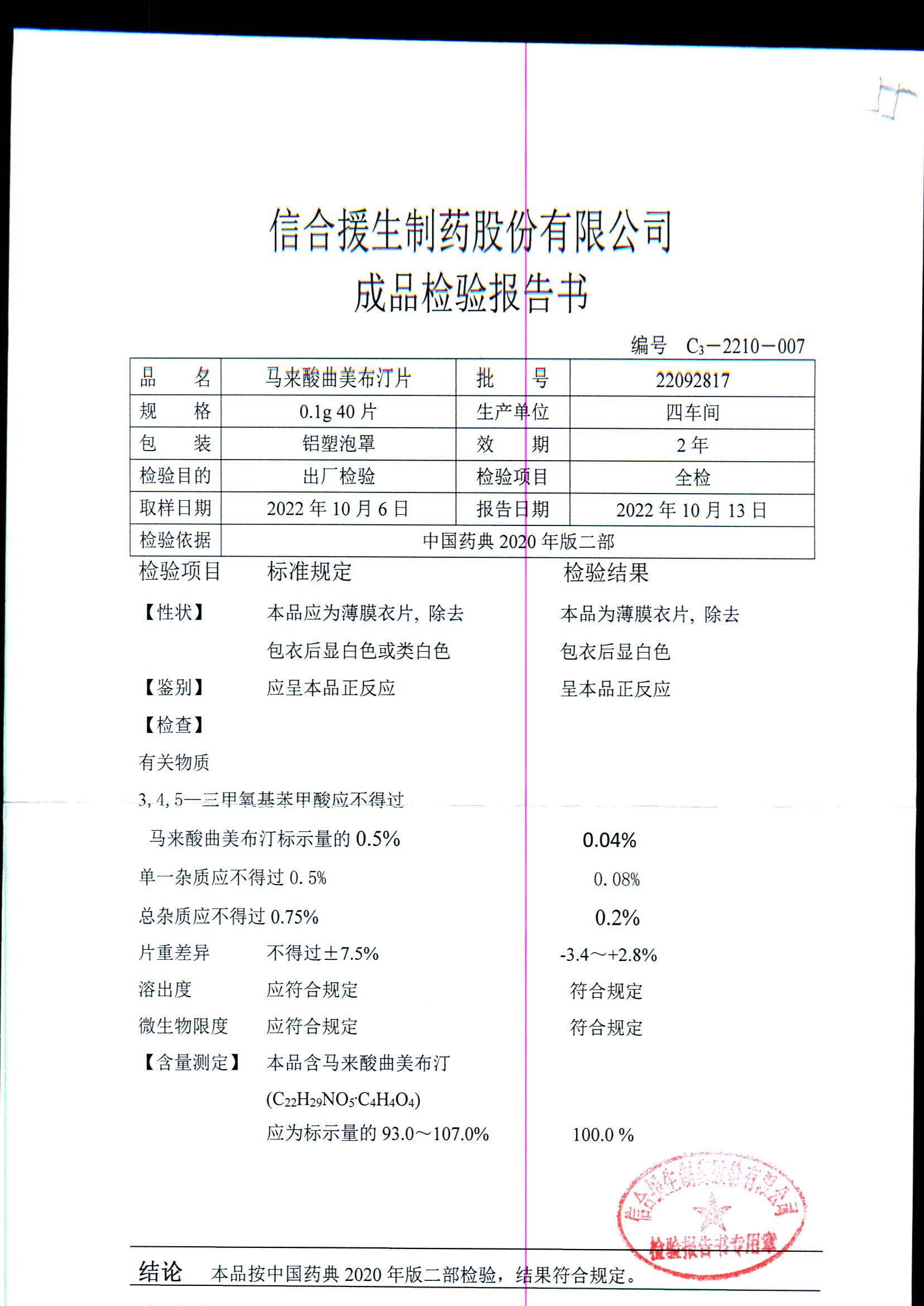 马来酸曲美布汀片 | 0.1g*40片 | 22080427 | 查看详情 |