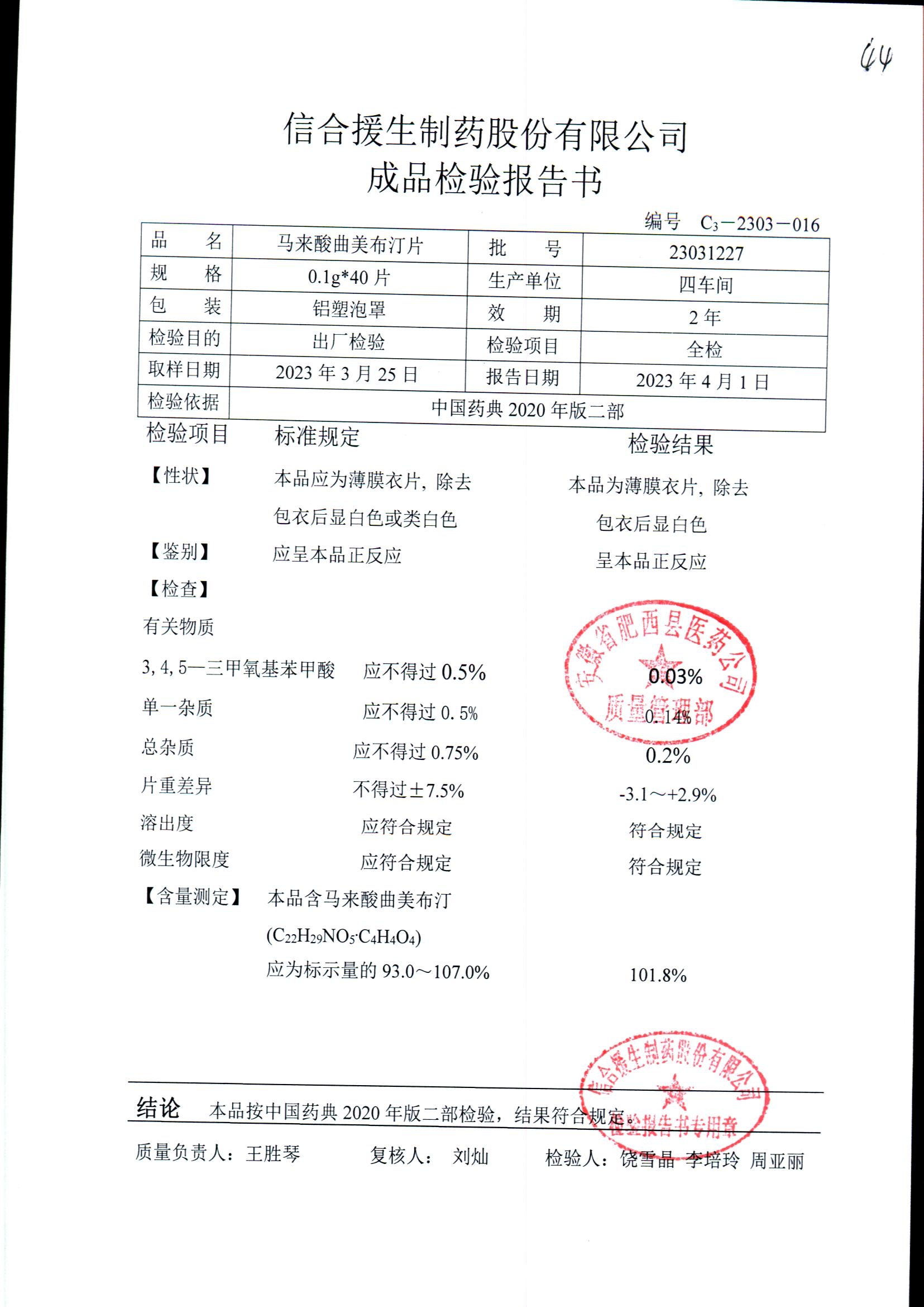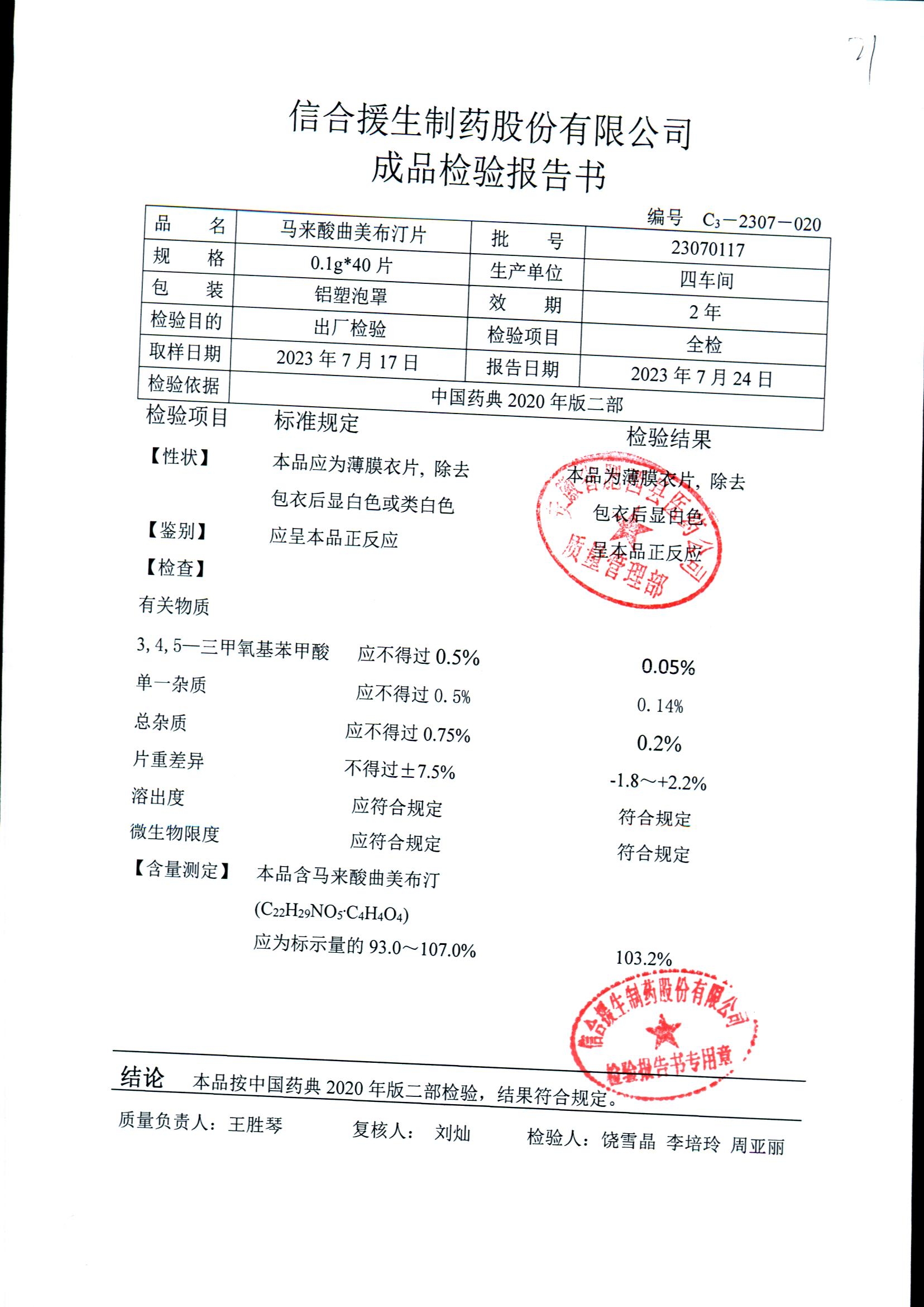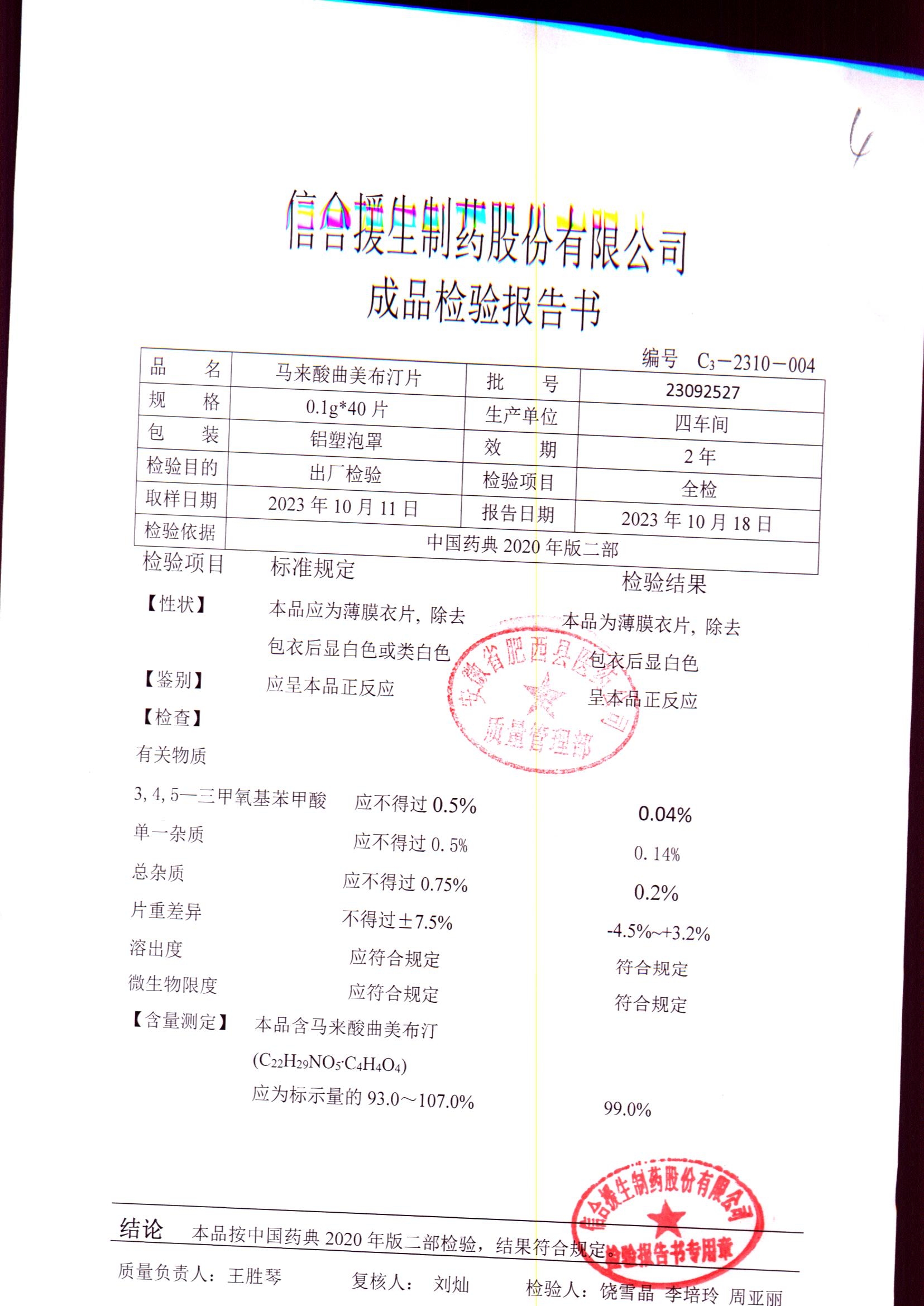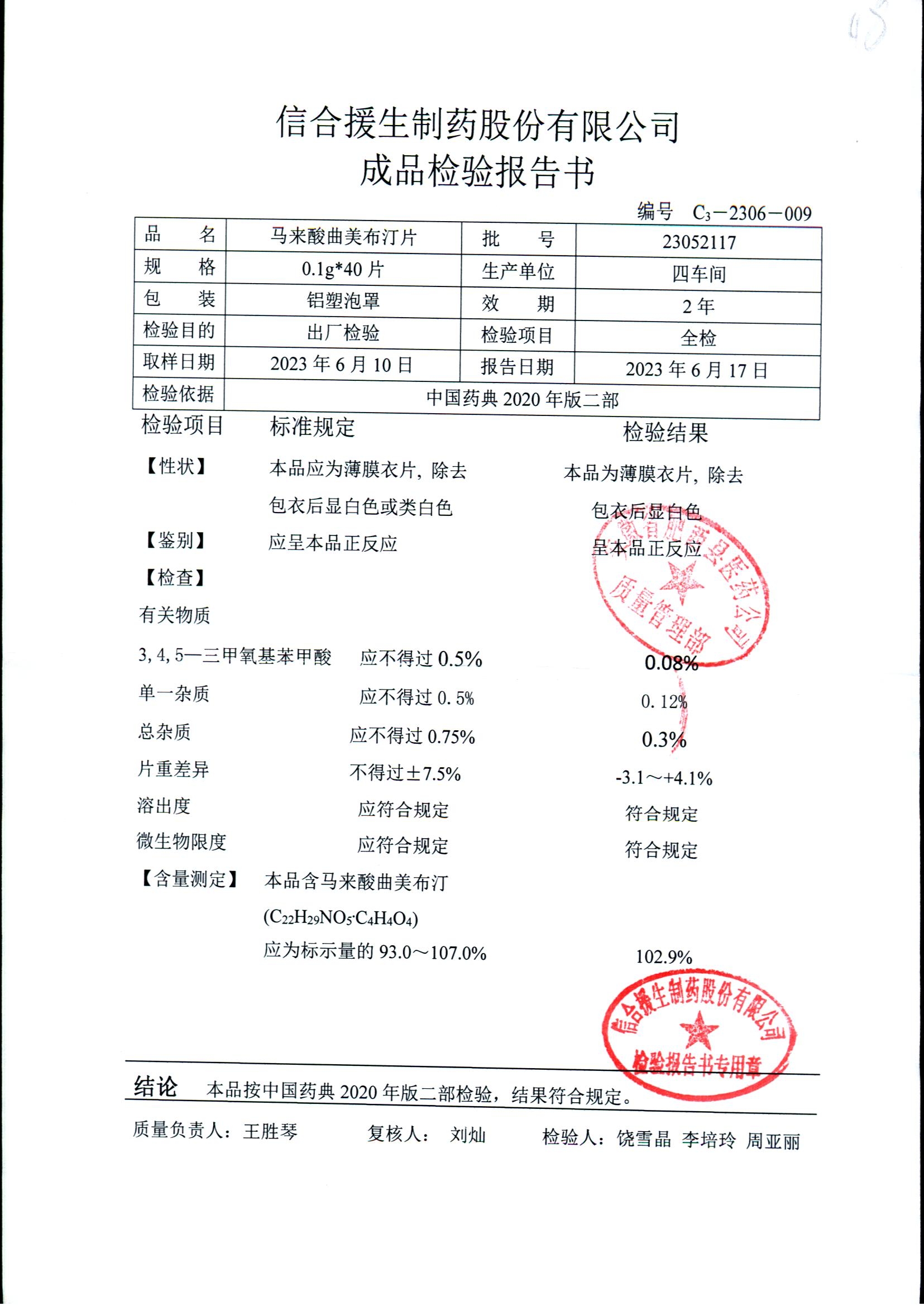 马来酸曲美布汀片 | 0.1g*40片 | 23070117 | 查看详情 |