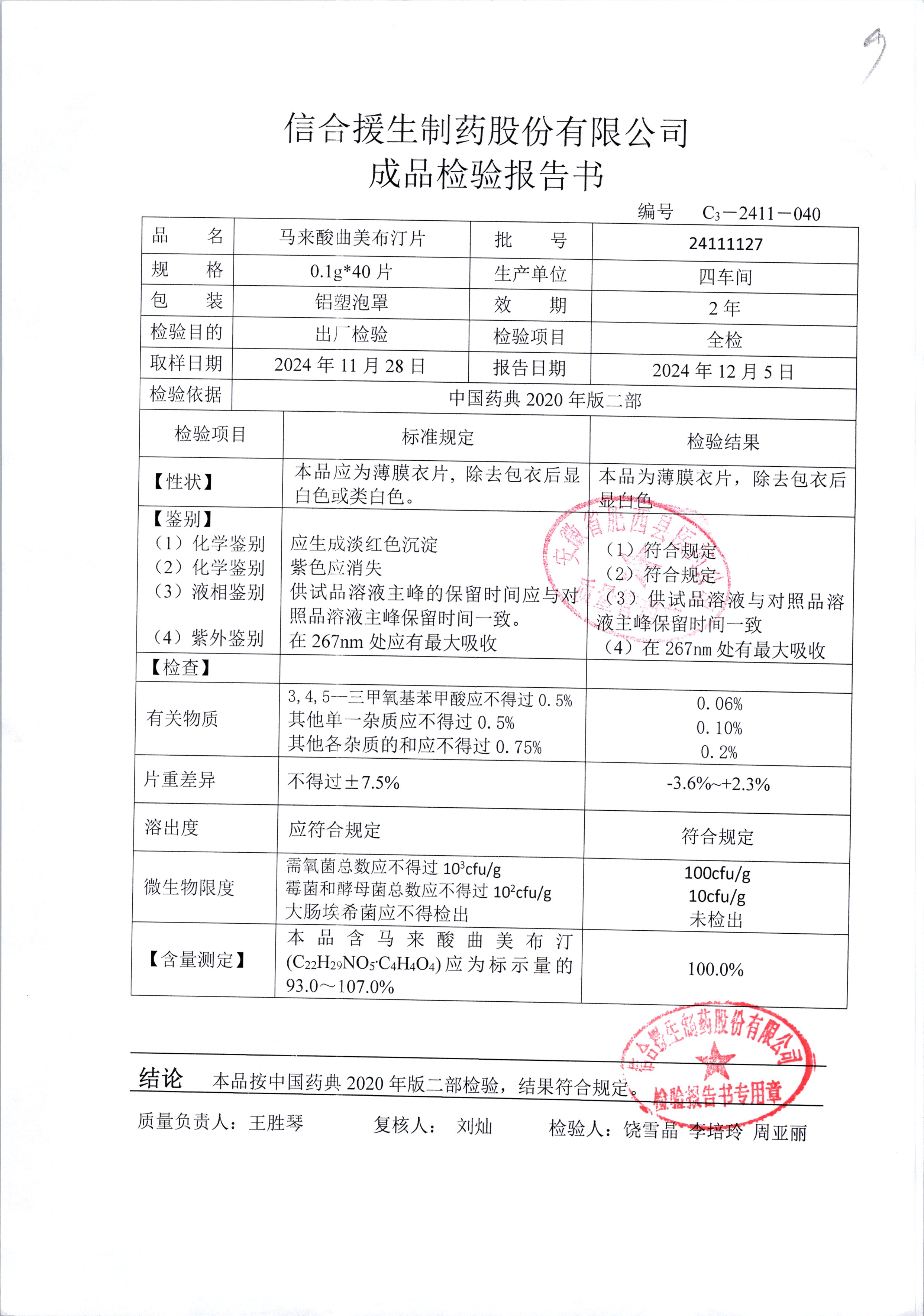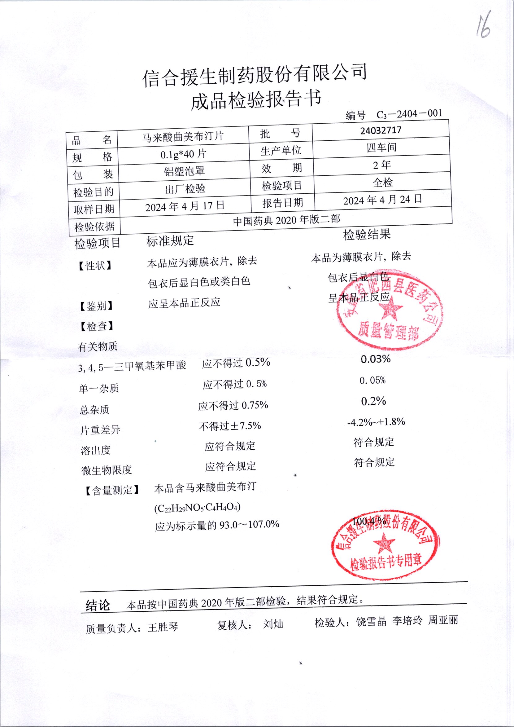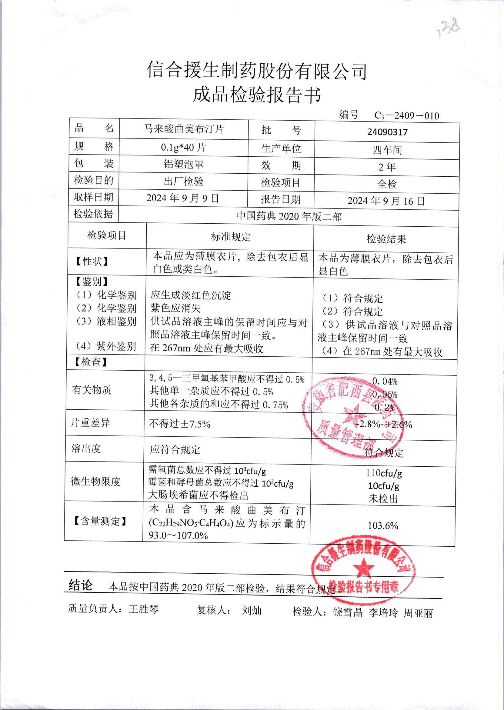 马来酸曲美布汀片 | 0.1g*40片 | 24090317 | 查看详情 |